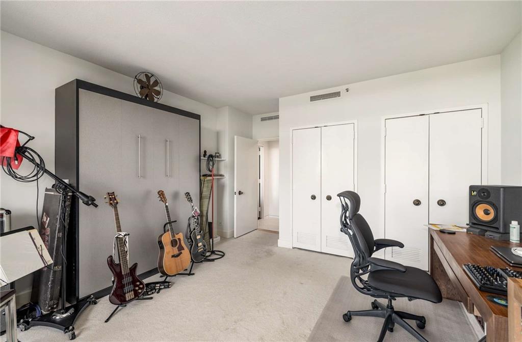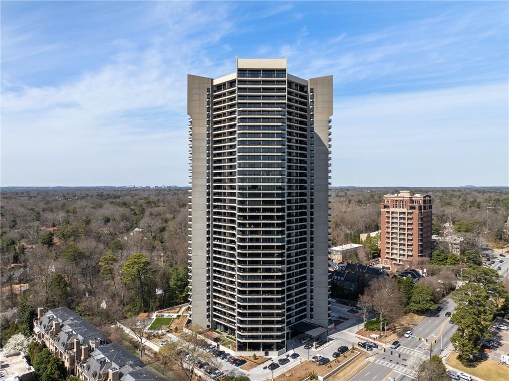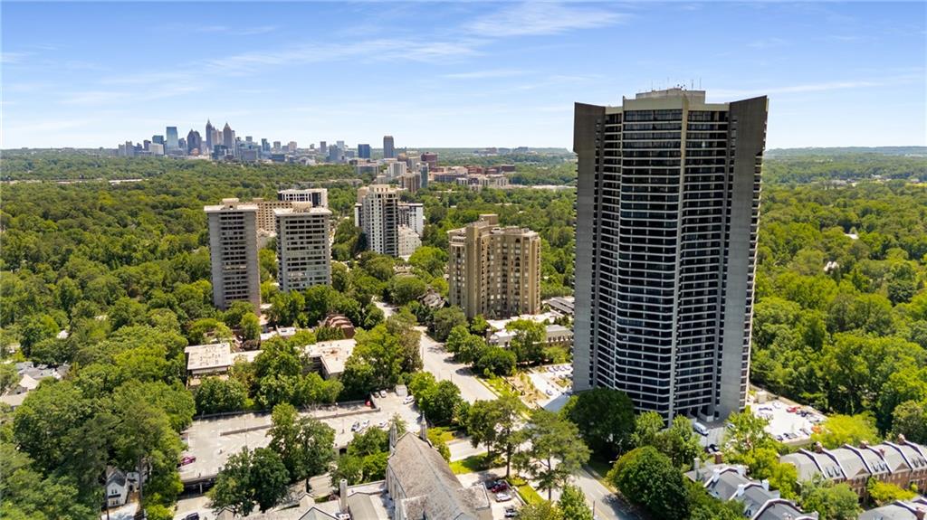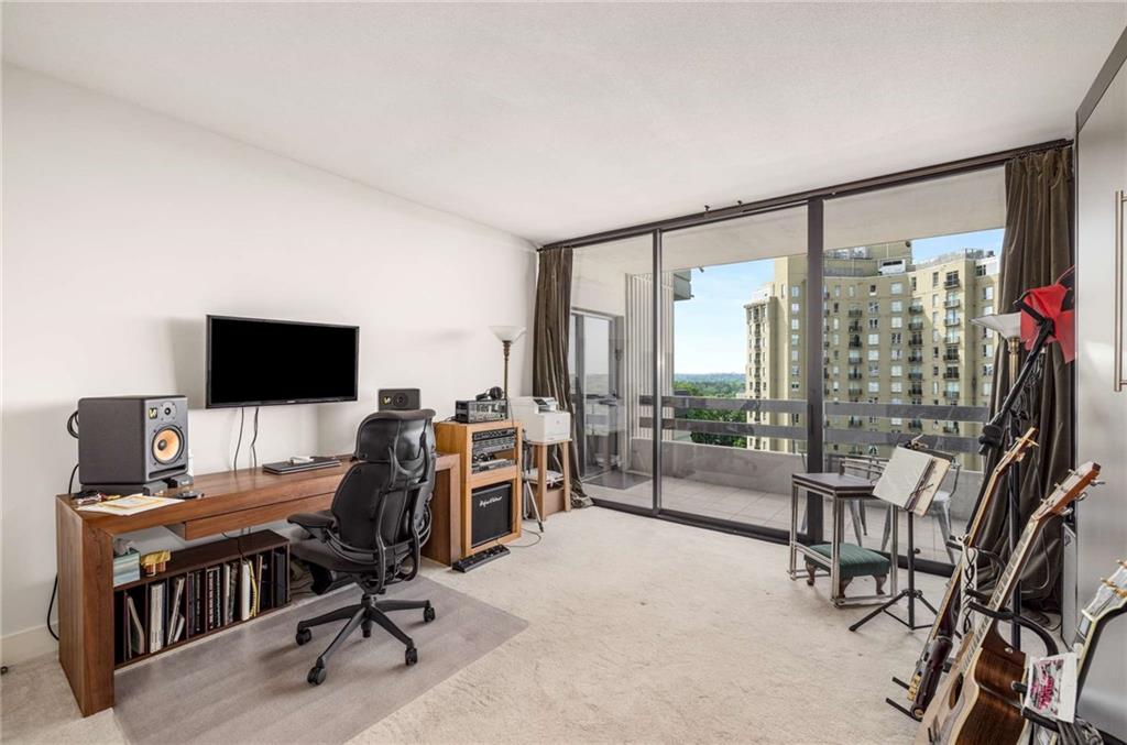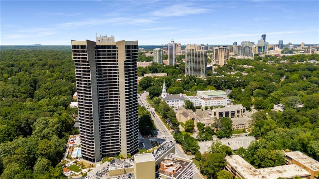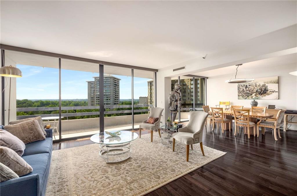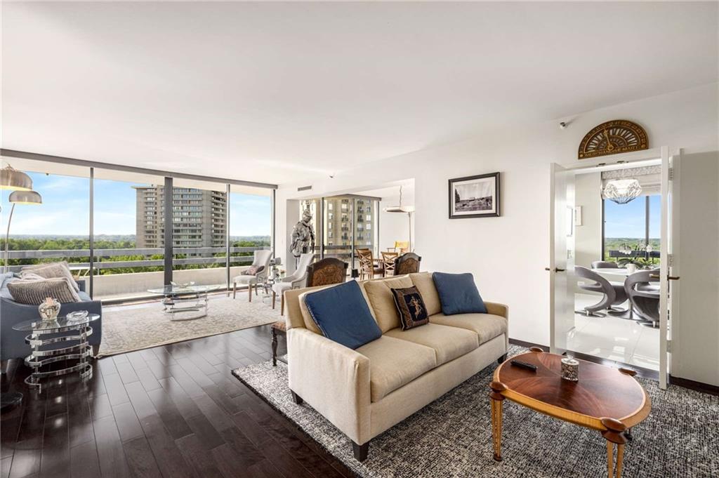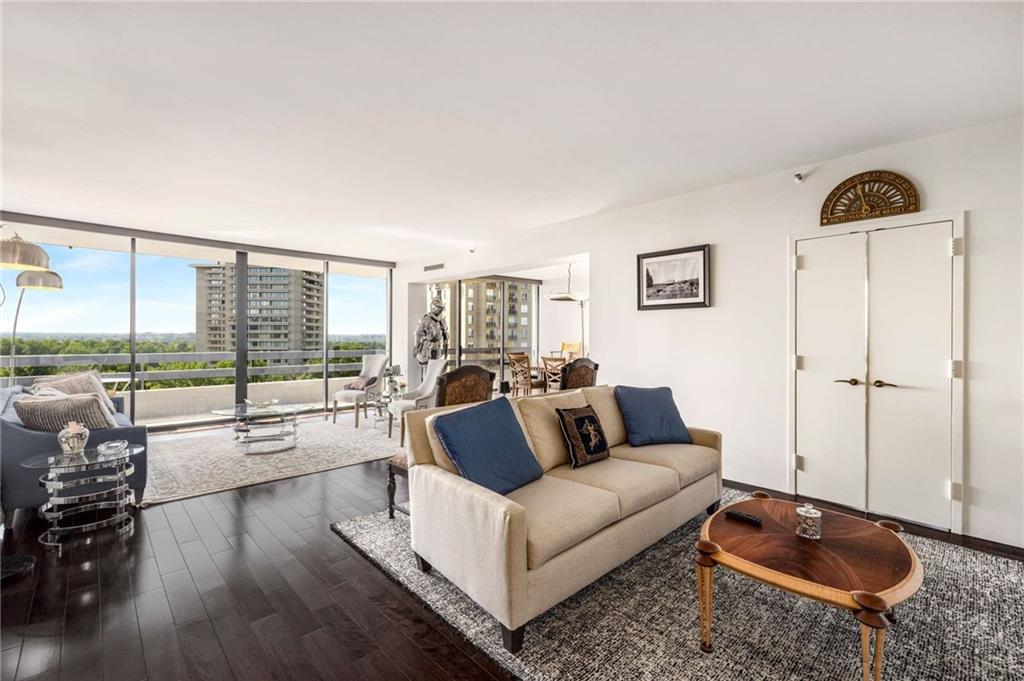 Welcome home to 13H. This home has been meticulously maintained and is ready for you. As you step off the elevator onto the 13th floor you will be amazed at the transformation, the residential halls have all been updated with new flooring, lighting, wall covering and artwork and as you pass through the front door of 13H, you will be equally amazed. The foyer is light and bright with tile flooring that extends through the kitchen. As you continue down the gallery to the living area, you are drawn to the wall of windows, incredible light and the occasional flying friend. The living and dining offer wood flooring and are completely open with both a formal and informal seating area and there is an additional doorway from the den to the kitchen allowing even more light in. Both rooms offer access to one of two balconies and have electric shades. The kitchen is nothing short of spectacular with custom Zebrawood cabinetry with all the bells and whistles, quartz counters, a peninsula that overlooks the dining room, and top of the line appliances including a Wolf induction cooktop. The guest room is outfitted with a Murphy bed which allows this room to double as an office. The primary suite is quite large with a walk-in closet and a stunning bath with oversized shower, custom cabinetry, soapstone counters and marble sinks. Park Place on Peachtree is revered as the first luxury high rise condominium in Atlanta and because of superior leadership and management has maintained its elite position in the Buckhead High Rise community. Park Place gives you more than just the key to a magnificent home, it opens the door to a magnificent lifestyle with many new upgrades including elevators, porte cochere, landscaping, and freshly renovated common areas on residential floors. Amenities and features include a grand lobby with welcoming Lobby Ambassadors, valet parking, attentive staff including engineering, housekeeping, maintenance and management, electronically monitored access controls manned 24/7/365, gated secured parking garage, traffic light for easy ingress and egress, event room with full catering kitchen available for homeowner use, heated saltwater pool with newly expanded pool deck and shade features, new beautiful garden with event lawn, water and fire features and grill pavilion with dining area, fitness center with sauna, climate controlled wine cellar where each homeowner has an assigned bin, 2 guest suites available for owners to rent for their guests, convenient pet walk, community EV charging stations, emergency call system and water leak detection system in every home, many social activities, and assigned storage with every home.