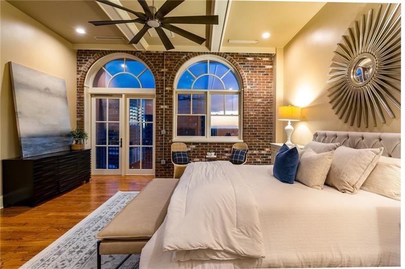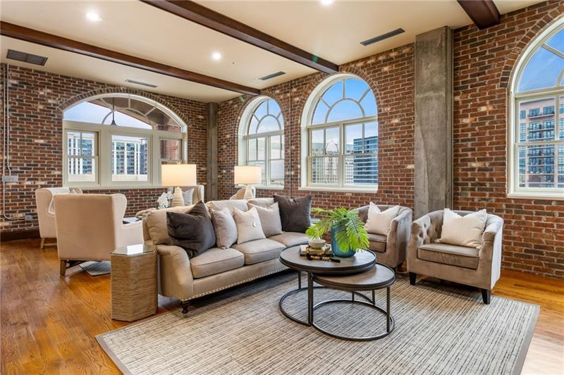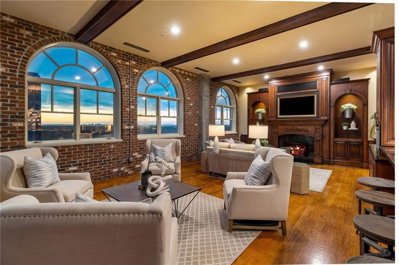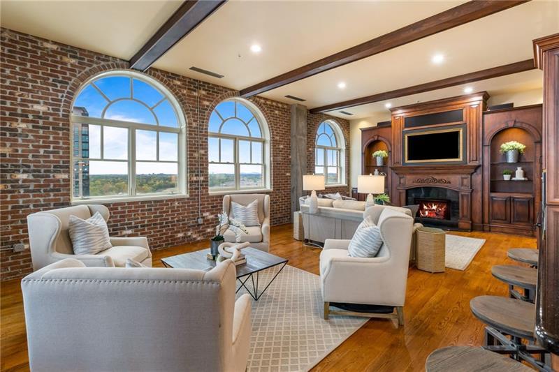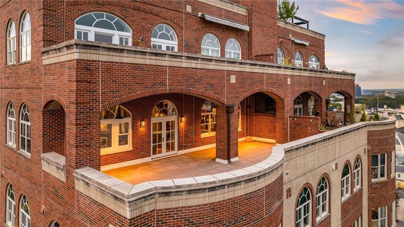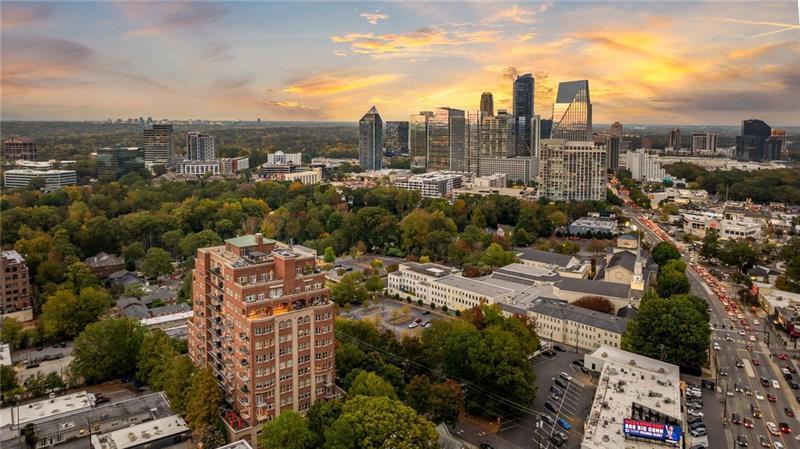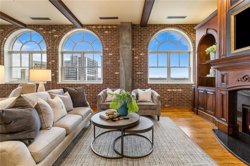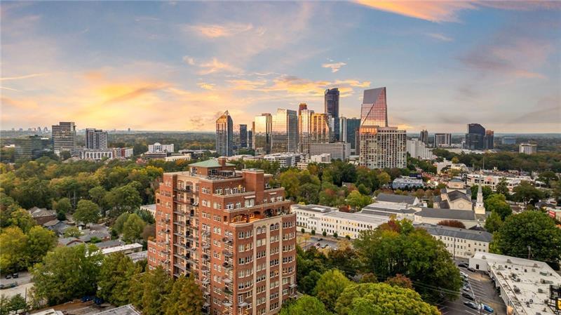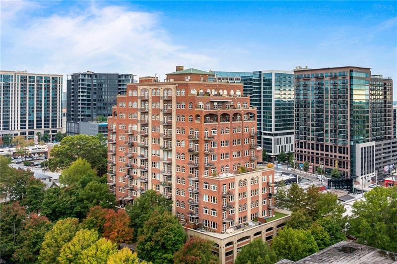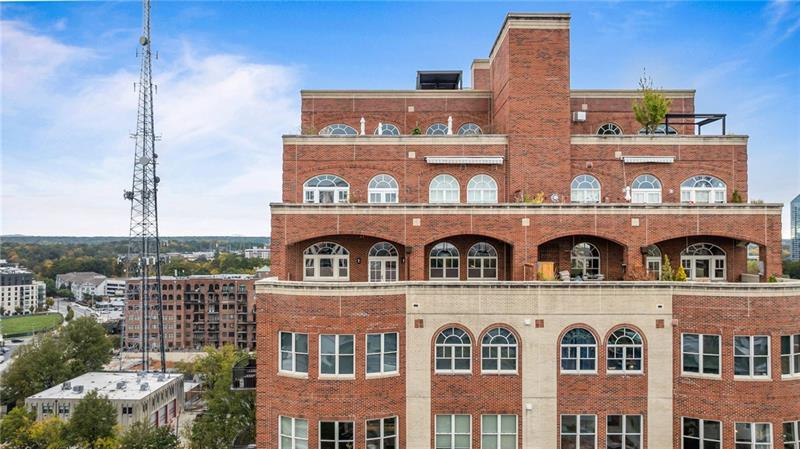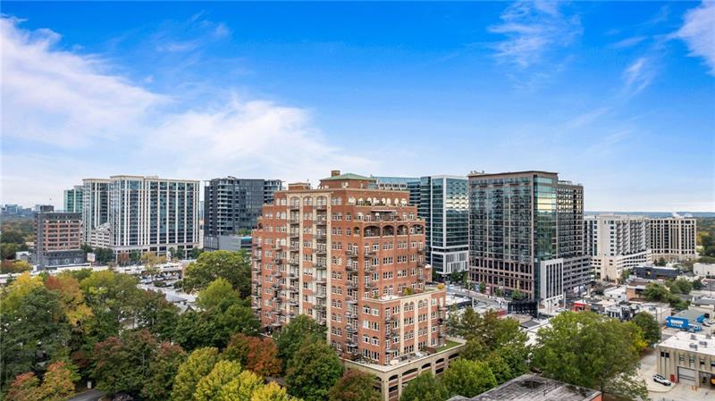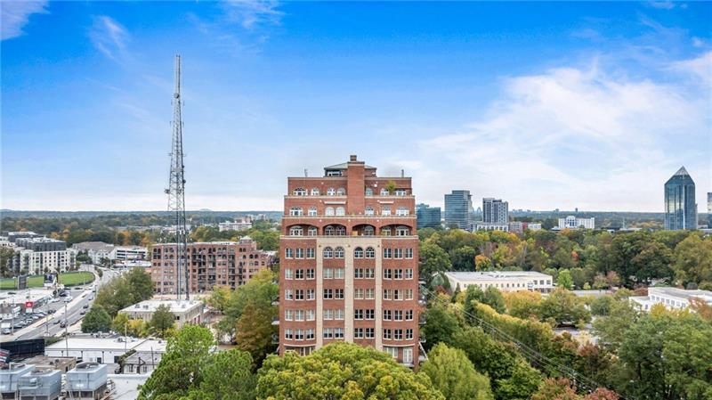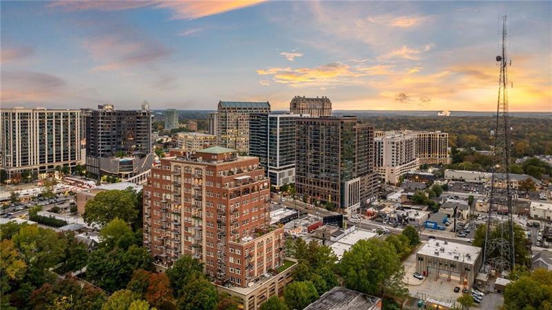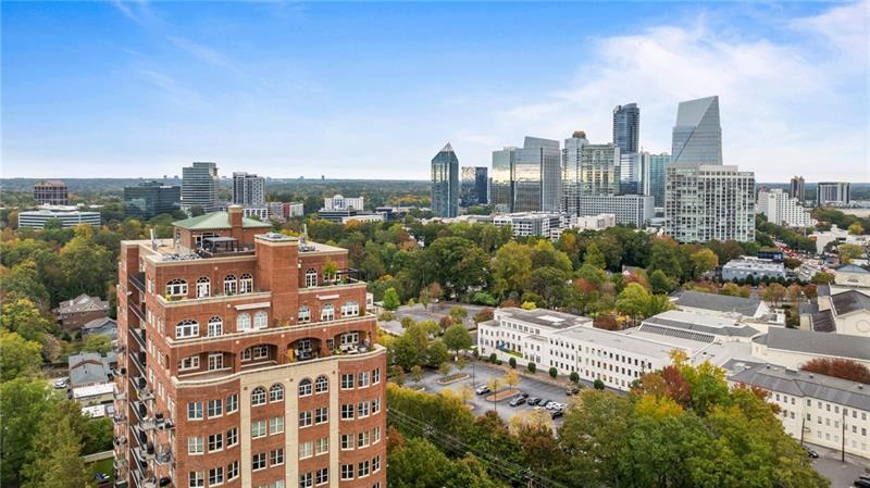 Gorgeous double unit with the most stunning panoramic views at Mathieson Exchange Lofts! Features include exposed brick walls, dark hardwoods throughout, 12 ft ceilings, separate study with built in's. Oversized covered outdoor terrace off of living room/kitchen perfect for entertaining. Large kitchen with double Viking ovens, island, gas range, custom cabinetry. Primary suite with walk in closet, double vanity, separate tub/shower, private balcony. Meticulously maintained with newer HVAC units, fresh paint. The BEST location walkable to top shopping, restaurants, Buckhead Village, Whole Foods, etc. Secure building with amenities that including 24 hour concierge, pool, fitness, dog walk.