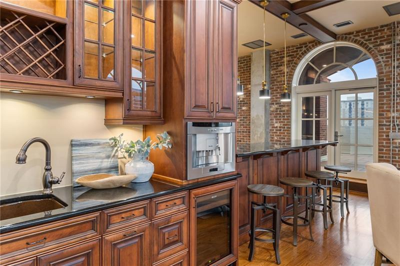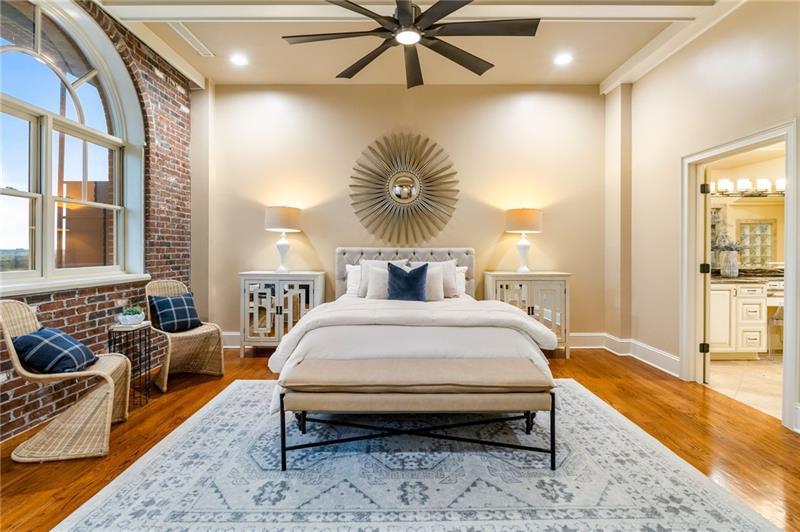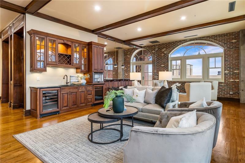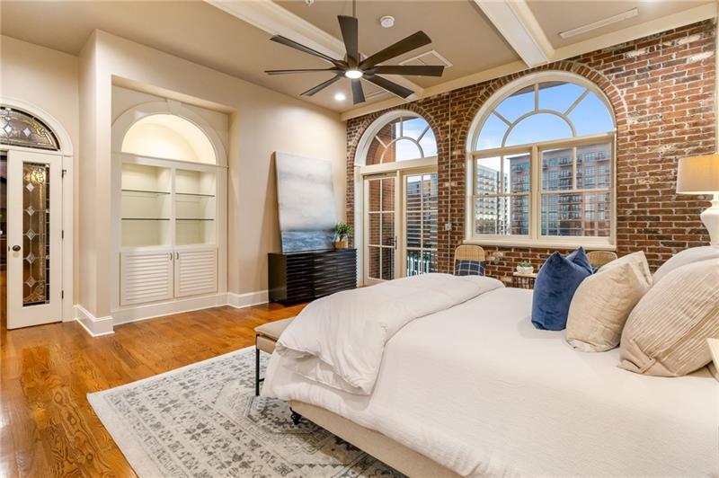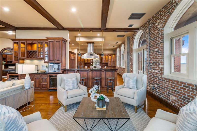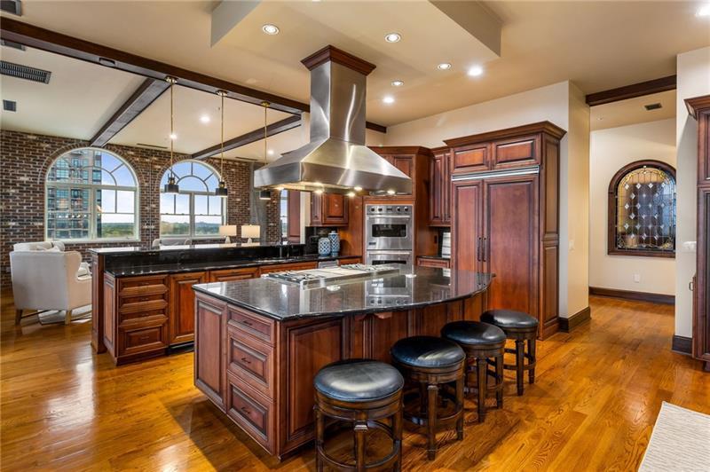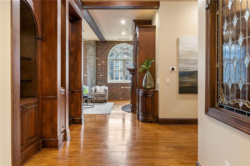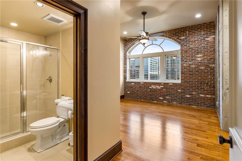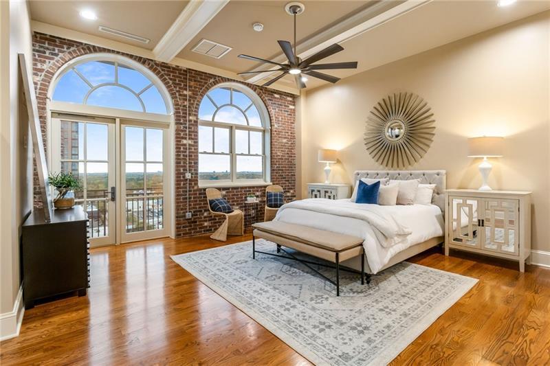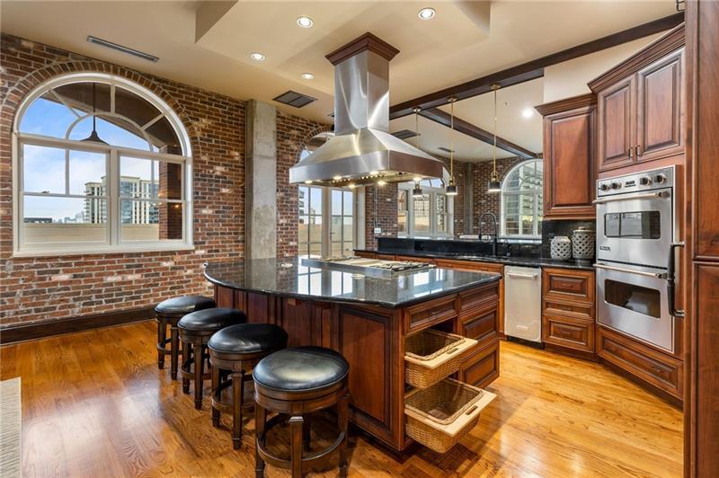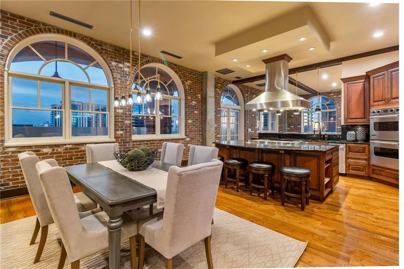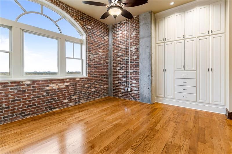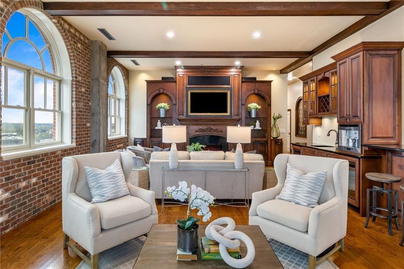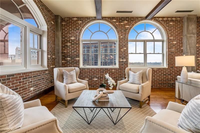 Gorgeous double unit with the most stunning panoramic views at Mathieson Exchange Lofts! Features include exposed brick walls, dark hardwoods throughout, 12 ft ceilings, separate study with built in's. Oversized covered outdoor terrace off of living room/kitchen perfect for entertaining. Large kitchen with double Viking ovens, island, gas range, custom cabinetry. Primary suite with walk in closet, double vanity, separate tub/shower, private balcony. Meticulously maintained with newer HVAC units, fresh paint. The BEST location walkable to top shopping, restaurants, Buckhead Village, Whole Foods, etc. Secure building with amenities that including 24 hour concierge, pool, fitness, dog walk.