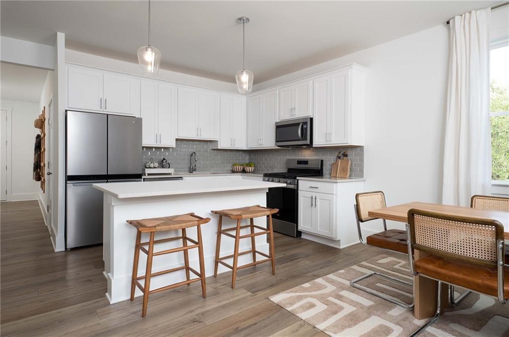 Discover your future home at Park Vue in West Midtown! Modern living in the city just steps away from Westside Park, Atlanta's largest greenspace plus around the corner from all the excitement this city has to offer. Park Vue’s neighborhood features exclusive amenities, including a gated entrance, a refreshing pool, a stylish cabana, grilling stations and a cozy neighborhood fire pit surrounded by Adirondack chairs. Explore our sought-after Indigo design plan! A spacious two-story END UNIT townhome with 1362 square feet of thoughtfully designed space. The main floor features a chef's island & kitchen that opens into a bright dining and family room, perfect for entertaining. Upstairs, you’ll find three generous bedrooms plus a versatile loft space. Indulge in upscale designer finishes that cater to today’s lifestyle: Quartz countertops, natural gas cooking, designer lighting, iron railings, and luxury vinyl plank floors. The Primary Suite is a serene retreat, filled with natural light and boasting a spa-like tiled walk-in shower with a frameless glass door, dual vanities with undermount enamel sinks and Quartz countertops. Park Vue perfectly balances tranquility and convenience in West Midtown's most desirable location. This END UNIT townhome on Homesite/lot # 231 is complete and READY to close June 2025! For further details and information on current promotions, please contact an onsite Community Sales Manager. Please note that renderings are for illustrative purposes, and photos may represent sample products of homes under construction. Actual exterior and interior selections may vary by homesite.