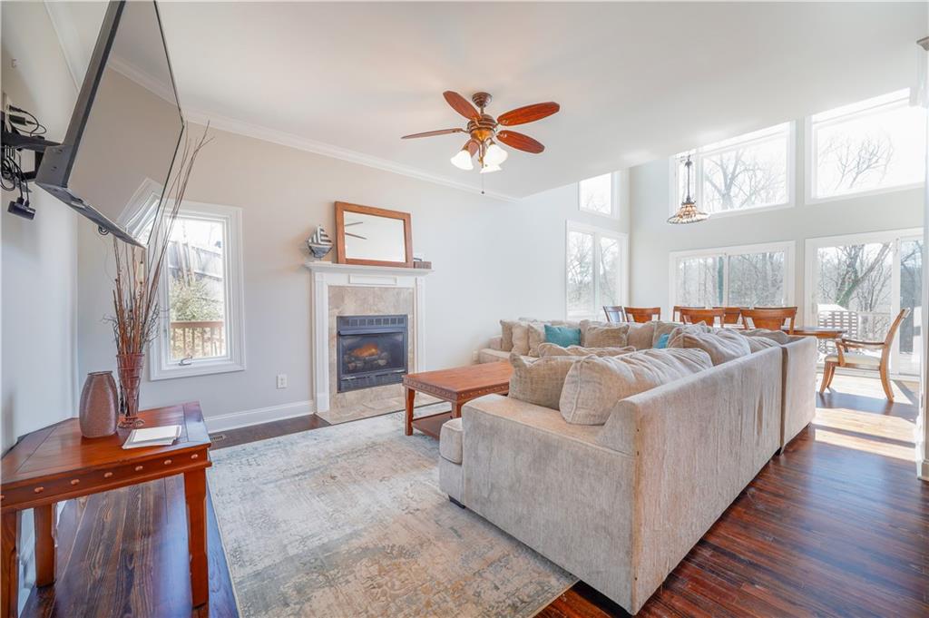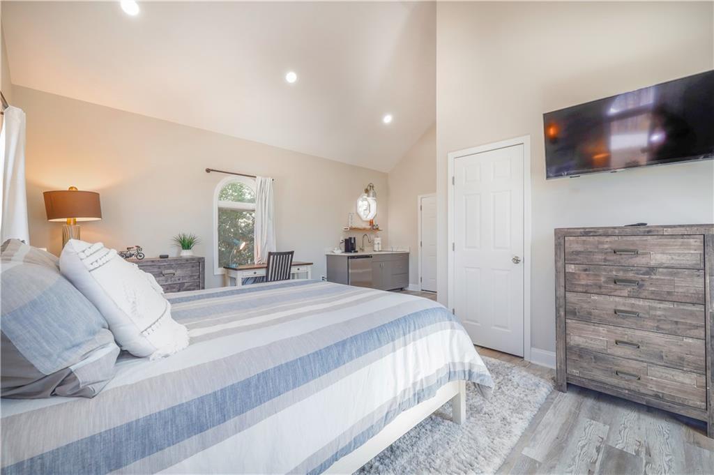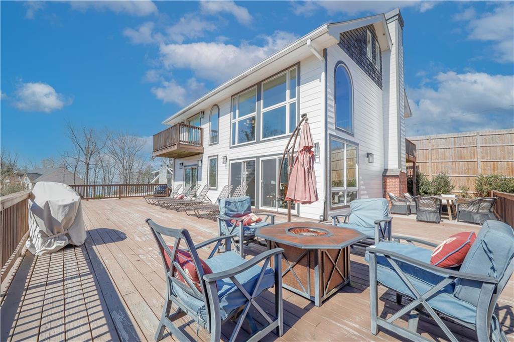 Welcome to your lakefront retreat! Featuring a large 2-slip covered dock with huge party sun deck in deepwater cove, gorgeous water views and ability to generate short term rental income! Make this your private lakefront getaway where great memories are made! This fully furnished 4-bedroom, 4.5-bath home has direct lake access with a two-story dock perfect for boating, swimming, fishing, or simply soaking in the peaceful views. Designed for gathering, the open layout offers spacious living areas, a large owner’s suite, and multiple spots to relax or entertain—indoors and out. Host weekend barbecues, sunset dinners by the water, or lazy mornings with coffee and lake breezes. With plenty of room for guests and flexible living space, it’s ideal for holidays, summer escapes, or everyday life with a resort feel. Relaxing sauna on terrace level and current owner has added additional suite above the garage. Surrounded by nature yet close to shopping, dining, and top schools, this home offers the best of lake life with the convenience of the city just minutes away. Enjoy this retreat and generate short term rental income! **Preferred lender will pay up to $15,000 in closing costs**