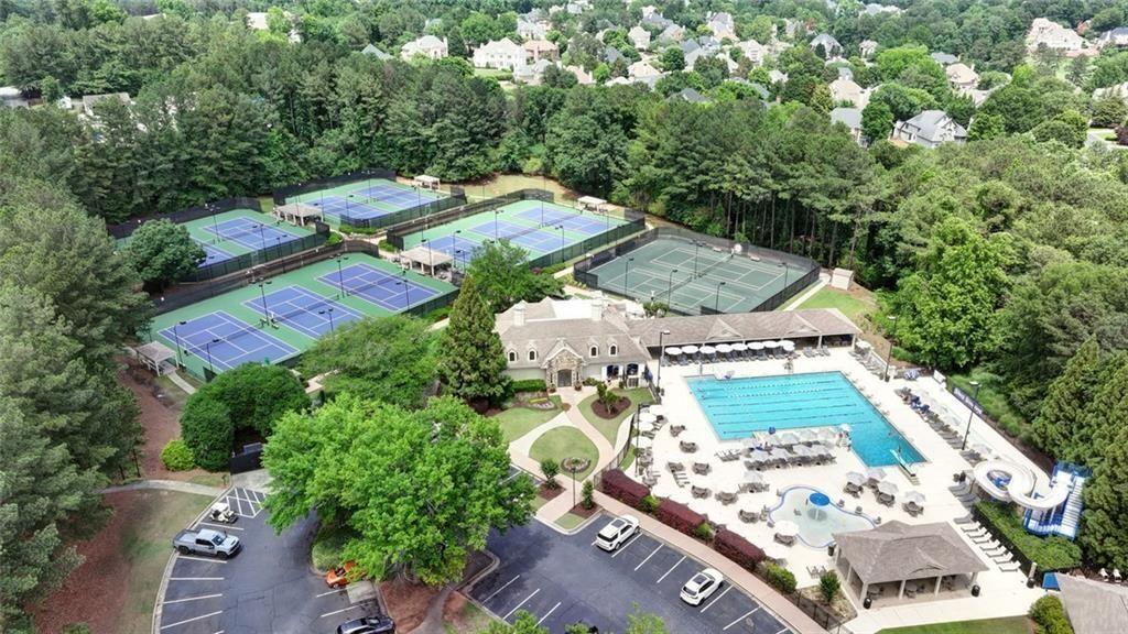 Elegant All-Brick Estate in Prestigious St. Ives Country Club welcome to timeless elegance in this stately all-brick residence, ideally situated on private cul-de-sac in the exclusive St. Ives Country Club. Nestled on lush professionally landscaped 0.71 acre lot, the expansive home offers exceptional curb appeal, architectural detail, and resort-style The main level features a grand leaded-glass entryway, newly refinished red oak hardwood floors, and a private study with a fireplace and custom built-ins. The soaring two-story great boasts a wall of energy-efficient thermal pane windows, fireplace and custom built-in bookcases, flowing seamlessly into the formal banquet-sized dining room. The gourmet kitchen is equipped with granite countertops, stained oak cabinetry, newer appliances, and a bright breakfast/keeping room with its own fireplace-perfect for relaxed mornings entertaining. Step out to the oversized composite deck overlooking the expansive, fenced backyard. The spacious owner's suite on the main floor offers spa-like retreat beautifully updated bathroom, including whirlpool tub, separate, and generous walk-in closet. Upstairs you'll find four large bedrooms and two full baths including an en-suite guest room. New carpet in the bedrooms and hardwood flooring in the upper hall add warmth and sophistication. The fully finished daylight terrace level includes a bright oversized bedroom with floor-to ceiling windows, media room, recreation area, fitness room, and an elegant entertainment bar. With newer carpet and hardwood floors throughout, this level also features a utility room with a high-efficiency three-zone HVAC system. Additional upgrades include new driveway, epoxy garage flooring, modern light fixtures, a newer roof, and a beautifully fenced level backyard with wrought iron-style aluminum fencing. This meticulously maintained home combines classic charm with modern amenities in one of metro Atlanta's most desirable gated golf communities. St. Ives Country Club is located in the city of John's Creek which was recently ranked as the number city in the United State to live. It is also located in top-ranked school district.