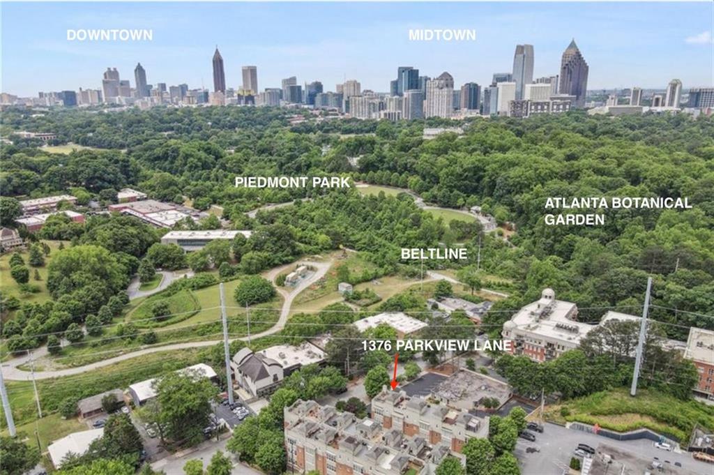Welcome to 1376 Parkview Lane NE — a thoughtfully designed 3-bedroom, 2.5-bathroom, end unit townhome offering the perfect balance of comfort, convenience, and city living without the noise. Nestled on a quiet street on the edge of Piedmont Park, this home provides a peaceful retreat while keeping you close to everything Atlanta has to offer. Inside, you’ll find a light-filled open floor plan with hardwood floors on the main level, an open concept kitchen with stone countertops and stainless steel appliances, a gas fireplace, newer energy efficient windows, and flexible living spaces that make everyday living and entertaining a breeze. One of the standout features of this home is the expansive rooftop deck — a private outdoor escape with stunning skyline views. It's the perfect spot to relax, entertain guests, or enjoy the seasonal glow of the Atlanta Botanical Garden Holiday Lights under the stars right from home. Additional features include a spacious primary suite with a walk-in closet, two guest bedrooms and a two-car garage. And for those who love the outdoors, multiple access points to the Atlanta BeltLine and Piedmont Park are at the end of the two streets that border the community — ideal for the outdoor enthusiasts and connecting with nature and nearby neighborhoods. Conveniently located to shopping, dining, parks, and major highways, this townhome offers easy access to Midtown and Buckhead without the constant noise and bustle of being in the center of it all. Come experience a quieter side of city living — without missing out on the perks. Up to $32,500 in Down Payment assistance available to qualified Homebuyers through Preferred Lender!