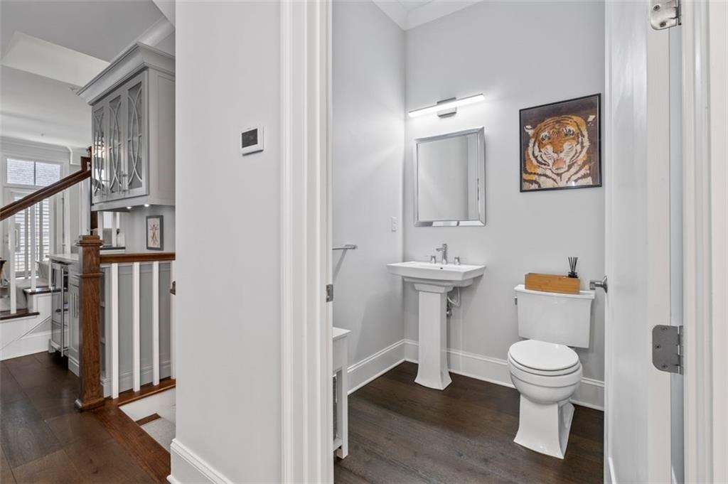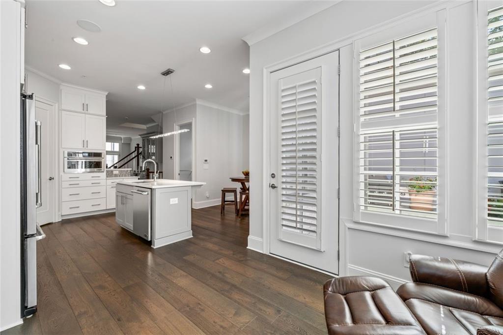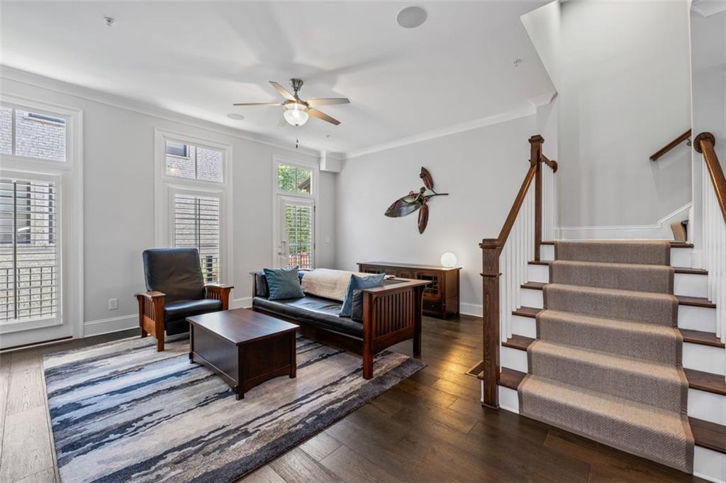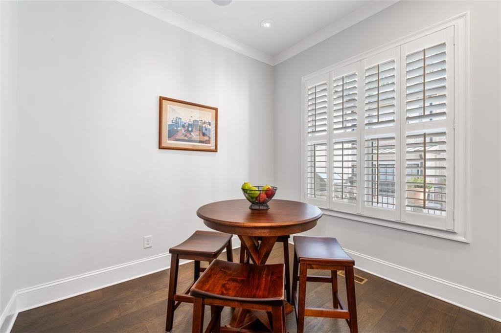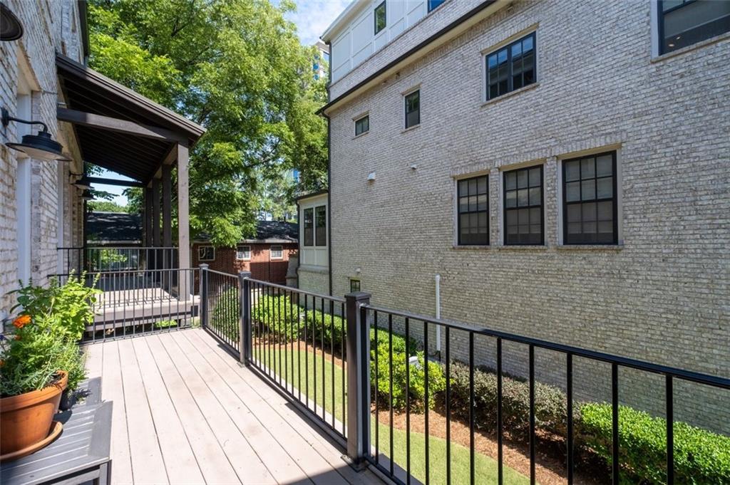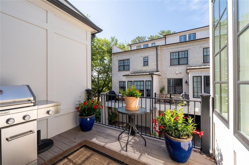 Sophisticated multi-level smart home with luxe finishes & outdoor living in Buckhead's wonderful Garden Hills. Discover elevated living in this meticulously designed multi-level residence offering over-the-top functionality, style, and comfort. From the moment you enter the welcoming foyer, you're met with upscale touches including a custom wine cellar, workshop with built-ins, and a 2-car garage also featuring integrated storage solutions — all on the entry level. On the main level, entertain in style with open-concept living areas that flow seamlessly onto two outdoor decks. The rear deck boasts a hard-lined gas grill, perfect for effortless outdoor cooking. Inside, the chef’s kitchen features top-of-the-line appliances, a spacious pantry, and connects to a cozy breakfast room and keeping room. A dedicated dining area, elegant bar with wine cooler, and convenient half bath complete this level. The third level is your private retreat, featuring a spacious primary suite with spa-like bath, a guest bedroom with its own ensuite bath, and a thoughtfully designed landing with flex space for a home office. A dedicated laundry room adds convenience to daily living. Head up to the fourth level for a private sanctuary, ideal for guests or a second home office. This level includes a bedroom with full bath and a stunning private outdoor terrace with fireplace—an ideal space for relaxing or entertaining under the stars. This smart home is equipped with Lutron dimmers and switches that can be controlled remotely or via preset schedules, Sonos sound systems on three levels, electronic door locks that can be controlled remotely, and a smart thermostat to keep you comfortable year-round. Throughout the home, custom wooden shutters add elegance and privacy. Tucked into a gated enclave of only eight John Weiland built townhomes, this is a rare blend of style, tech, and comfort — just minutes from everywhere you want to be!