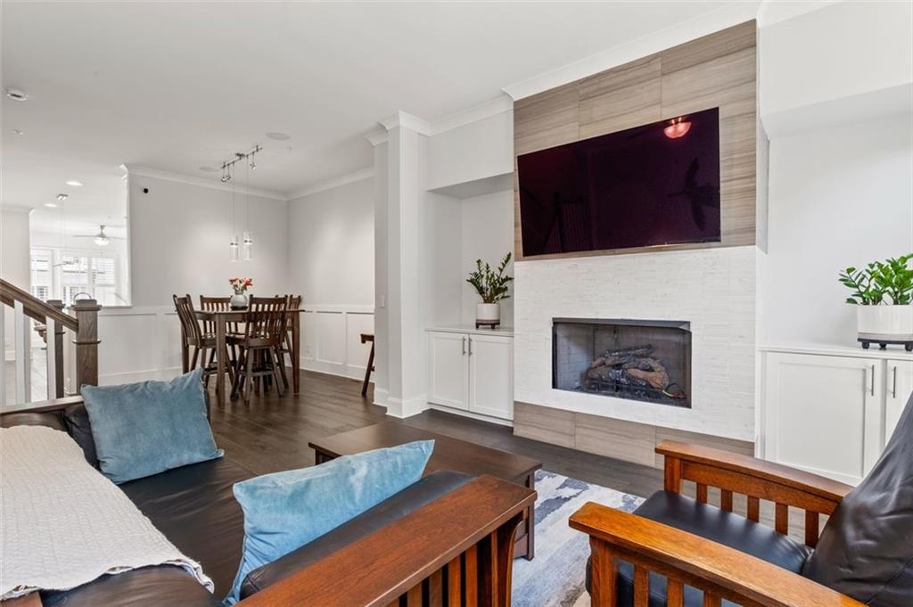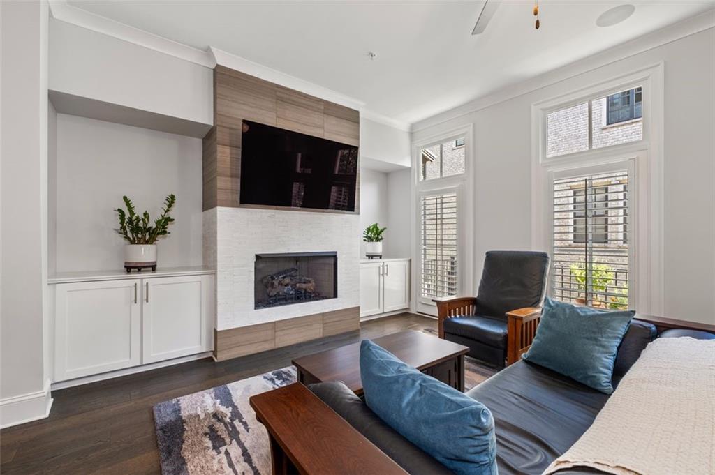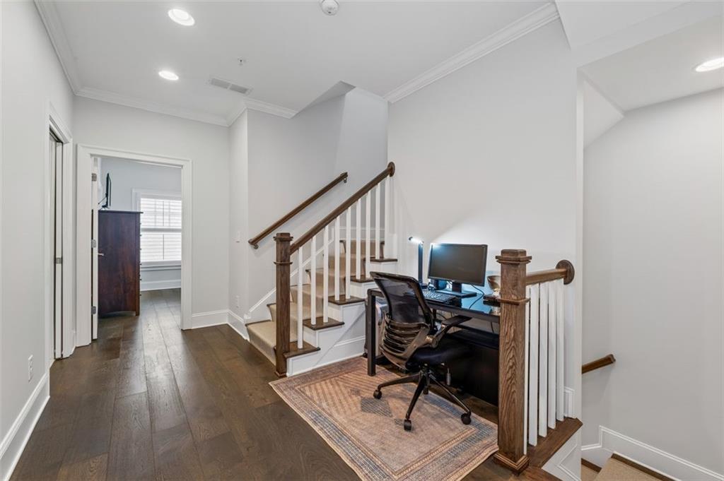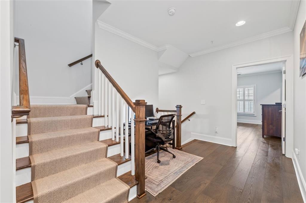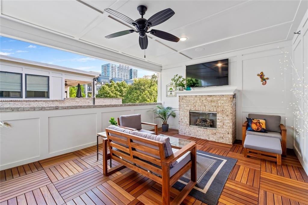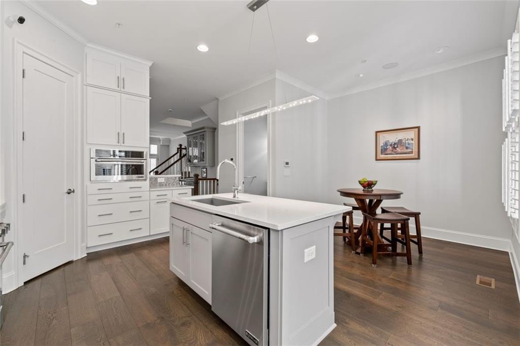 Sophisticated multi-level smart home with luxe finishes & outdoor living in Buckhead's wonderful Garden Hills. Discover elevated living in this meticulously designed multi-level residence offering over-the-top functionality, style, and comfort. From the moment you enter the welcoming foyer, you're met with upscale touches including a custom wine cellar, workshop with built-ins, and a 2-car garage also featuring integrated storage solutions — all on the entry level. On the main level, entertain in style with open-concept living areas that flow seamlessly onto two outdoor decks. The rear deck boasts a hard-lined gas grill, perfect for effortless outdoor cooking. Inside, the chef’s kitchen features top-of-the-line appliances, a spacious pantry, and connects to a cozy breakfast room and keeping room. A dedicated dining area, elegant bar with wine cooler, and convenient half bath complete this level. The third level is your private retreat, featuring a spacious primary suite with spa-like bath, a guest bedroom with its own ensuite bath, and a thoughtfully designed landing with flex space for a home office. A dedicated laundry room adds convenience to daily living. Head up to the fourth level for a private sanctuary, ideal for guests or a second home office. This level includes a bedroom with full bath and a stunning private outdoor terrace with fireplace—an ideal space for relaxing or entertaining under the stars. This smart home is equipped with Lutron dimmers and switches that can be controlled remotely or via preset schedules, Sonos sound systems on three levels, electronic door locks that can be controlled remotely, and a smart thermostat to keep you comfortable year-round. Throughout the home, custom wooden shutters add elegance and privacy. Tucked into a gated enclave of only eight John Weiland built townhomes, this is a rare blend of style, tech, and comfort — just minutes from everywhere you want to be!
