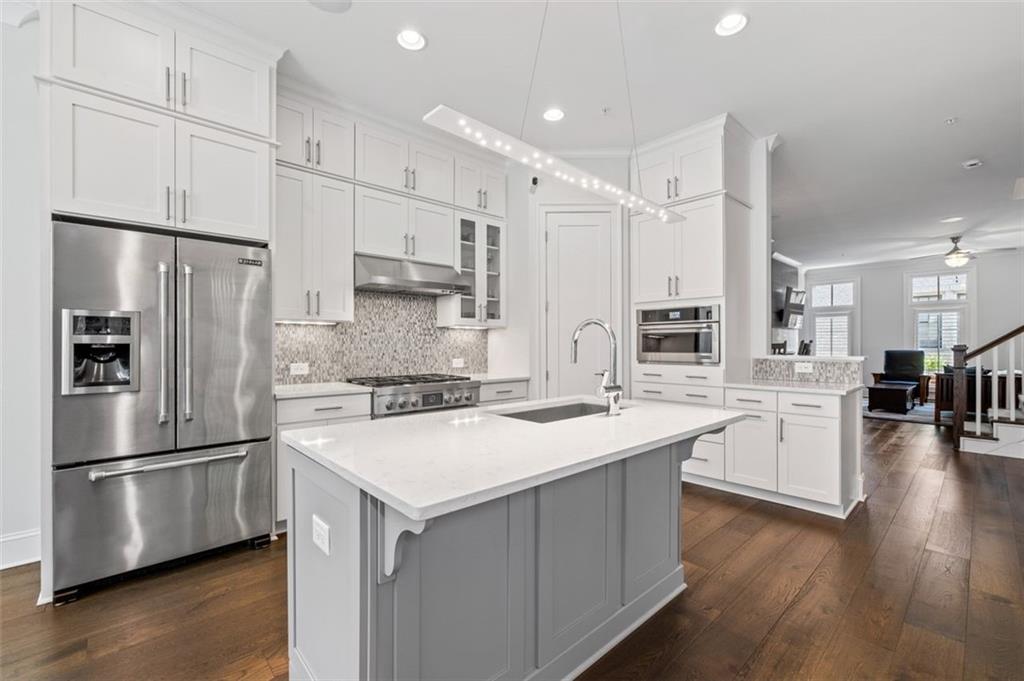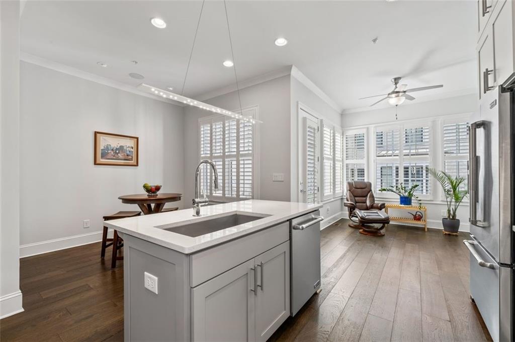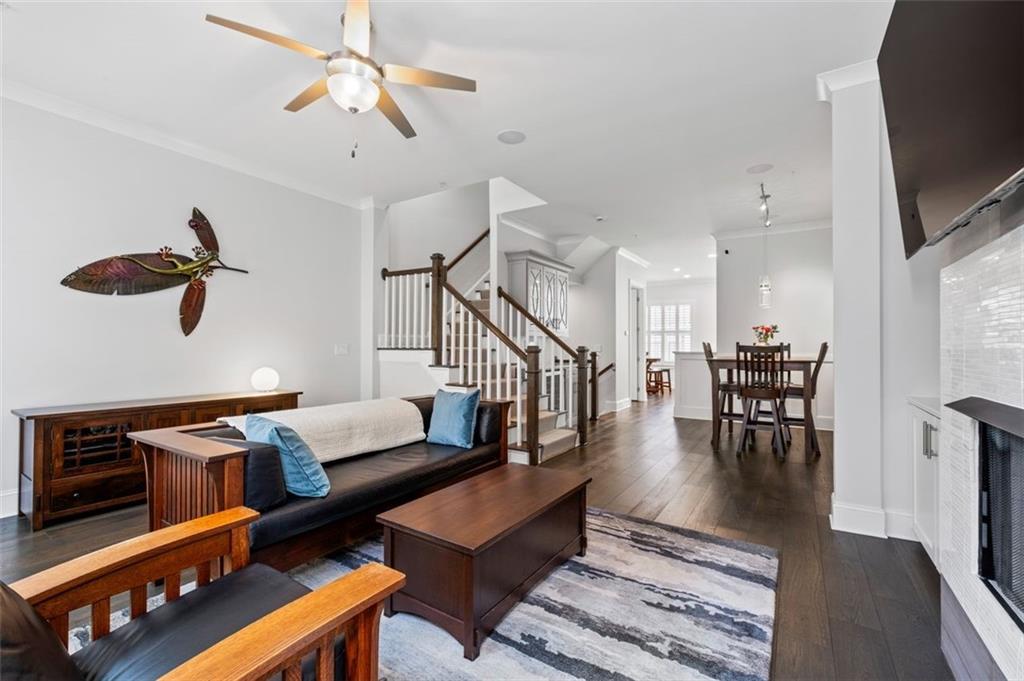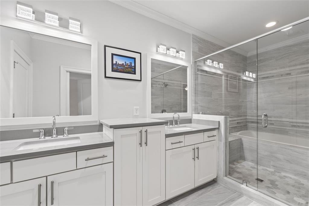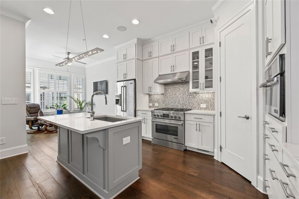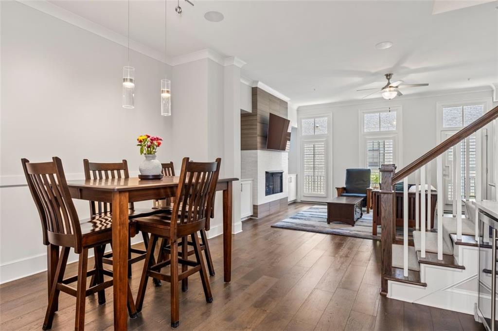 Sophisticated multi-level smart home with luxe finishes & outdoor living in Buckhead's wonderful Garden Hills. Discover elevated living in this meticulously designed multi-level residence offering over-the-top functionality, style, and comfort. From the moment you enter the welcoming foyer, you're met with upscale touches including a custom wine cellar, workshop with built-ins, and a 2-car garage also featuring integrated storage solutions — all on the entry level. On the main level, entertain in style with open-concept living areas that flow seamlessly onto two outdoor decks. The rear deck boasts a hard-lined gas grill, perfect for effortless outdoor cooking. Inside, the chef’s kitchen features top-of-the-line appliances, a spacious pantry, and connects to a cozy breakfast room and keeping room. A dedicated dining area, elegant bar with wine cooler, and convenient half bath complete this level. The third level is your private retreat, featuring a spacious primary suite with spa-like bath, a guest bedroom with its own ensuite bath, and a thoughtfully designed landing with flex space for a home office. A dedicated laundry room adds convenience to daily living. Head up to the fourth level for a private sanctuary, ideal for guests or a second home office. This level includes a bedroom with full bath and a stunning private outdoor terrace with fireplace—an ideal space for relaxing or entertaining under the stars. This smart home is equipped with Lutron dimmers and switches that can be controlled remotely or via preset schedules, Sonos sound systems on three levels, electronic door locks that can be controlled remotely, and a smart thermostat to keep you comfortable year-round. Throughout the home, custom wooden shutters add elegance and privacy. Tucked into a gated enclave of only eight John Weiland built townhomes, this is a rare blend of style, tech, and comfort — just minutes from everywhere you want to be!