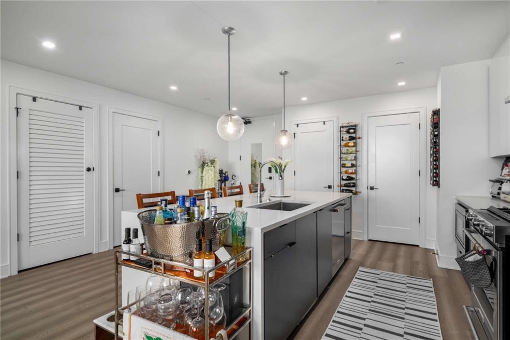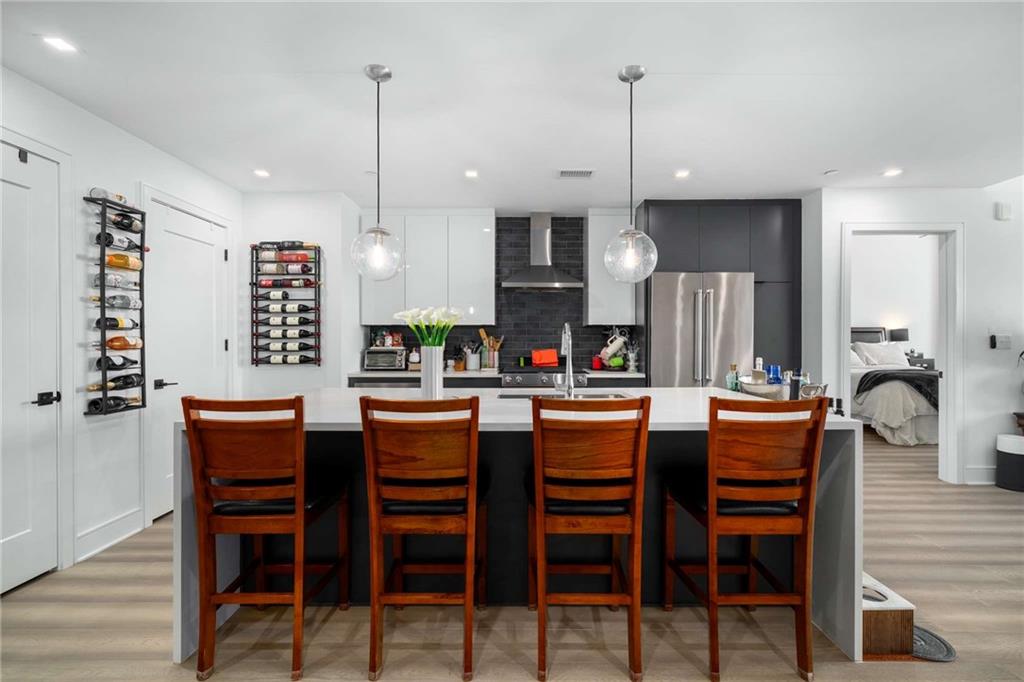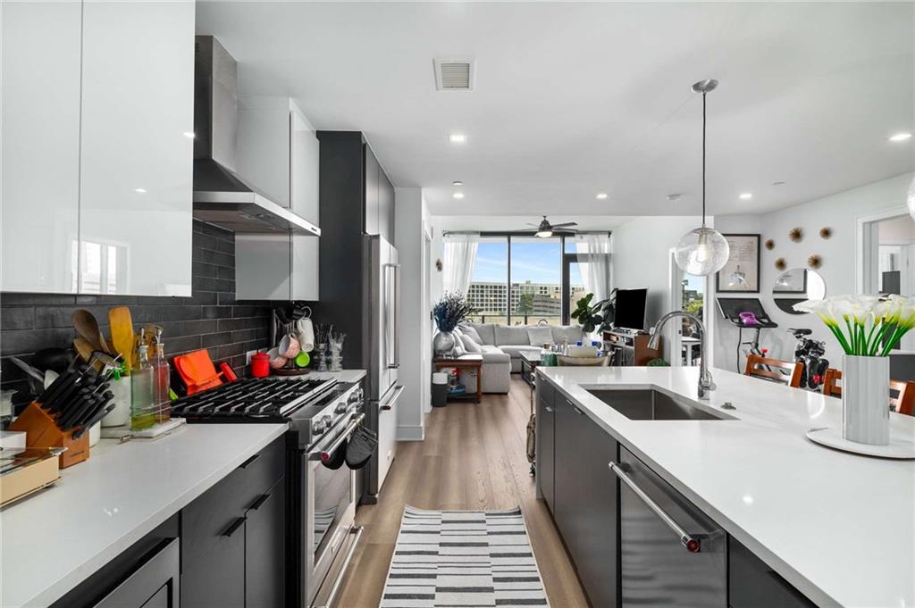 Experience luxury living in this luxurious condo set in the vibrant heart of West Midtown. This unit boasts beautiful views of the city through floor to ceiling windows. You’ll love the gorgeous kitchen featuring Kitchen Aid stainless steel appliances, custom white cabinetry, an oversized island featuring quartz waterfall design, and designer pendants. The large primary bedroom and bathroom features a frameless glass shower, bathtub, double vanities, and a large walk in closet offering plenty of storage. Unit 308 offers 2 large deeded storage units which is rare in this building along with two assigned parking spaces in the deck. Building amenities are unmatched in West Midtown and include a 24/7 concierge, pool and hot tub with beautiful skyline views, fire pits, grilling area with both gas and Big Green Eggs, modern gym, billiards table, a kitchen in the common areas for entertaining groups, and an indoor dog park and spa. You’ll love the close proximity to some of the city’s best restaurants including an omakase sushi restaurant located in the building.