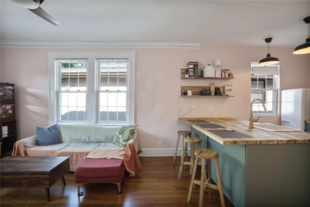 Charming corner-unit condo in a classic 1935 boutique building, located in the heart of Virginia Highland—one of Atlanta’s most sought-after neighborhoods. This light-filled unit features high ceilings, hardwood floors, double pane windows and original architectural details including crown moulding. The updated kitchen offers gorgeous Acacia wood countertops and a spacious island with seating and extra storage along with retro-look appliances. The renovated bath and in-unit laundry add everyday convenience. Residents enjoy a shared outdoor area perfect for grilling and socializing, along with shared basement storage. Just steps to VAHI restaurants and shops, Ponce City Market, grocery stores, parks, and the BeltLine. This is a rare find with unbeatable location and historic character.