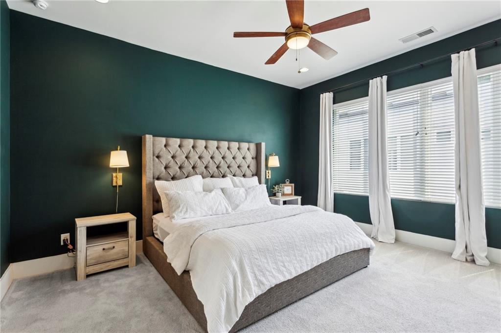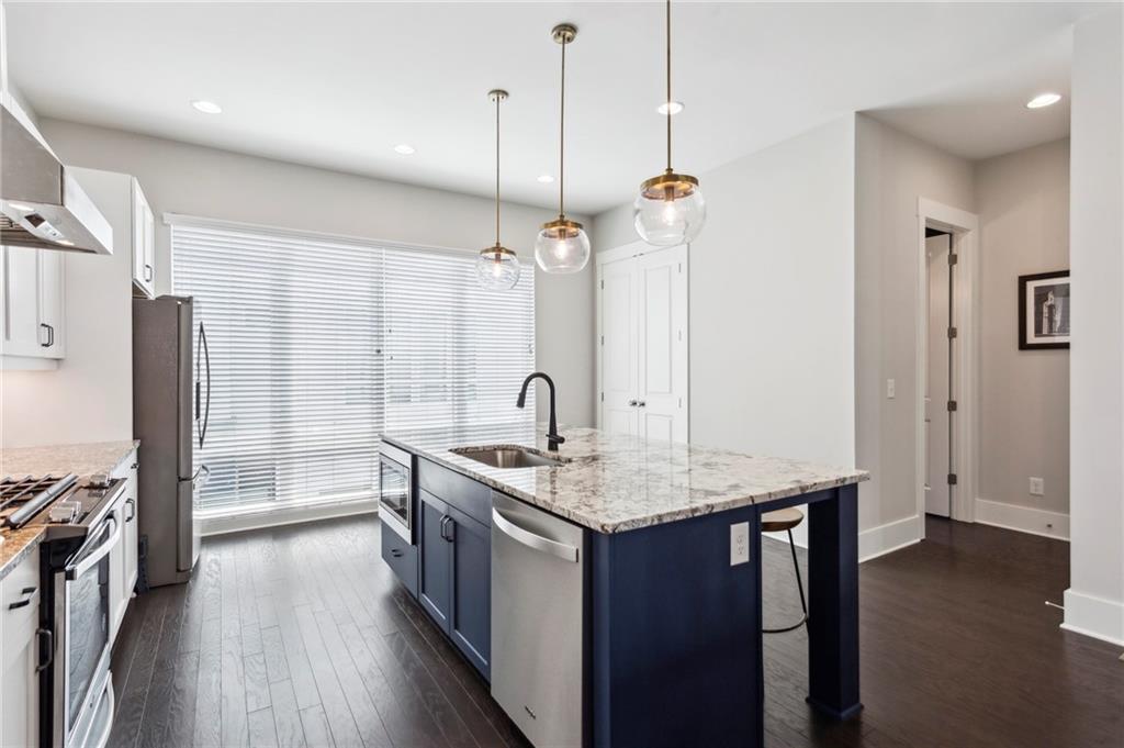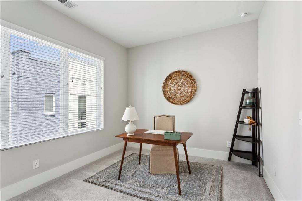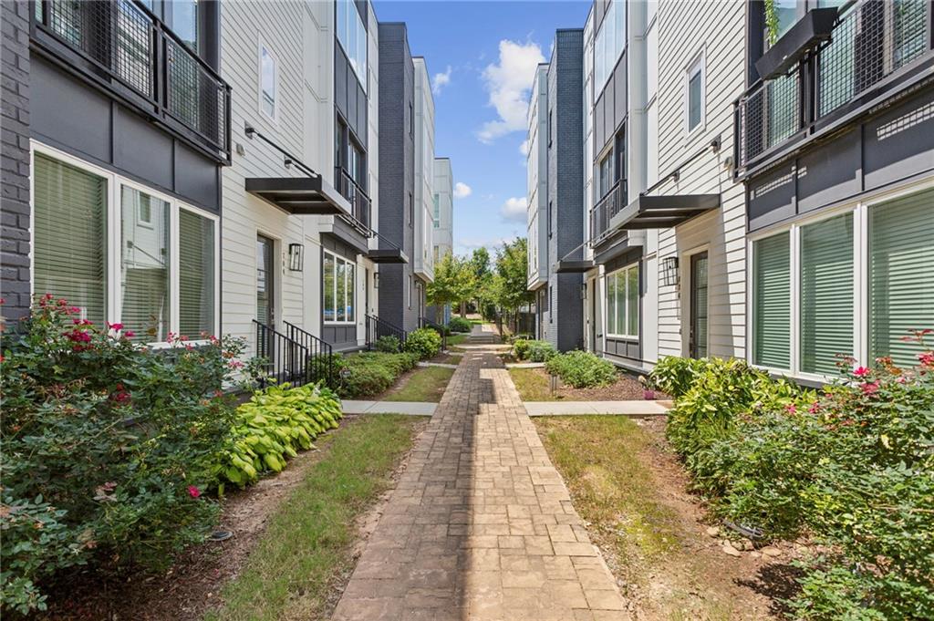Experience upscale urban living in this beautifully designed 3-bedroom, 3.5-bathroom townhome, located in one of Atlanta’s most dynamic and desirable neighborhoods. Built just five years ago and nestled in the heart of a contemporary, courtyard-style community, this home offers the perfect blend of privacy, modern style, and everyday convenience. Step inside to a spacious foyer that sets the tone for the rest of the home. The entry level features elegant engineered hardwood flooring, soaring ceilings, and direct access to a large 2-car garage. Double doors open to a guest suite complete with an en-suite bathroom and walk-in closet—perfect for overnight guests or a home office. Upstairs, enjoy an open-concept layout with a bright and airy living room, dining area, and a gourmet kitchen featuring granite countertops, a large island, stainless steel appliances, and custom cabinetry. Floor-to-ceiling windows flood the space with natural light, creating a perfect setting for entertaining or relaxing. Retreat to the oversized primary suite, offering a luxurious bathroom with cultured marble countertops, a double vanity, and a modern frameless shower. The custom walk-in closet with built-in organization is a dream! A second upstairs bedroom also features a private en-suite bathroom and walk-in closet. Thoughtfully positioned within the community for added privacy and quiet, this townhome keeps you close to all the action while offering a peaceful retreat. Located just steps from the Beltline's Westside Connector and only minutes from Midtown, Downtown, Westside Provisions District, and Westside Reservoir Park, you'll also enjoy quick access to Atlanta’s top attractions—including Mercedes-Benz Stadium, State Farm Arena, and the Georgia World Congress Center—along with endless options for shopping, dining, and entertainment. Whether you're seeking modern design, a prime location, or a low-maintenance lifestyle, this exceptional home at Oliver Street Townhomes checks every box.
