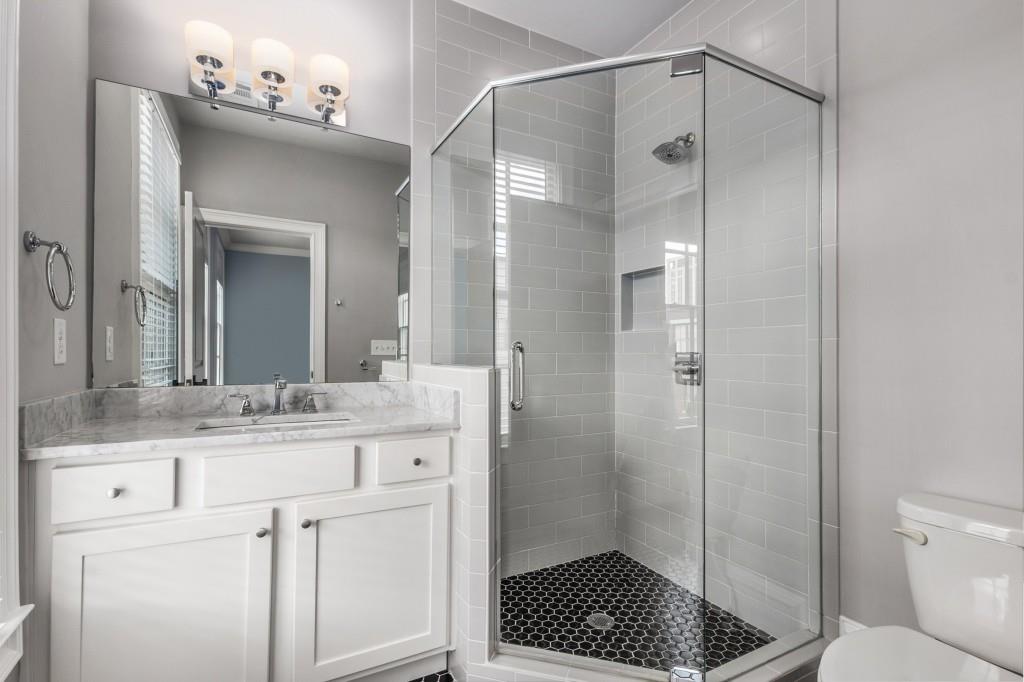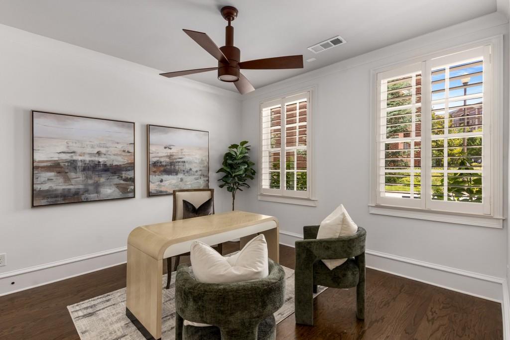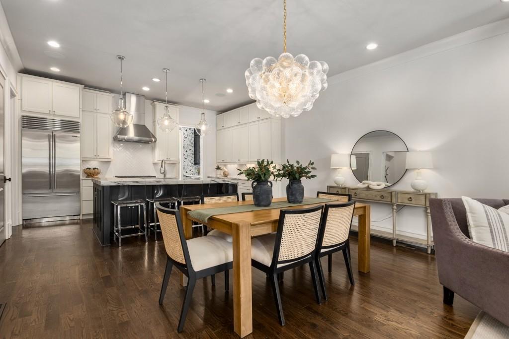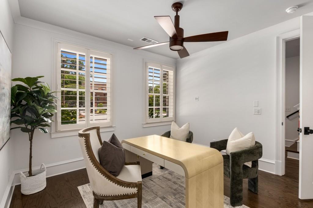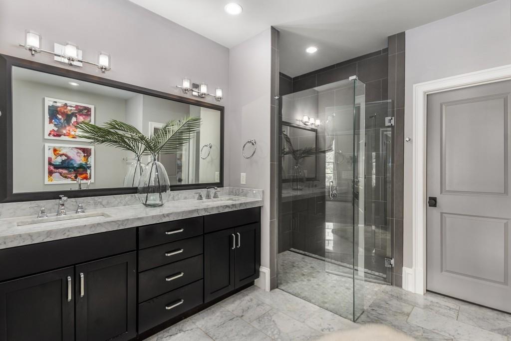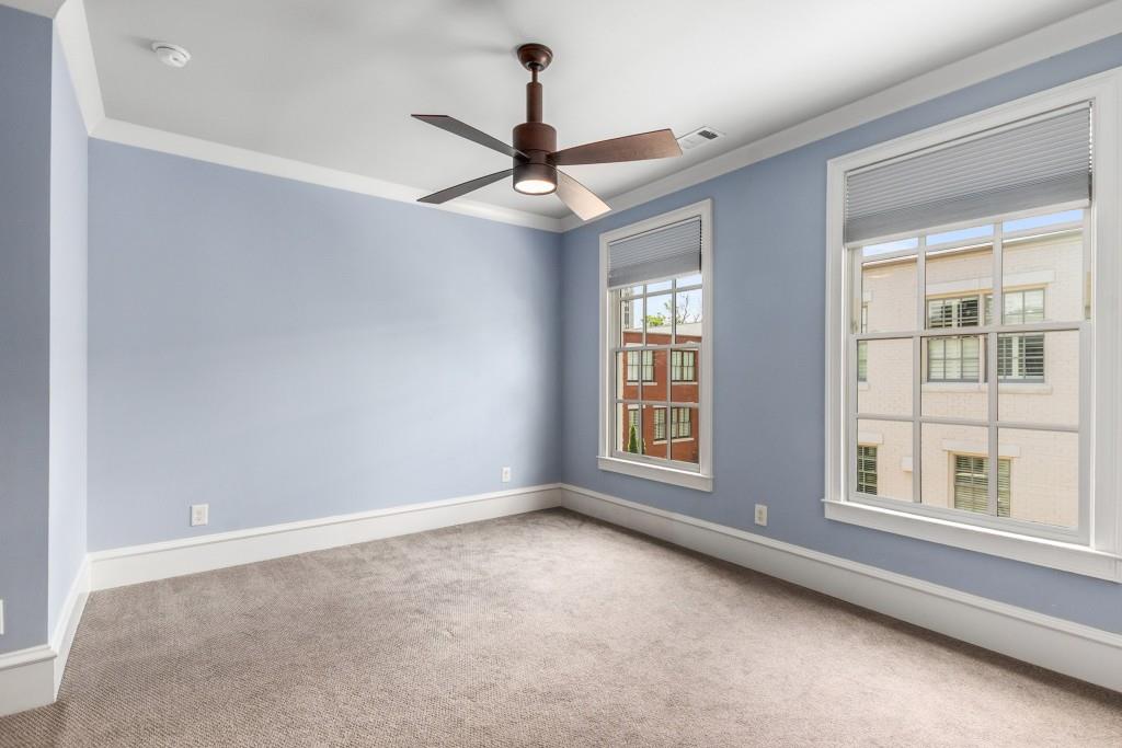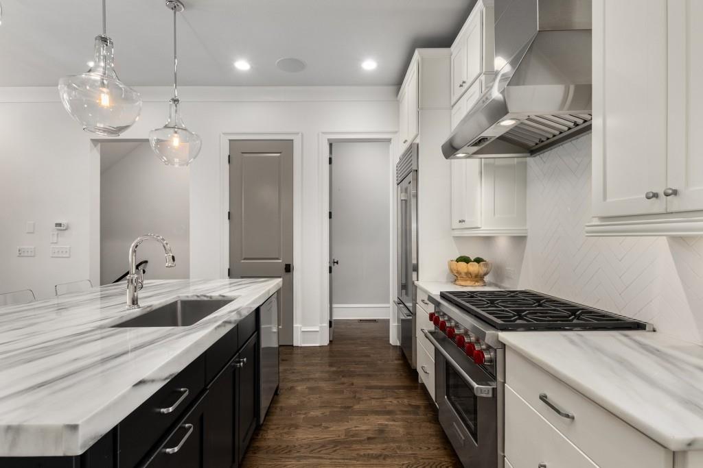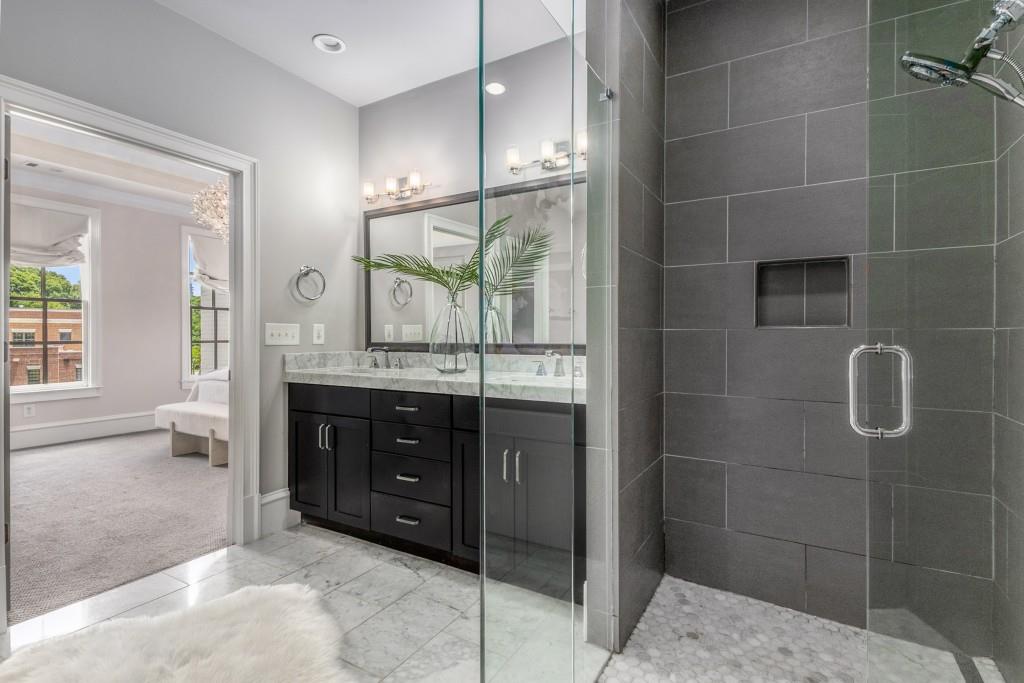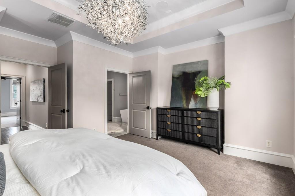 Located in sought-after St. Andrews, this stunning Tuxedo floor plan offers three levels of luxury living. The main level offers an open floor plan with hardwood floors and a beautiful kitchen detailed by double-stacked cabinetry, thick marble slab countertops, a Wolf gas range, a Sub-Zero refrigerator, a large island with seating and an adjacent beverage center with a wine refrigerator and glassware storage. The kitchen flows seamlessly into the dining area and fireside living room, creating an ideal layout for everyday living and entertaining. Double French doors open to the large balcony off the living room and provide the perfect space for grilling or winding down at the end of the day. Upstairs, the tranquil primary suite offers a tray ceiling lined with oversized molding, a stunning chandelier that castes soft light across the bedroom and a marble-detailed en suite bathroom with a double vanity, a freestanding bathtub and a zero-entry seamless glass shower. Dual walk-in closets off the bathroom offer extensive built-ins for even the most extensive wardrobe. A second bedroom with an en suite bathroom and classic black and white design choices complete the upper level. The lower level includes hardwood floors, a third bedroom with plantation shutters, an en suite bathroom and access to the drive-under two-car garage. St. Andrews' incredible location means you can leave the car at home and head out to some of Atlanta's best restaurants, world-class shopping, Whole Foods, St. Regis, the Buckhead Theater and more! With the Buckhead Village District right down the street, there is always something to do! Welcome home!