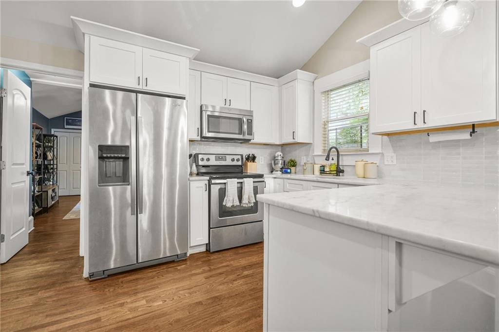 Fall in Love with This Renovated Craftsman Gem in Historic Berkeley Park! Imagine starting your mornings on an oversized, covered front porch while sipping coffee and listening to the sounds of this charming, tree-lined neighborhood. Inside, sunlight pours through large windows and bounces off rich hardwood floors, guiding you through a thoughtfully designed open floor plan. Vaulted ceilings in the living room create an airy, welcoming space that flows right into a stylish kitchen featuring quartz countertops, white cabinetry, a chic tiled backsplash, stainless steel appliances, and a breakfast bar that’s perfect for casual mornings or chatting with guests while you cook. Hosting friends? The dedicated dining room is ready for memorable dinners and game nights. The home offers three generously sized bedrooms and two updated bathrooms that are each designed for comfort and function. Step outside to your own private escape: a multi-level backyard ready for a garden, a firepit hangout, or simply some peace and quiet. A covered back porch and wood privacy fence complete the setting, giving you a serene retreat in the heart of the city. And the best part? This home isn’t just beautiful, it’s ready for you! Major updates like the roof, HVAC, plumbing, electrical, encapsulated crawlspace (with sump pump!), and sewer line have already been done for you. Located in a friendly, walkable community with neighborhood socials and quick access to breweries, restaurants, boutiques, and more. You’re just minutes from Westside Provisions District, The Works, Bobby Jones Golf Course, Westside Park, Atlantic Station, and GA Tech. This isn’t just a home—it’s your next chapter.