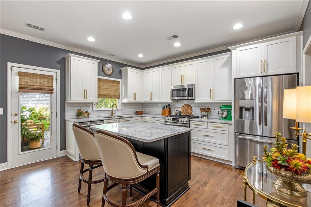 Welcome to this show-stopping Upper Westside gem in sought-after Adams Crossing! From the moment you enter the elegant two-story foyer, you will feel right at home. The living room and open dining area is bathed in natural lighting from the oversized windows that frame the spaces beautifully. Designer finishes throughout including a fully upgraded kitchen featuring all-white cabinetry, quartzite countertops, and stainless steel appliances. The kitchen overlooks a welcoming and cozy family room with custom built-ins and a stunning fireplace perfect for relaxing evening or entertaining guests. Upstairs, you will find 3 spacious bedrooms and 2.5 bathrooms, including a serene primary suite with a spa-like bathroom and a generous walk-in closet. An additional large storage closet provides plenty of space to keep everything organized and out of sight. Hardwood floors flow throughout the entire home, adding a touch of timeless elegance. Enjoy your morning coffee on the spacious front porch or afternoons grilling on the back deck with a natural gas connection. The neighborhood has even more to offer with a nearby multi-use path soon to connect directly to the Atlanta BeltLine. The neighborhood also features two different playgrounds and a dog park, making this an ideal location for families or anyone who loves a strong sense of community. This one checks every box for style, comfort, and unbeatable location. Don't miss your chance to call it home!