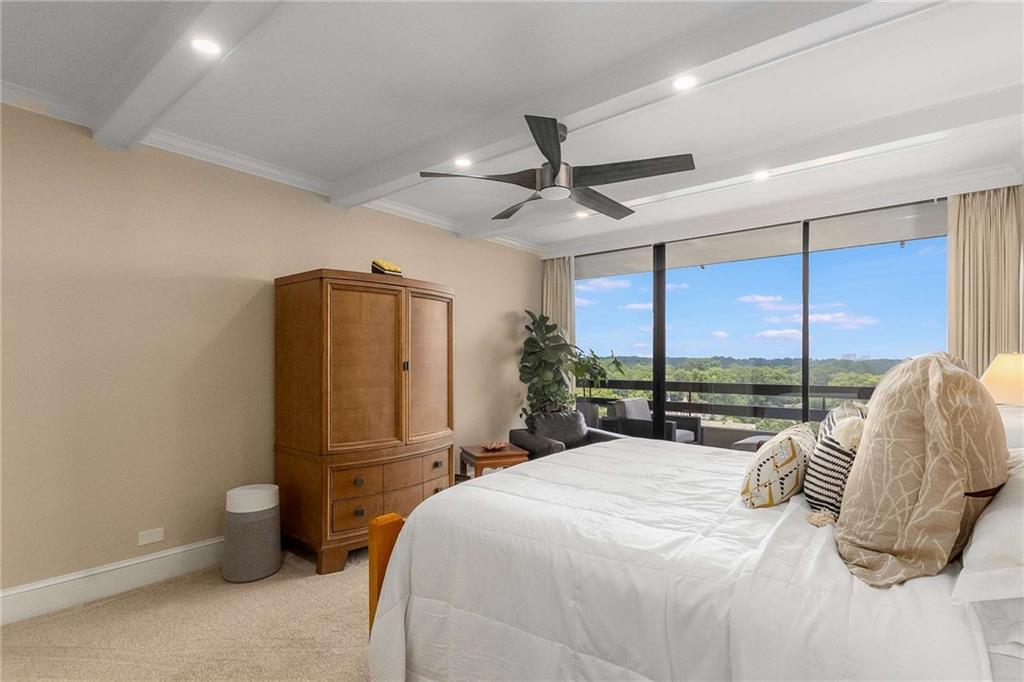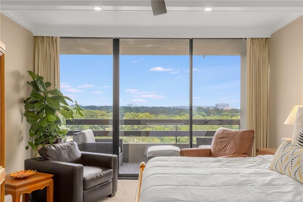 Luxury Living, Effortlessly Defined. Discover the ultimate lock-and-leave lifestyle in the prestigious Park Place on Peachtree. Residence 13F is move-in ready and brimming with refined updates and thoughtful design details. Beautiful site-finished hardwoods flow through the main living areas, where coffered ceilings, a custom bar, and a stylish faux fireplace create a warm and inviting atmosphere. The updated kitchen is equally impressive, featuring new flooring, soft-close cabinetry, banquette seating with built-in storage, Cambria countertops, a wine cooler, Sub-Zero refrigerator, Dacor appliances including microwave, oven, warming drawer, and a sleek induction cooktop—all designed for elevated everyday living. The flexible guest room includes custom built-ins with desk and cabinetry, making it ideal as a home office or additional retreat. The primary suite is a serene escape with coffered ceilings, a spacious custom walk-in closet, and an elegantly renovated en-suite bath boasting modern tile, fixtures, dual vanities, and a towel warmer for added comfort. The guest bath mirrors these updates with fresh flooring, countertops, and contemporary vessel sinks. Every detail has been considered—from new designer lighting and motorized shades in the living, dining, and primary rooms to two private walk-out balconies offering spectacular vistas of the Buckhead skyline, treetops, and even Stone Mountain in the distance. This is more than a home—it’s a lifestyle. Don’t miss your chance to experience it. Park Place on Peachtree is revered as the first luxury high rise condominium in Atlanta and because of superior leadership and management has maintained its elite position in the Buckhead High Rise community. Park Place gives you more than just the key to a magnificent home, it opens the door to a magnificent lifestyle with many new upgrades including elevators, porte cochere, landscaping, and freshly renovated common areas on residential floors. Amenities and features include a grand lobby with welcoming Lobby Ambassadors, valet parking, attentive staff including engineering, housekeeping, maintenance and management, electronically monitored access controls manned 24/7/365, gated secured parking garage, traffic light for easy ingress and egress, event room with full catering kitchen available for homeowner use, heated saltwater pool with newly expanded pool deck and shade features, new beautiful garden with event lawn, water and fire features and grill pavilion with dining area, fitness center with sauna, climate controlled wine cellar where each homeowner has an assigned bin, 2 guest suites available for owners to rent for their guests, convenient pet walk, community EV charging stations, emergency call system and water leak detection system in every home, many social activities, and assigned storage with every home.