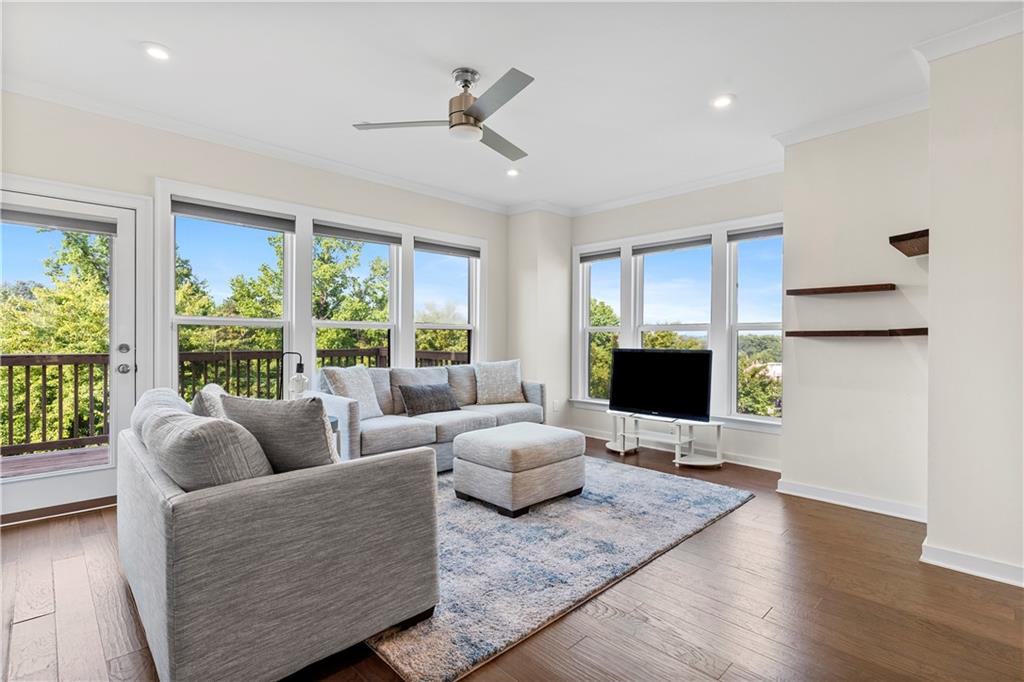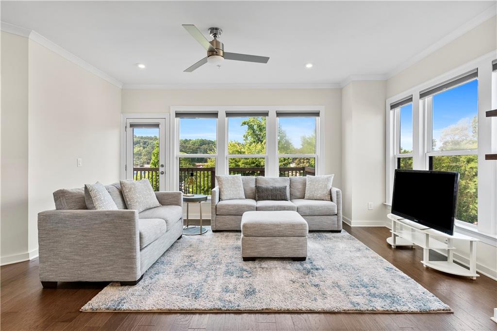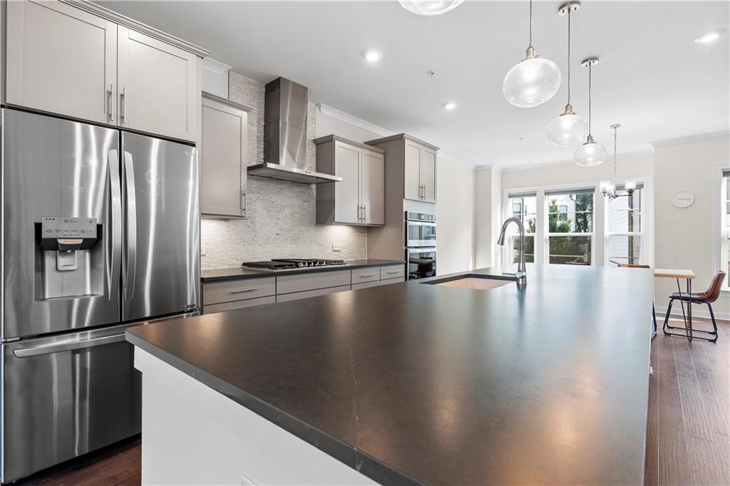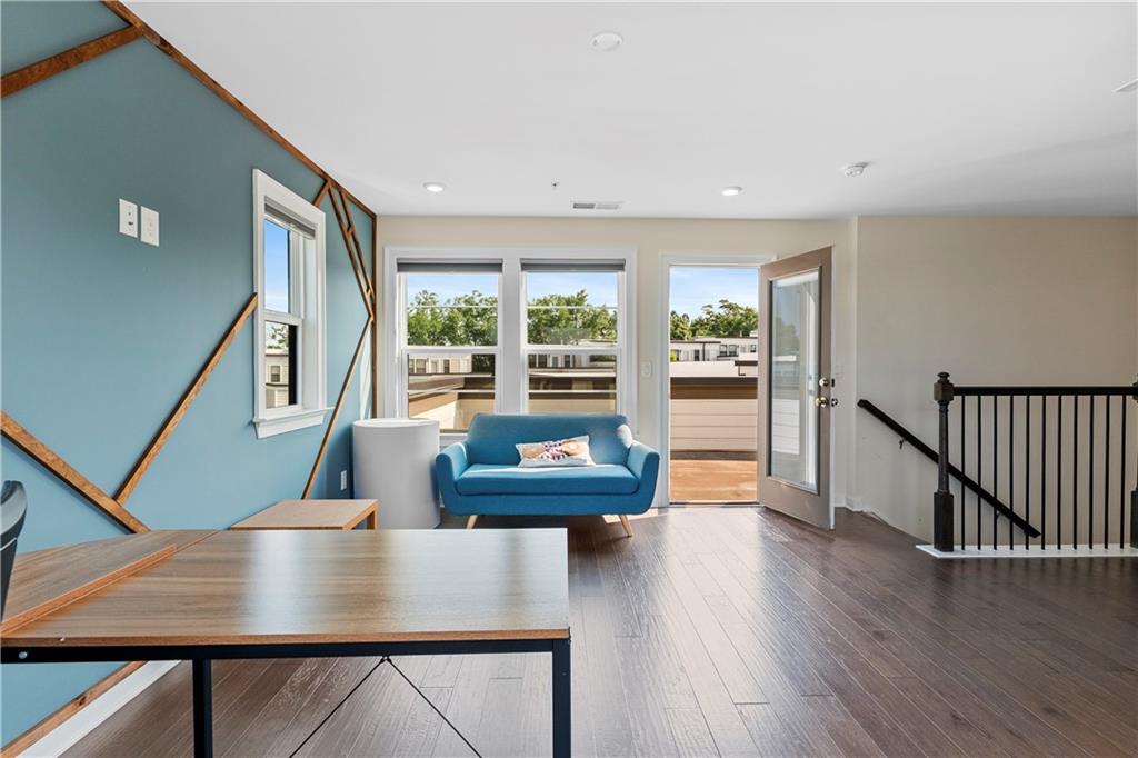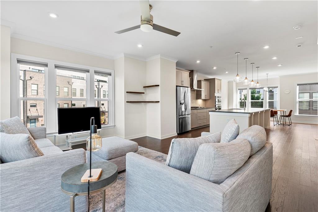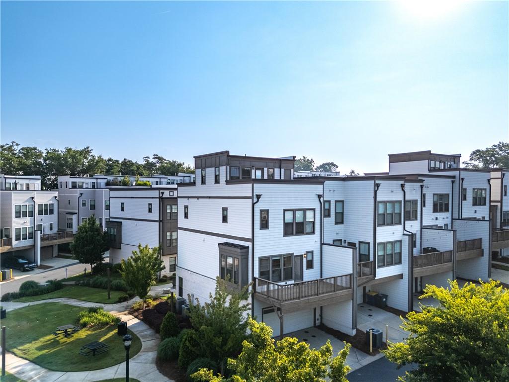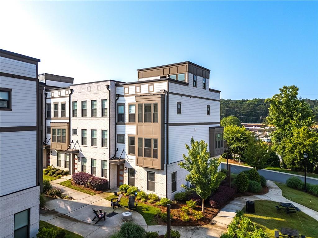 Welcome to this stunning end-unit townhome in the sought-after Altus at The Quarter community, where luxury meets convenience just minutes from West Midtown, The Works, and the Beltline. This modern 4-level home boasts an open-concept layout with floor-to-ceiling windows that flood the space with natural light. The chef’s kitchen features a massive quartz island, stainless steel appliances, sleek soft-close cabinetry, and double ovens—perfect for entertaining. The spacious living room opens to a private balcony, offering treetop views and seamless indoor-outdoor living. Retreat to the oversized owner’s suite with a walk-in closet and a spa-like bath complete with dual vanities, a frameless glass shower, and a private water closet. The versatile upper-level loft is ideal for a home office or media space and opens to a large rooftop terrace—perfect for enjoying city sunsets or morning coffee. Designer finishes, hardwood flooring throughout, a two-car garage, and energy-efficient construction complete this exceptional property. Enjoy professionally landscaped grounds and walkable paths in a gated, pet-friendly community. Easy access to I-75, downtown, Buckhead, and Midtown. Don’t miss this rare opportunity to own one of the most private and upgraded end units in the community!