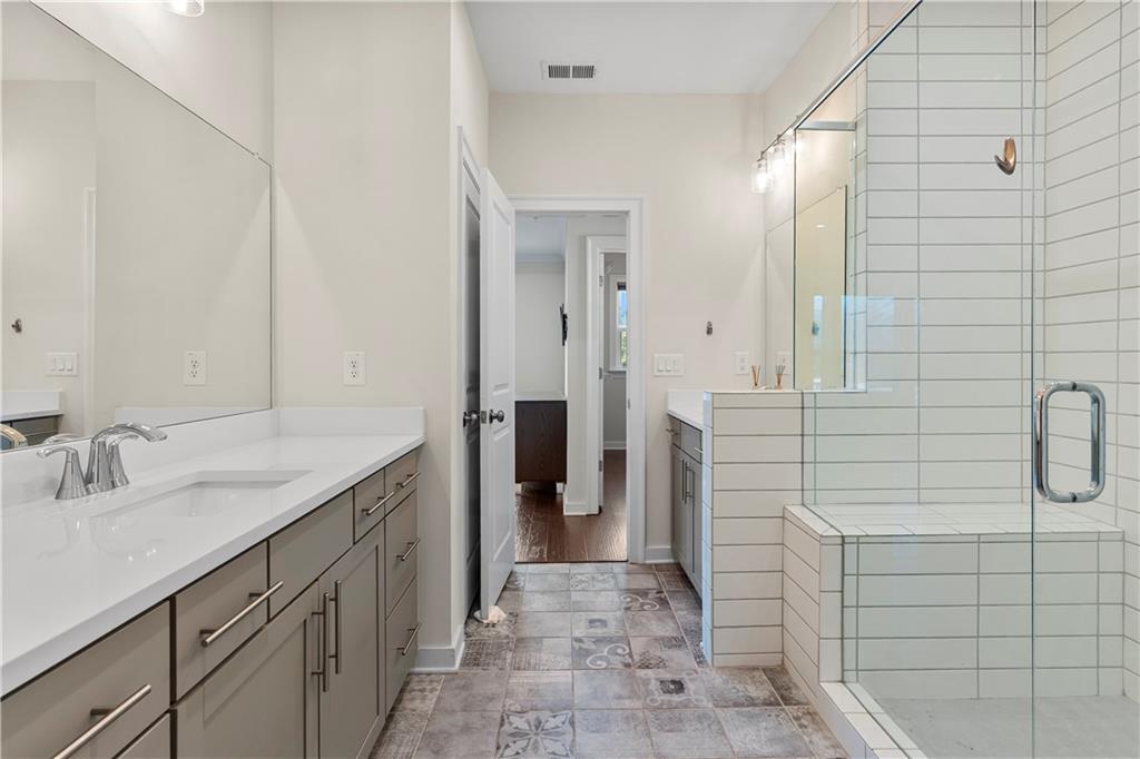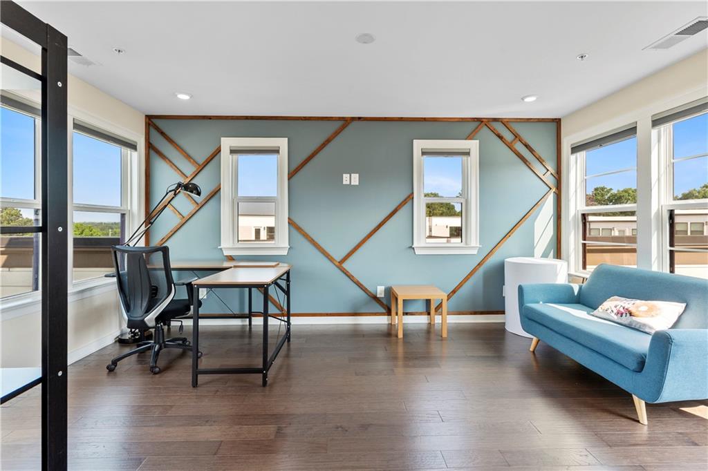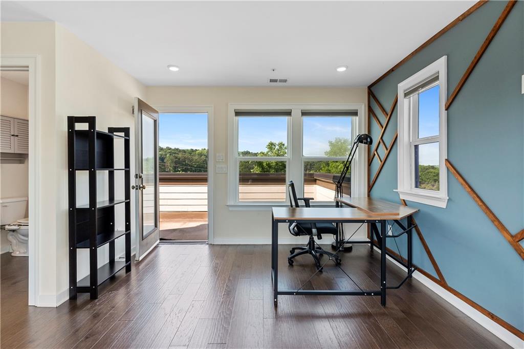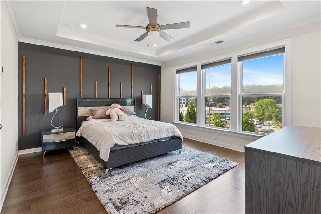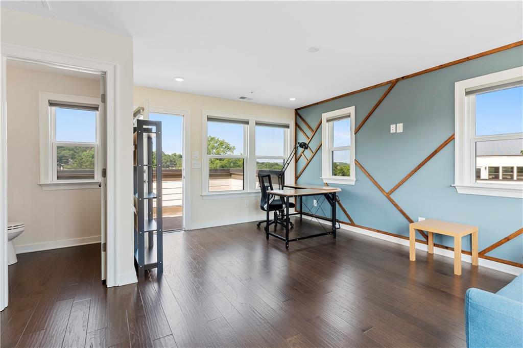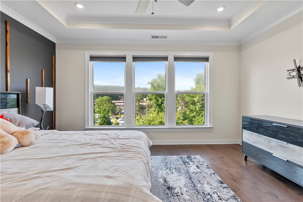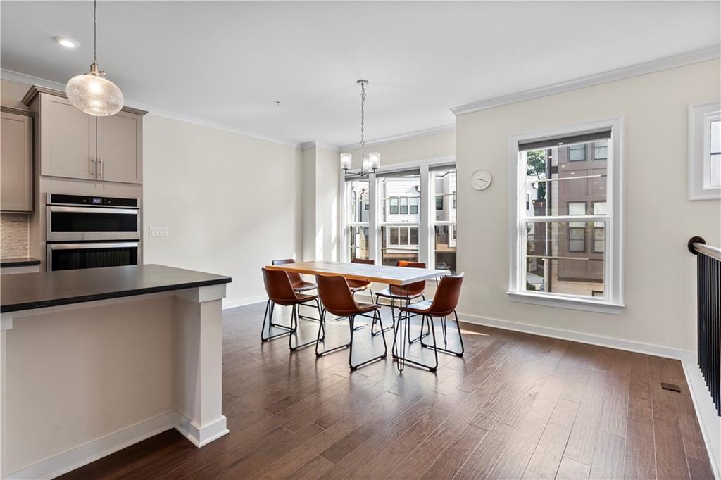 Welcome to this stunning end-unit townhome in the sought-after Altus at The Quarter community, where luxury meets convenience just minutes from West Midtown, The Works, and the Beltline. This modern 4-level home boasts an open-concept layout with floor-to-ceiling windows that flood the space with natural light. The chef’s kitchen features a massive quartz island, stainless steel appliances, sleek soft-close cabinetry, and double ovens—perfect for entertaining. The spacious living room opens to a private balcony, offering treetop views and seamless indoor-outdoor living. Retreat to the oversized owner’s suite with a walk-in closet and a spa-like bath complete with dual vanities, a frameless glass shower, and a private water closet. The versatile upper-level loft is ideal for a home office or media space and opens to a large rooftop terrace—perfect for enjoying city sunsets or morning coffee. Designer finishes, hardwood flooring throughout, a two-car garage, and energy-efficient construction complete this exceptional property. Enjoy professionally landscaped grounds and walkable paths in a gated, pet-friendly community. Easy access to I-75, downtown, Buckhead, and Midtown. Don’t miss this rare opportunity to own one of the most private and upgraded end units in the community!
