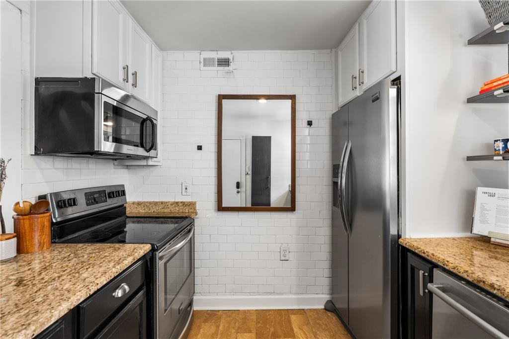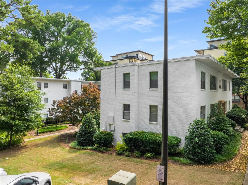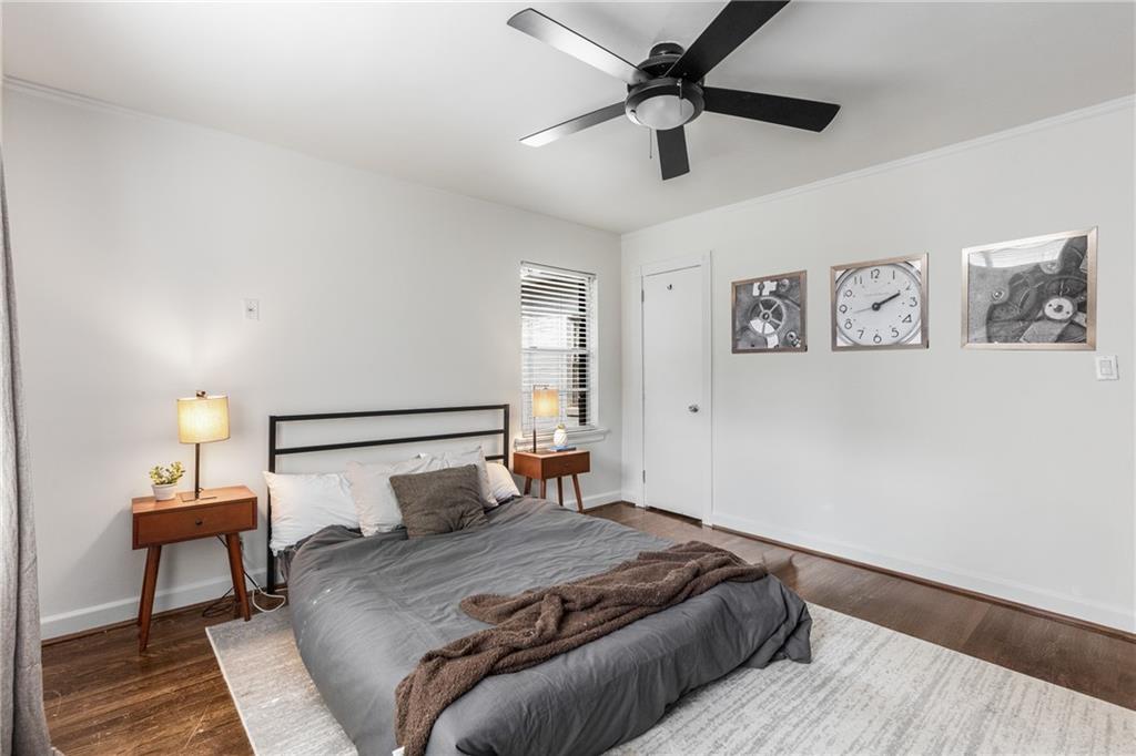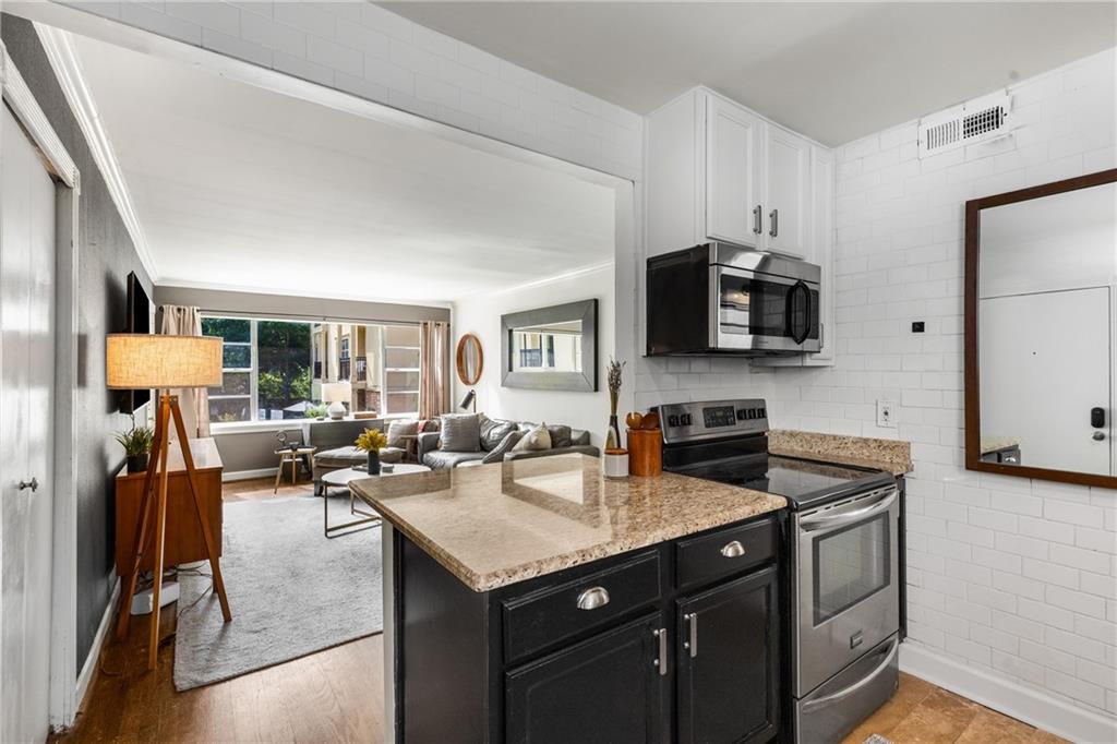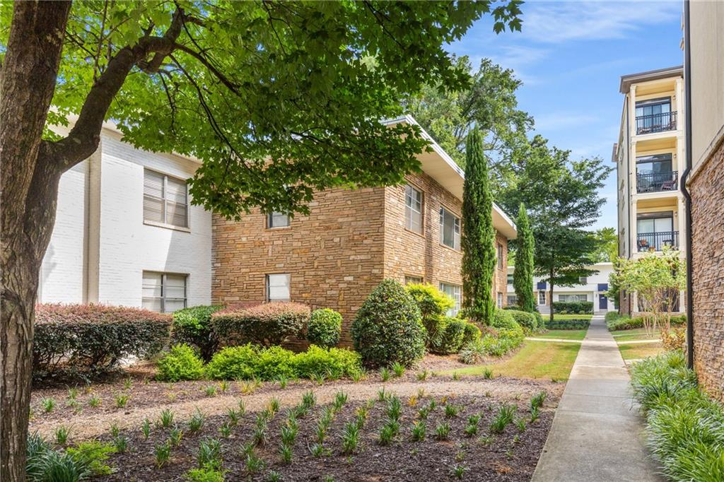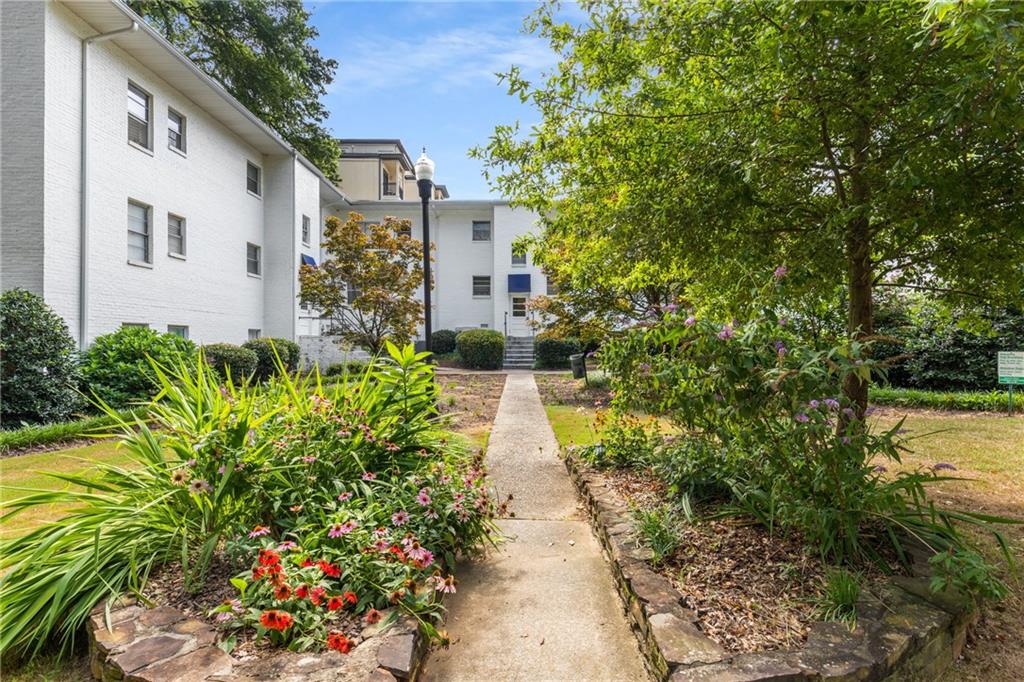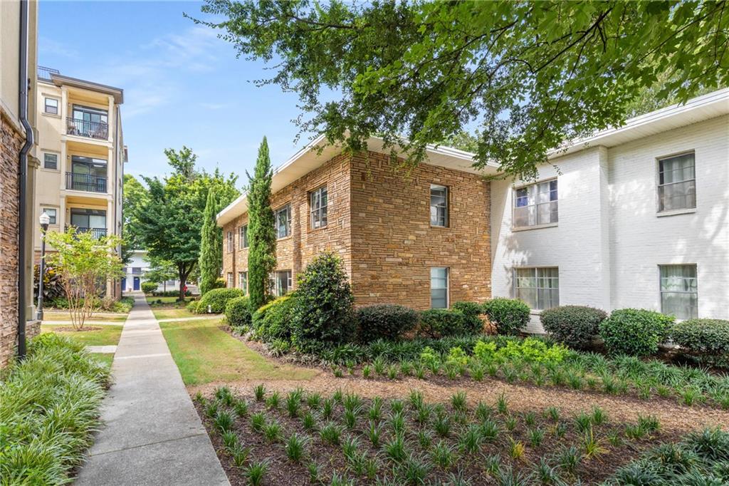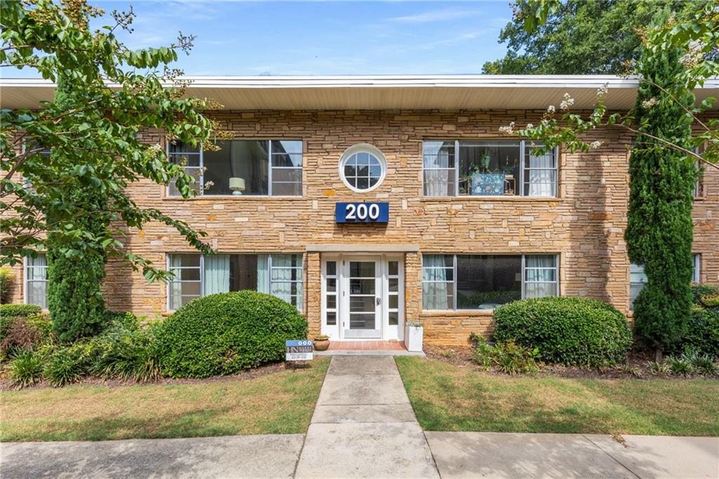This charming and updated 1940s condo offers the perfect blend of character and convenience in a prime location near Midtown and Buckhead. Featuring 2 bedrooms and 1 bathroom, the home showcases beautiful hardwood floors throughout and oversized, picturesque windows that fill the space with natural light. The spacious living room is ideal for entertaining, complete with a striking designer accent wall. The kitchen is well-equipped with ample storage, stainless steel appliances, subway tile walls, and extra shelving for added functionality. Both bedrooms are generously sized with built-in storage, and the renovated bathroom features floor-to-ceiling tile, a large walk-in shower, and rustic modern finishes. Freshly painted and move-in ready, this condo is located in a gated community with plenty of resident and guest parking. Enjoy outdoor amenities including a community courtyard and pool area, all while being just minutes from shopping, dining, and retail with easy access to I-75/85 and GA-400. HOA includes water. Inquire about potential rental permit availability for investors.