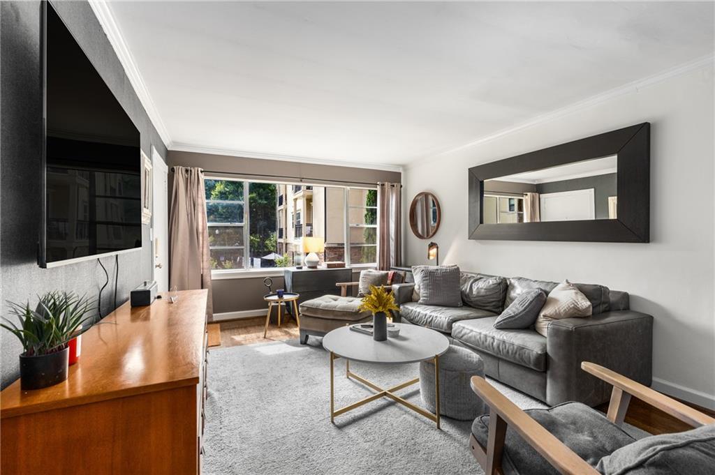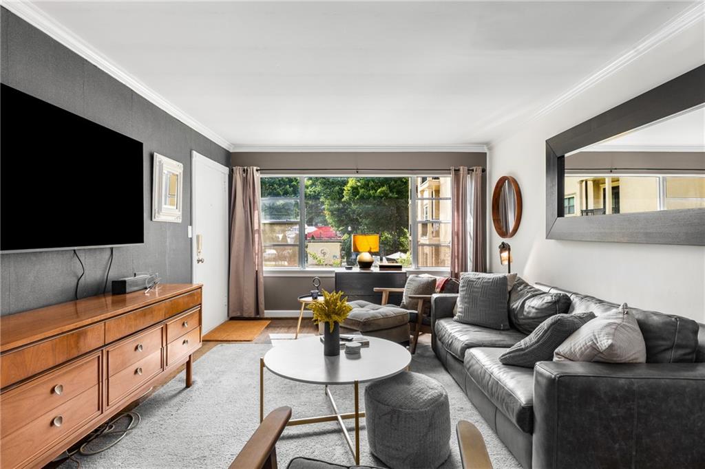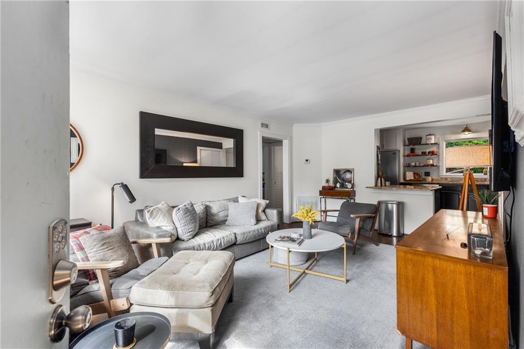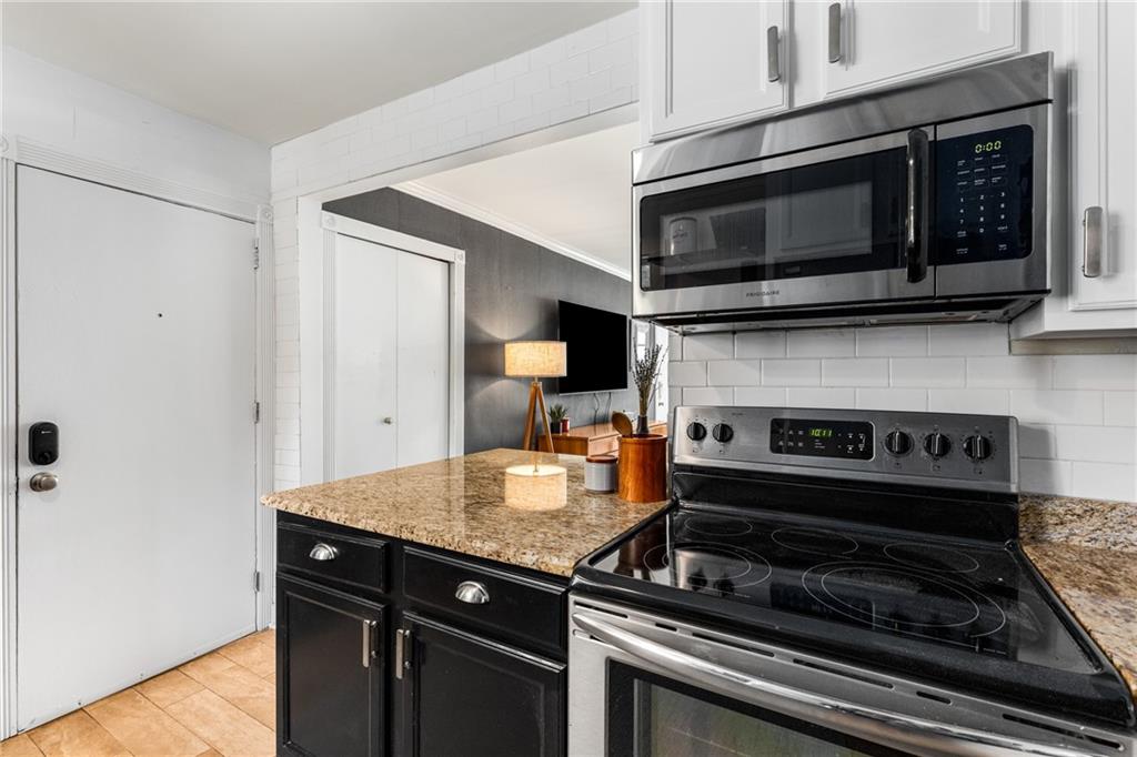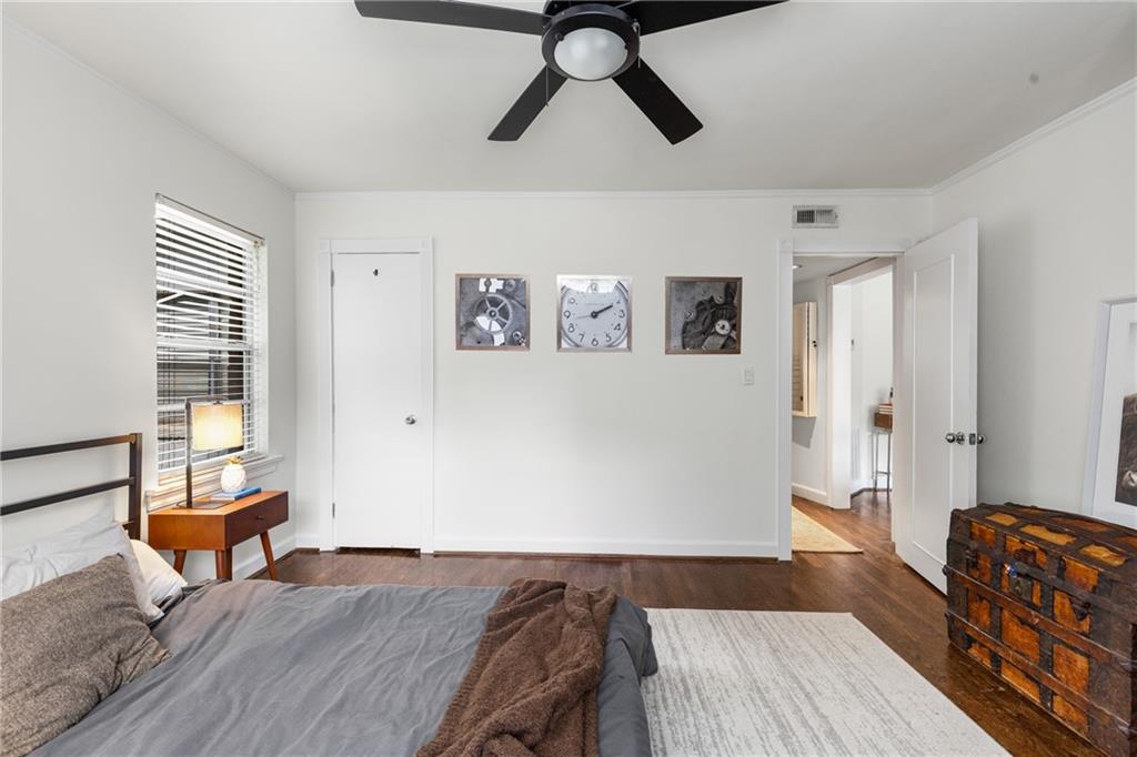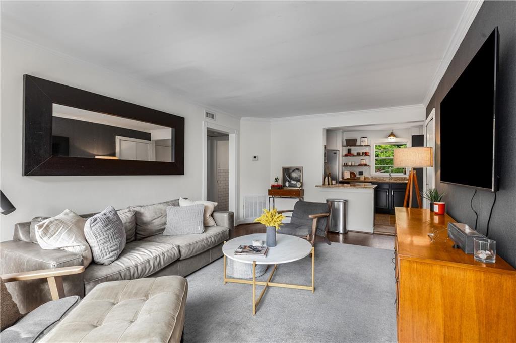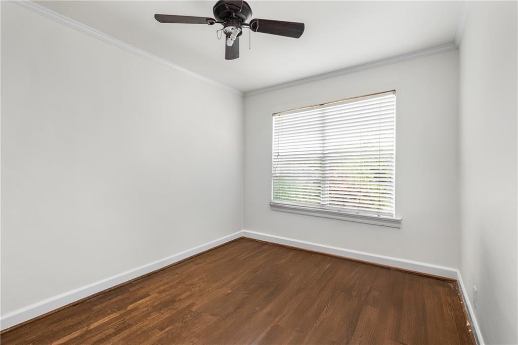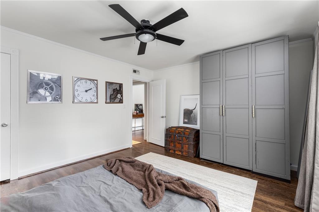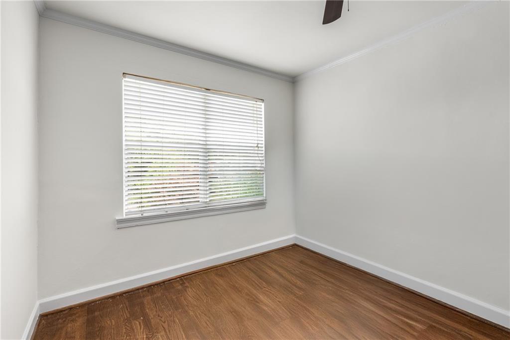 This charming and updated 1940s condo offers the perfect blend of character and convenience in a prime location near Midtown and Buckhead. Featuring 2 bedrooms and 1 bathroom, the home showcases beautiful hardwood floors throughout and oversized, picturesque windows that fill the space with natural light. The spacious living room is ideal for entertaining, complete with a striking designer accent wall. The kitchen is well-equipped with ample storage, stainless steel appliances, subway tile walls, and extra shelving for added functionality. Both bedrooms are generously sized with built-in storage, and the renovated bathroom features floor-to-ceiling tile, a large walk-in shower, and rustic modern finishes. Freshly painted and move-in ready, this condo is located in a gated community with plenty of resident and guest parking. Enjoy outdoor amenities including a community courtyard and pool area, all while being just minutes from shopping, dining, and retail with easy access to I-75/85 and GA-400. HOA includes water. Inquire about potential rental permit availability for investors.