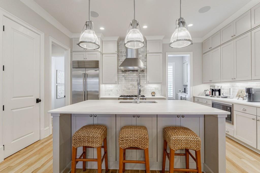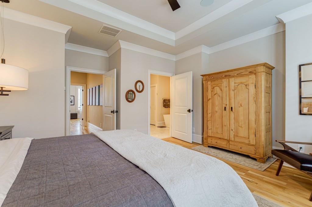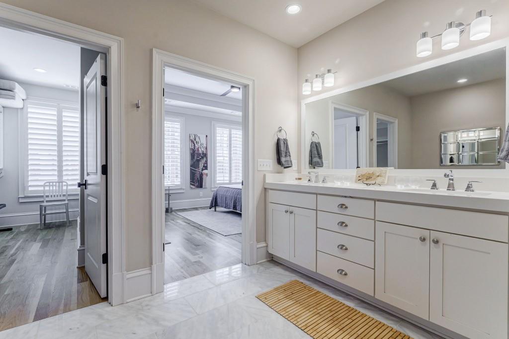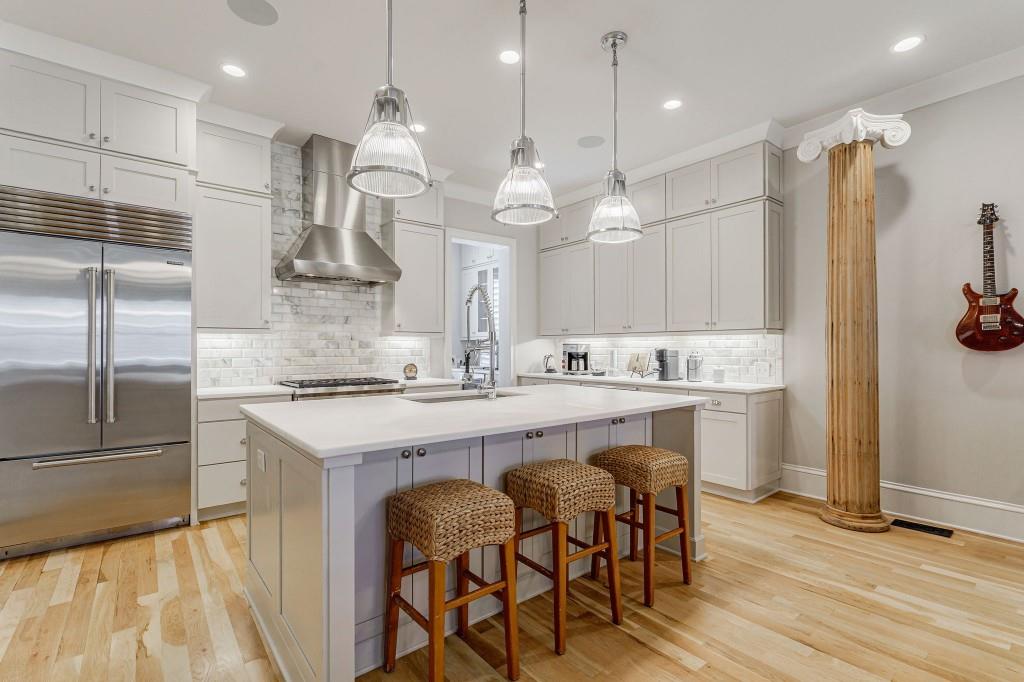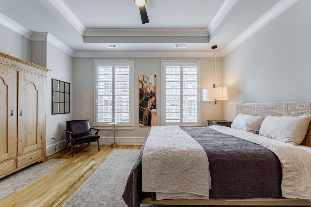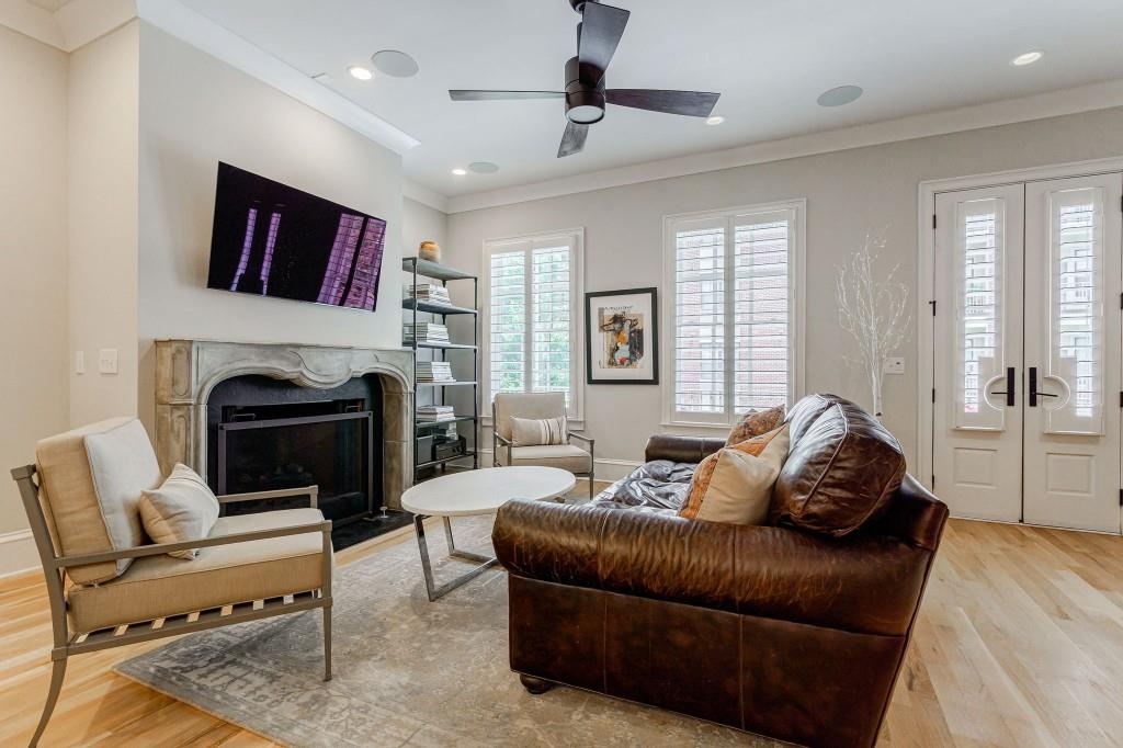 Stunning and very Chic Townhome in sought after St. Andrews neighborhood. Another stellar development by Monte Hewett. Nestled in the vibrant heart of Buckhead with walkability to the best restaurants and shops in Atlanta. This stylish and spacious residence offers a perfect blend of modern luxury and urban convenience. Chef's Kitchen with marble island seats 4 to 5 easily, Sub Zero refrigerator and dry bar with Sub Zero wine refrigerator, Asko SS dishwasher, WOLF 6 burner gas range, WOLF microwave, walk in pantry and upscale backsplash all open to family room with French doors to newly renovated balcony. Private Powder room accented with a marble wall. Custom architectural stone fireplace Mantle serves as a striking centerpiece in the main living area open to the outdoor balcony and kitchen. High ceilings throughout, Plantation shutters, walk- in closets with built-in's, and large laundry room with extra storage. Gorgeous White Oak Hardwoods with Natural finish throughout. Primary suite is spacious opening to marble bath with 2 walk-in closets, new lighting, and frameless glass shower doors. All additional bathrooms have frameless glass shower doors. Gated entry to the Two car garage parking area. Perfect move in ready home!
