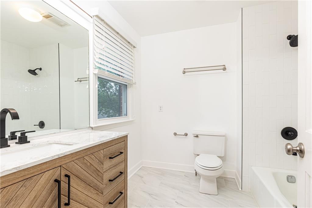 A FABULOUS RENOVATION IN A PRIME LOCATION! This stunning 3-bedroom, 3.5-bathroom townhouse is one of the largest units in a highly sought-after gated neighborhood known for its charm. Plus it has been completely renovated top to bottom, offering the perfect blend of comfort and style. Step inside the welcoming foyer to discover a light filled main level with brand-new flooring, updated lighting and a beautifully remodeled kitchen that boasts a large island with room for seating, sleek finishes, updated cabinetry, and stainless appliances—ideal for both everyday living and entertaining. The functional floor plan allows for a fireside living room, large dining area as well as a flex space that could work perfectly as a home office or hobby area. Upstairs you'll find the primary suite with large windows, sleek bathroom finishes, double vanity and double closets, plus an additional generously sized bedroom with a renovated private bathroom, providing an ideal layout for families or roommates. The terrace level is huge and features the newly added third bedroom, a newly renovated bathroom with double vanity plus a flex space that could funtion as a living area or game room. As for outdoor living spaces, this home does not disappoint! There is a massive deck off the kitchen that stretches the width of the home - plenty of space for grilling, dining and lounging. Plus there is a fenced in yard off the terrace level with a samll patio for seating. Enjoy the peace and security of a gated community, just minutes from top-rated schools, shopping, dining, and major commuter routes. Tesla charger included. A wonderful turnkey opportunity in one of the most desireable Atlanta locations.