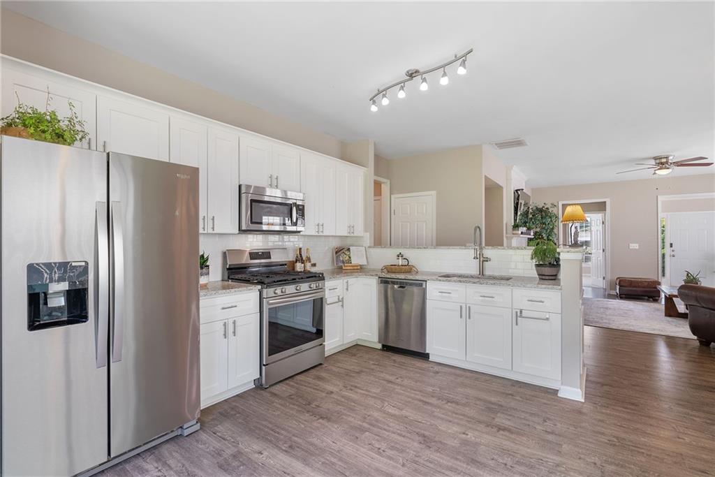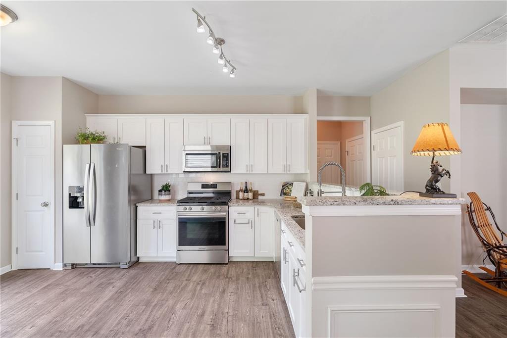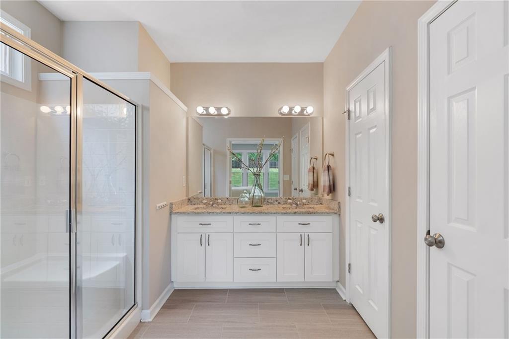 Welcome home to this freshly painted 2-bedroom, 2-bathroom RANCH designed for easy, one-level living in the highly sought-after Manchester Court subdivision! Enjoy a beautiful PRIVATE FENCED YARD and COVERED PATIO! Upon entering the foyer, you will be led into the spacious great room, dining area, and kitchen offering a bright, open-concept floor plan with new LVP flooring, 2 inch wood blinds, and an updated kitchen with new cabinets, granite countertops, tiled backsplash and stainless steel appliances. Both bedrooms feature brand new carpeting and have ensuite bathrooms that have been updated with new cabinetry, solid surface countertops and tiled floors. Manchester Court has sidewalk lined streets, is known for its well-manicured lots, professional landscaping (included in the HOA) and a welcoming clubhouse. All of this is just minutes from Northside Forsyth Hospital, The Collection, Market Place Blvd, downtown Cumming, GA 400, and the vibrant new Cumming City Center.