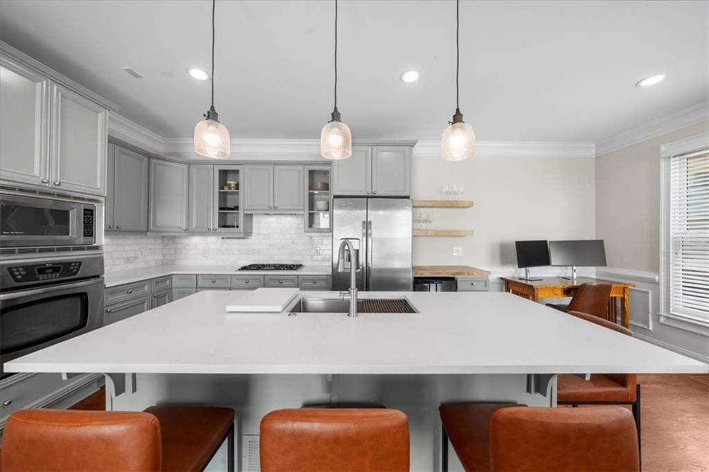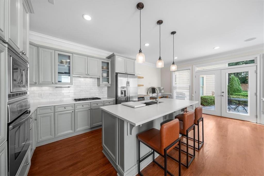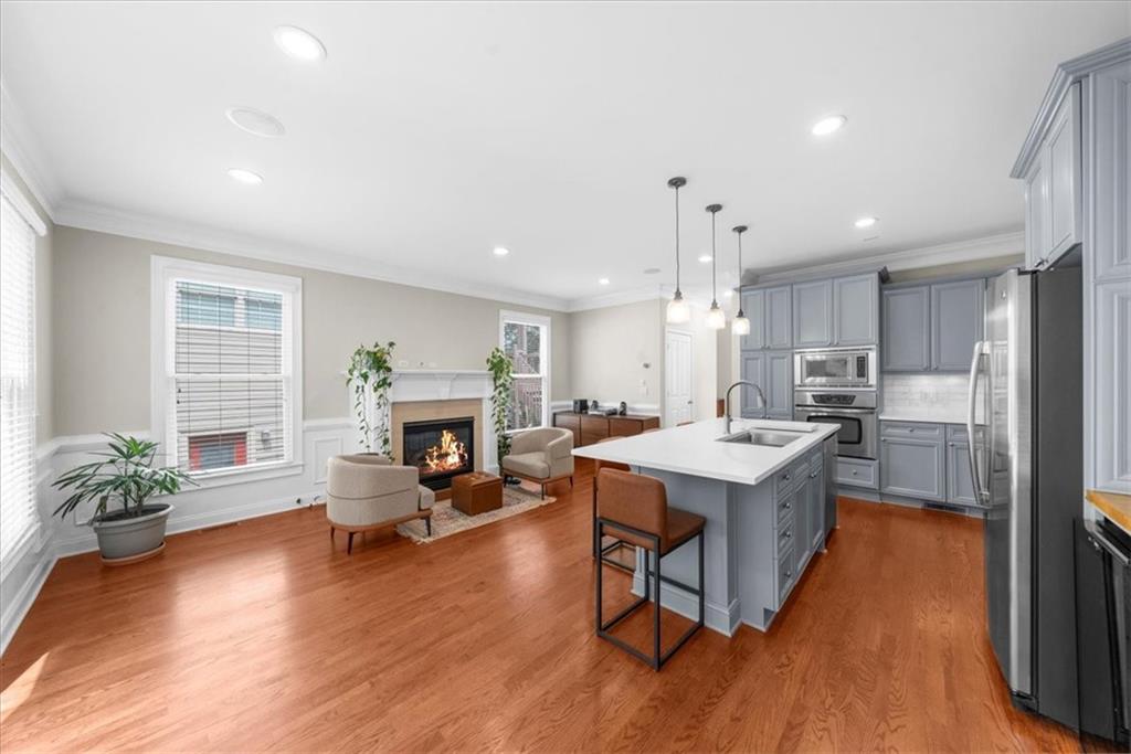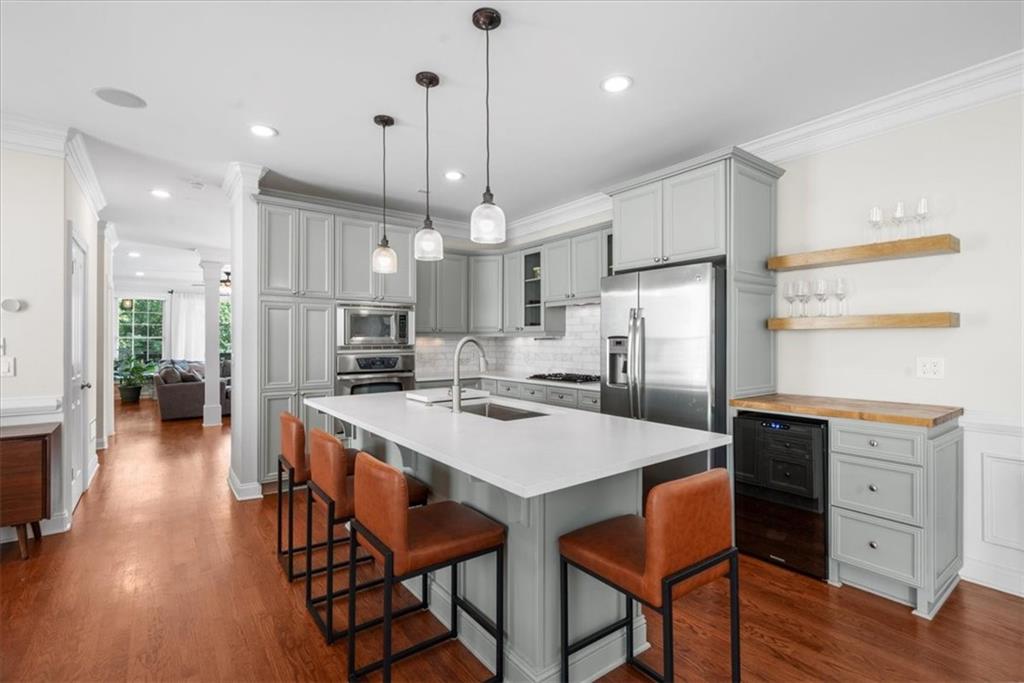 Welcome to this stunning three-story townhome in one of Atlanta’s hottest neighborhoods — Underwood Hills — just minutes from The Works, Topgolf, Westside Ironworks, and the future BeltLine extension! The expansive main level features soaring ceilings, elegant crown molding, and gleaming hardwood floors throughout. Large windows flood the space with natural light, while the open-concept layout makes entertaining a breeze. The fully renovated kitchen includes a spacious island with bar seating, stainless steel appliances, a coffee/dry bar with wine fridge, and an adjoining keeping room with a fireplace and walk-out shaded patio.Upstairs, the oversized primary suite offers a private balcony, a walk-in closet, and a gorgeous renovated en-suite with high-end finishes. Two additional bedrooms share a full bath on the upper level, along with a separate walk-in laundry room for added convenience. Additional highlights include an unfinished daylight basement, stubbed for a bathroom — perfect for a future fourth bedroom or flex space — and a two-car garage with a Level 2 EV charger. Enjoy prime walkability to shops, dining, and green space. Don’t miss your chance to own a beautifully maintained, move-in ready home in this vibrant and growing West Midtown community!