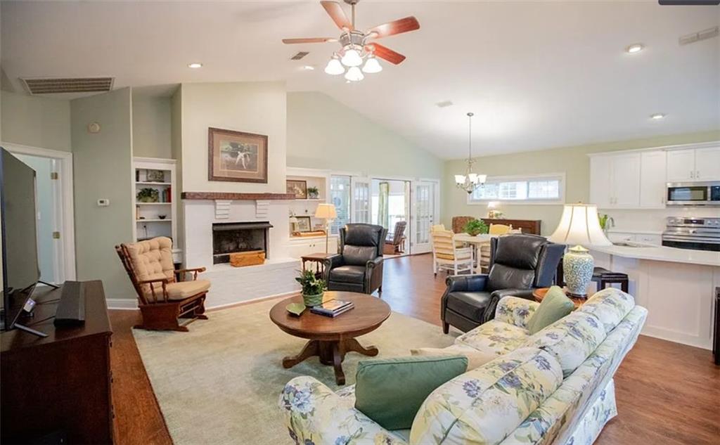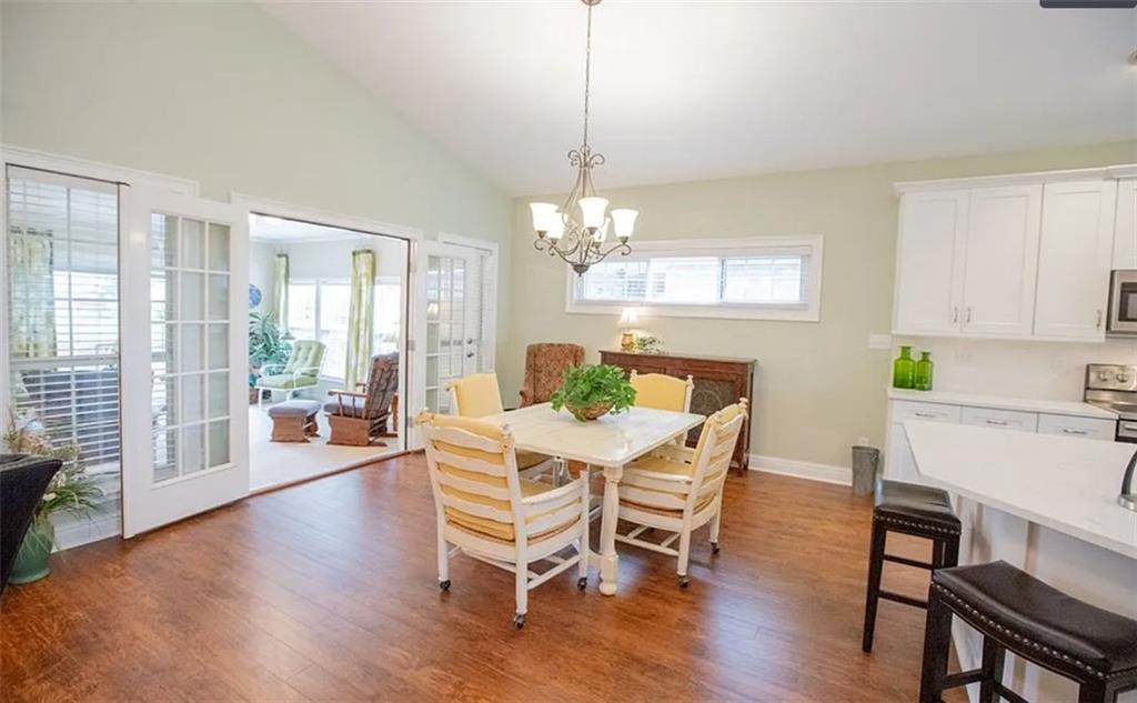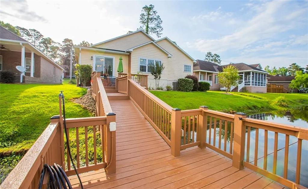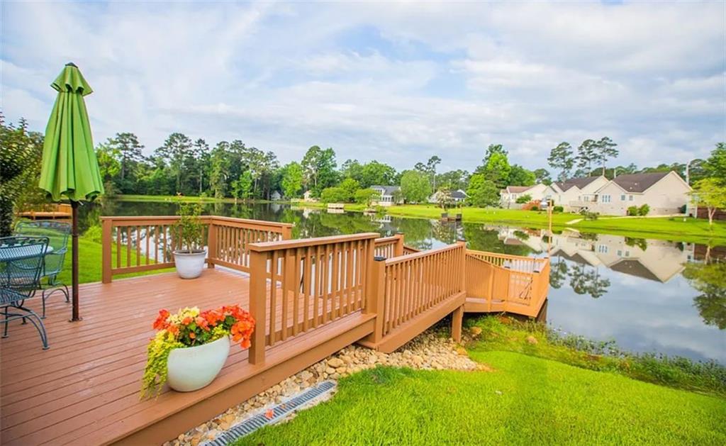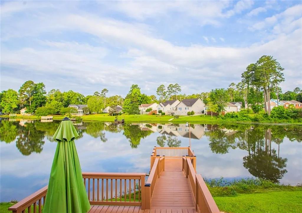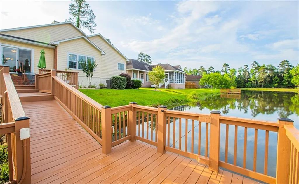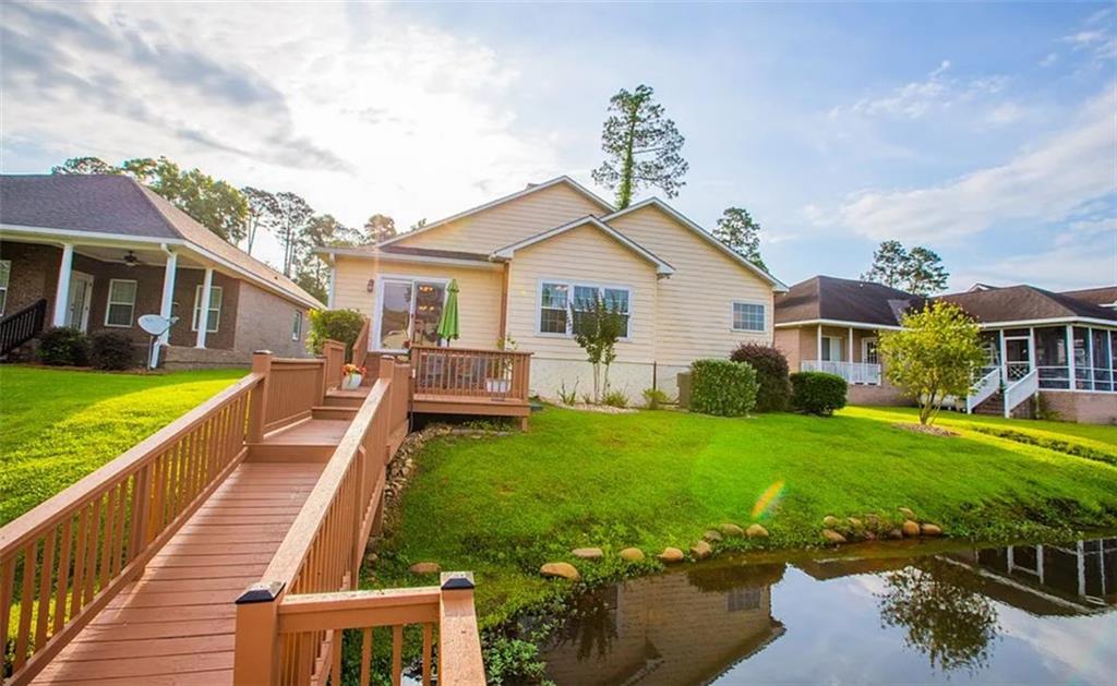 Welcome to your new dream home! This stunning property boasts high, vaulted ceilings that create a light and airy atmosphere throughout the open-concept family room, dining room, and kitchen area. The kitchen features a convenient breakfast bar that's perfect for casual meals. Cozy up by the fireplace on those cool evenings, surrounded by gleaming wood floors that add warmth and elegance. The master suite includes luxurious dual vanity sinks and a spa-like bathroom with a separate garden tub and shower. Step outside to the sitting area that offers breathtaking views of the lake. Enjoy direct lakefront access from your beautiful private dock-the perfect spot for morning coffee or evening sunsets. The exquisite property is complemented by great landscaping, making this a truly exceptional place to call home. This beautiful home provides the perfect blend of comfort and luxury. With its spacious layout and elegant features, it's the ideal space for both relaxing and entertaining. The high ceilings not only create a sense of openness but also offer ample natural light, making the home feel bright and inviting. The primary suite is a true retreat with its own bathroom that features a garden tub that is perfect for unwinding after a long day, and the separate shower adds convenience and functionality. But the true highlight of this property is the stunning lakefront views. The fully enclosed sitting area allows you to enjoy these picturesque views in any weather, making it a year-round oasis with your own private dock, you can easily take advantage of all that the lake has to offer.