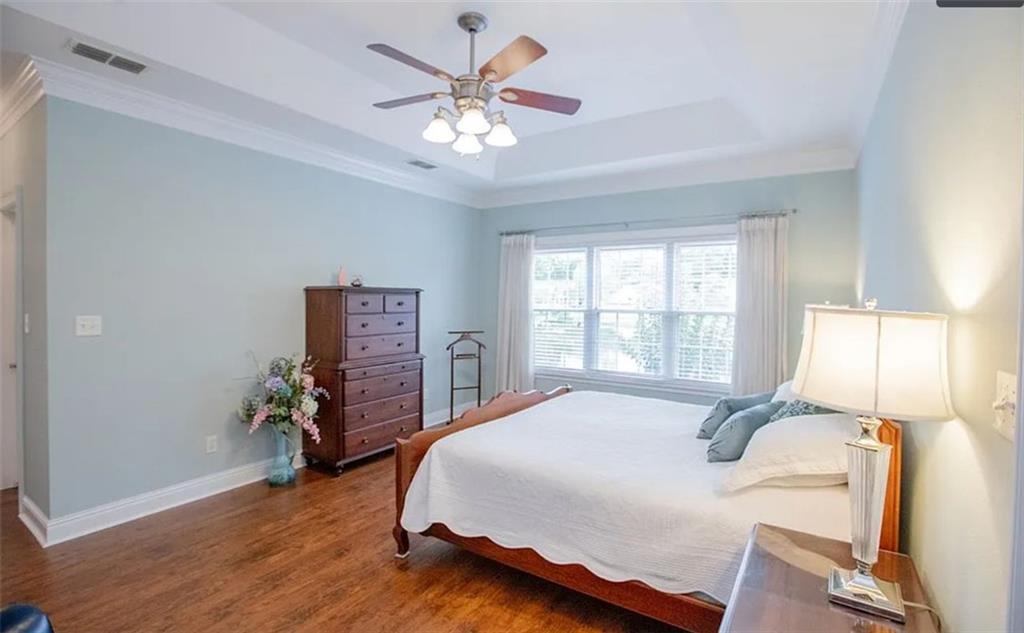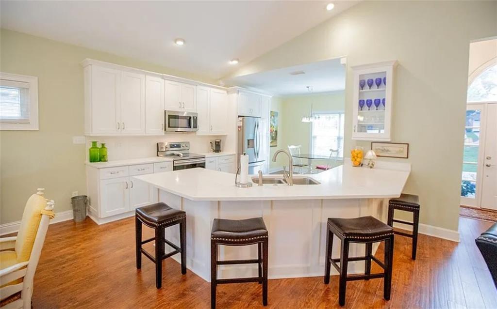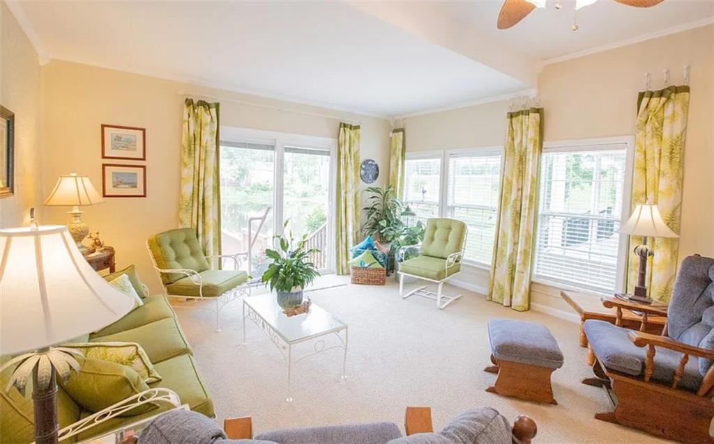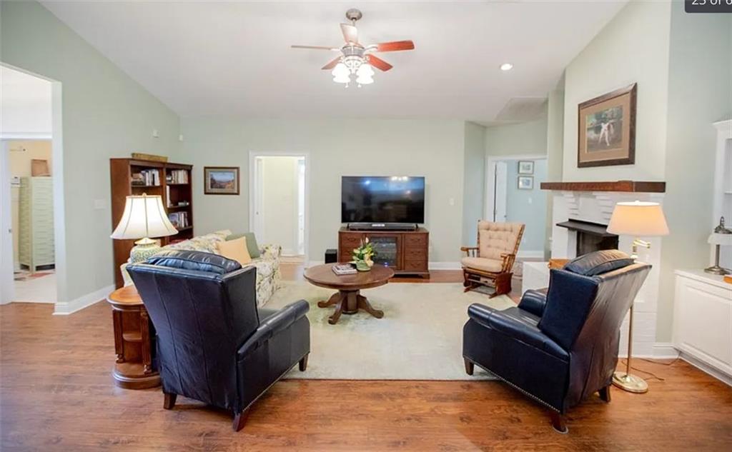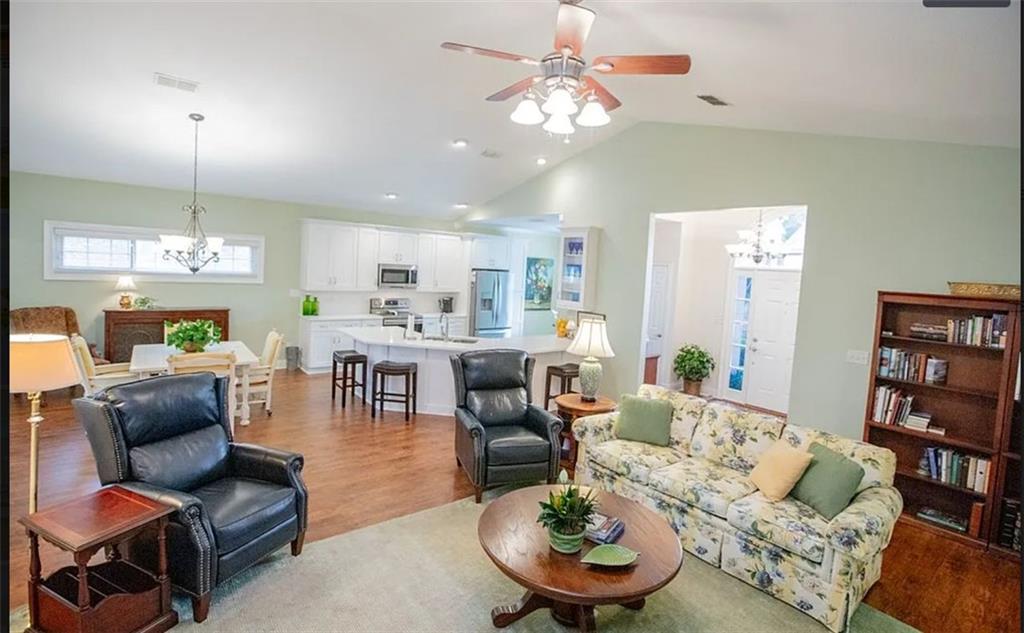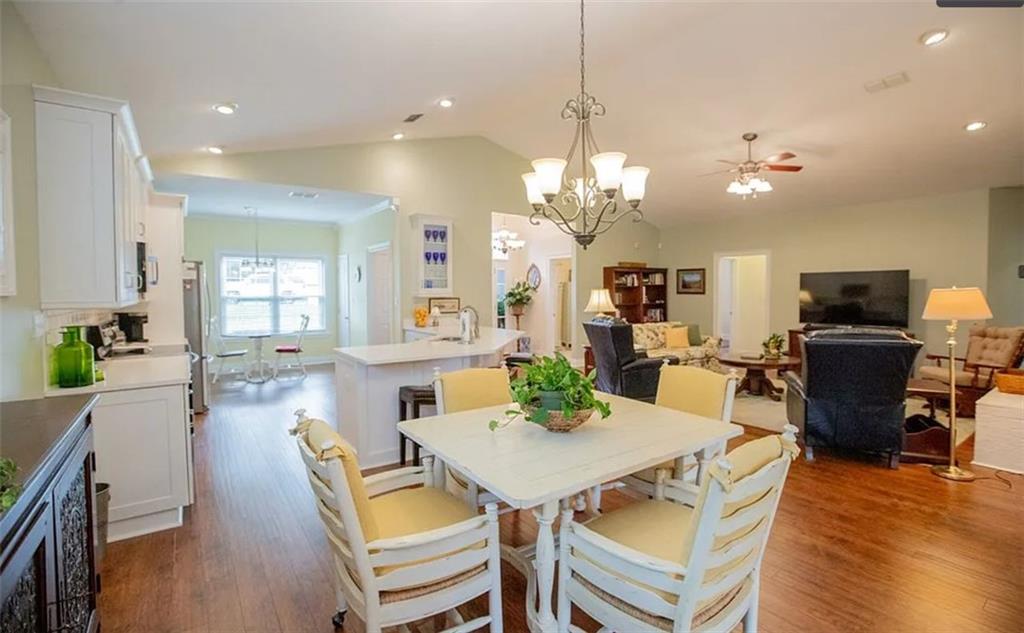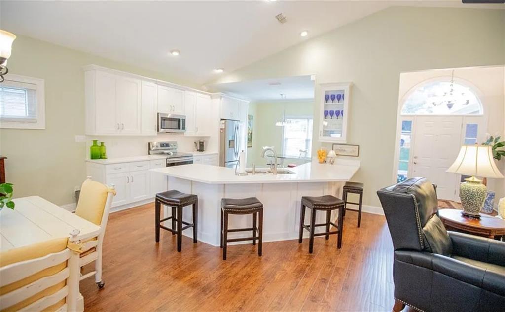 Welcome to your new dream home! This stunning property boasts high, vaulted ceilings that create a light and airy atmosphere throughout the open-concept family room, dining room, and kitchen area. The kitchen features a convenient breakfast bar that's perfect for casual meals. Cozy up by the fireplace on those cool evenings, surrounded by gleaming wood floors that add warmth and elegance. The master suite includes luxurious dual vanity sinks and a spa-like bathroom with a separate garden tub and shower. Step outside to the sitting area that offers breathtaking views of the lake. Enjoy direct lakefront access from your beautiful private dock-the perfect spot for morning coffee or evening sunsets. The exquisite property is complemented by great landscaping, making this a truly exceptional place to call home. This beautiful home provides the perfect blend of comfort and luxury. With its spacious layout and elegant features, it's the ideal space for both relaxing and entertaining. The high ceilings not only create a sense of openness but also offer ample natural light, making the home feel bright and inviting. The primary suite is a true retreat with its own bathroom that features a garden tub that is perfect for unwinding after a long day, and the separate shower adds convenience and functionality. But the true highlight of this property is the stunning lakefront views. The fully enclosed sitting area allows you to enjoy these picturesque views in any weather, making it a year-round oasis with your own private dock, you can easily take advantage of all that the lake has to offer.