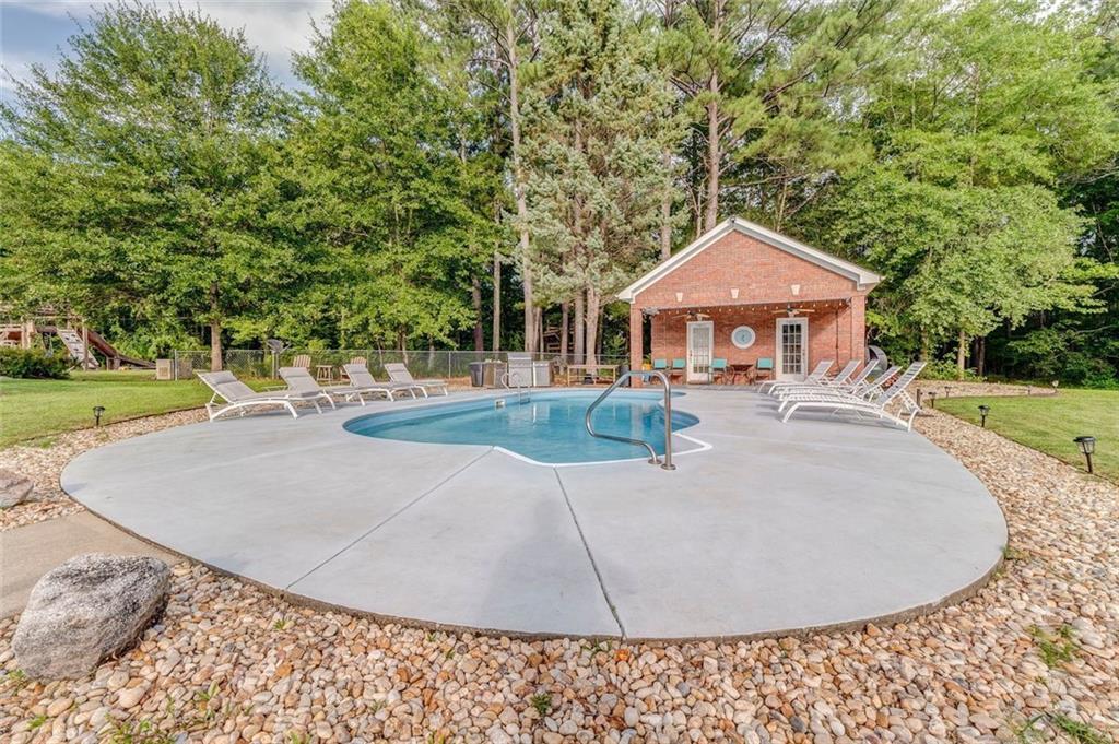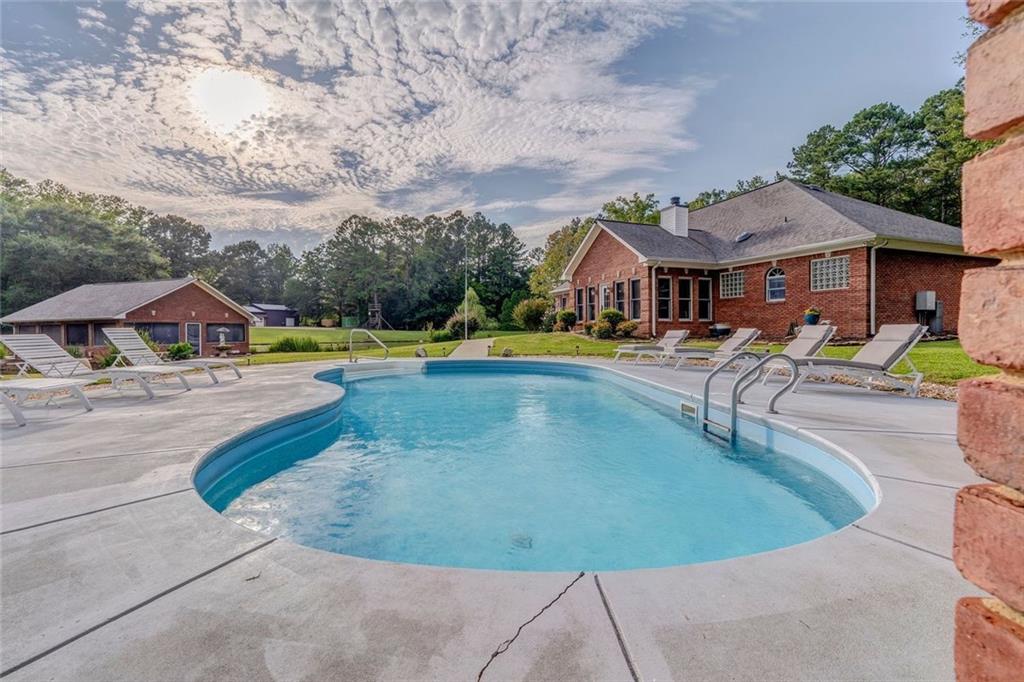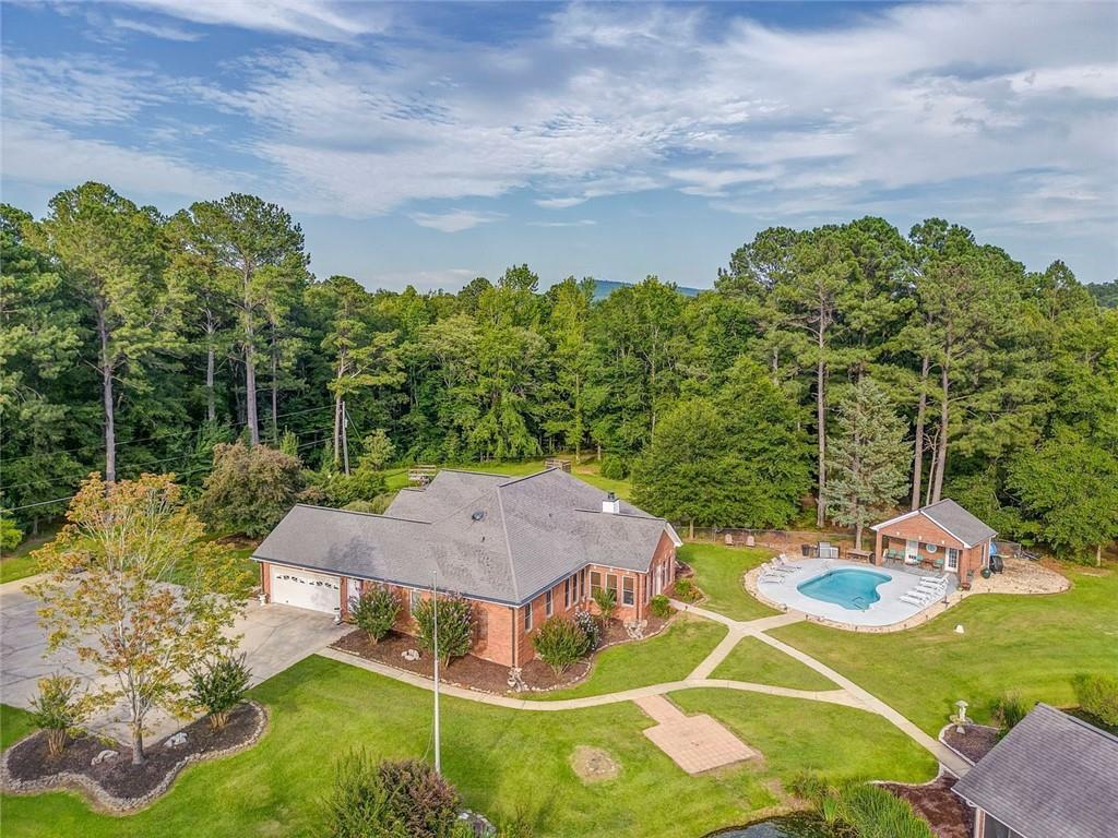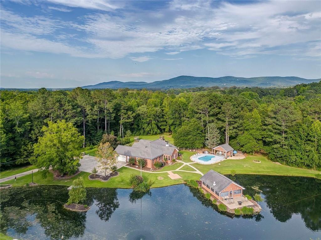 Welcome to your private 10-acre paradise—where luxury living meets the ultimate outdoor lifestyle. Tucked behind a grand columned entrance, this 3-bedroom, 2-bath main house opens into a soaring foyer that sets the tone for comfortable Southern living. The main living areas include a cozy kitchen, a warm family room with fireplace, and a charming sunroom—also with its own fireplace—for year-round relaxation. The spacious master suite is a true retreat, featuring a private sitting area and a spa-like bath complete with a steam shower and bidet. Three additional bedrooms offer space for family or guests, with a well-appointed second bath nearby. But the true magic of this property lies outdoors. Follow the paved path through this meticulously maintained estate to discover a stunning array of amenities: – Inground heated pool with an adorable pool house featuring a full bath and separate storage area – Massive covered pavilion with a full outdoor kitchen—ideal for weddings, reunions, retreats, or unforgettable family gatherings – Stocked pond with peaceful seating area, perfect for evening fishing or quiet reflection – Guest house with a kitchen, bath, living room, and bedroom—ideal for visitors or multi-generational living – Detached 1,800+ sq ft garage with 4 roll-up doors for all your vehicles, equipment, and recreational toys – Ziplines and private hiking trails that make every day feel like a getaway Whether you're looking for a personal retreat, an event-ready estate, or an entertainer’s dream, this property delivers unforgettable experiences at every turn. Don’t miss the opportunity to own one of the most unique and versatile properties on the market today!