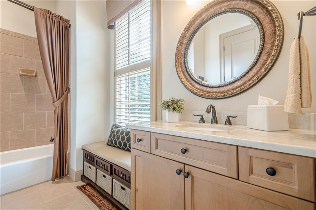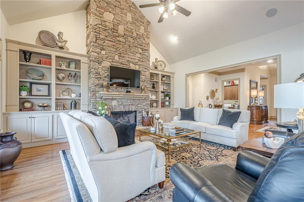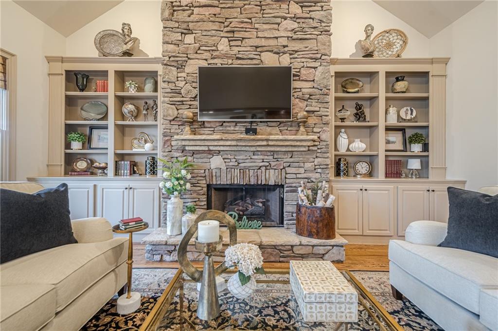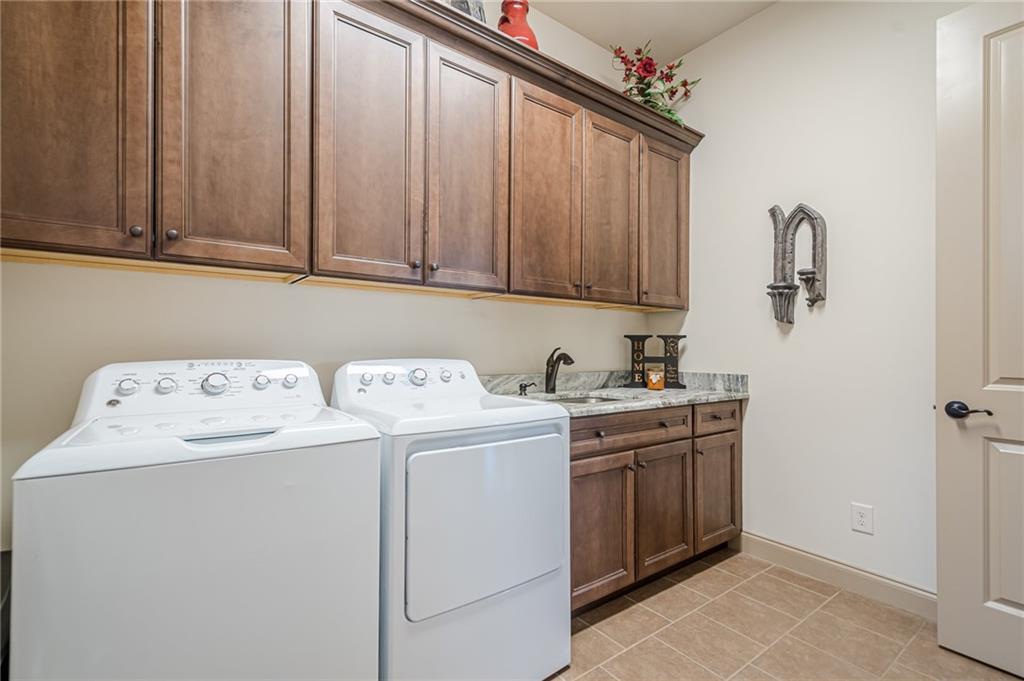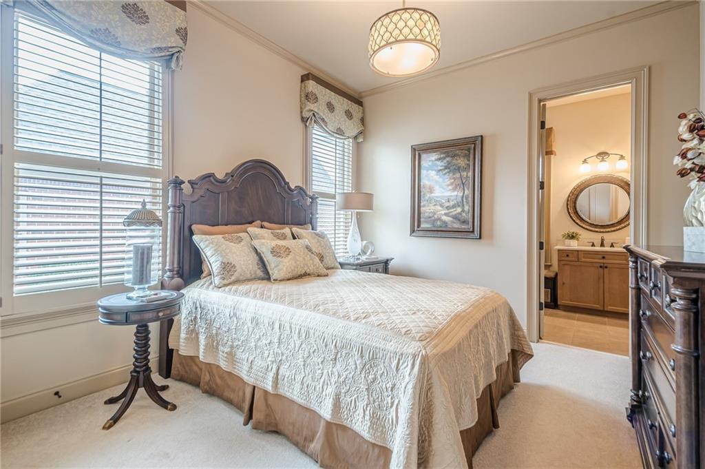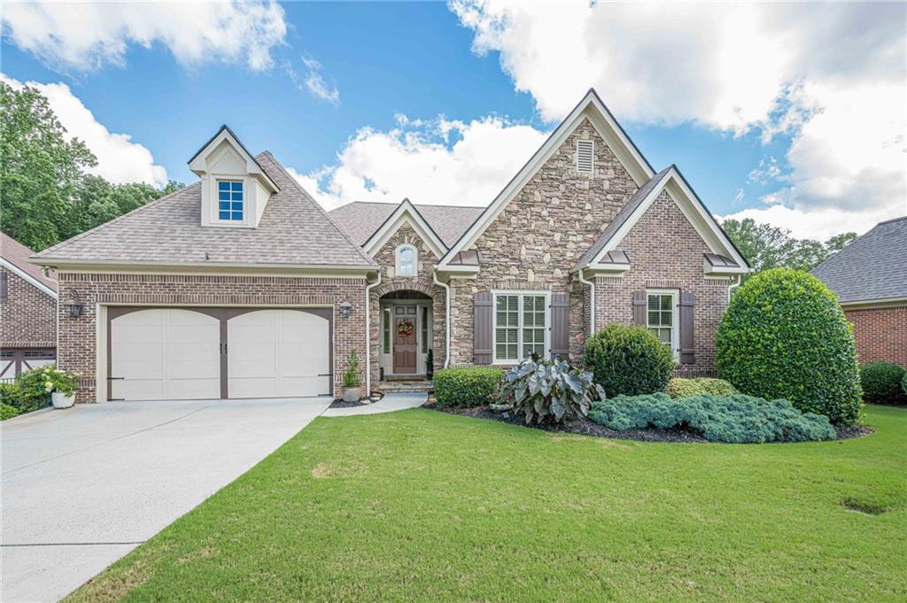 Located in a gated community, this stunning four-sided brick ranch with a fully finished basement is a rare find. Thoughtfully designed with high-end finishes and a functional floor plan, the home features vaulted ceilings, custom plantation shutters, and elegant crown molding throughout. The great room’s floor-to-ceiling stacked stone fireplace is flanked by custom-built bookcases, while French doors open to a screened porch with Trex flooring and built-in speakers—perfect for relaxing or entertaining. The kitchen is a showstopper, featuring quartzite countertops, custom cabinetry, and a layout that beautifully blends form and function. The spacious laundry room offers built-in cabinetry, a sink, and a direct connection to the primary suite for added convenience. The fully finished terrace level is a true extension of the home’s luxury, offering high-end finishes throughout. A stunning mahogany bar, gas fireplace, and French doors opening to a covered brick-floor patio set the stage for unforgettable gatherings. The dedicated billiards room, media area, and oversized bedroom provide both flexibility and comfort, whether hosting a crowd or enjoying a quiet evening in. Outside, the expansive brick and stone patio is surrounded by lush landscaping and wooded privacy, with stone pathways that add charm and character to the peaceful retreat. This home is situated in Parkside at the Polo Fields, an exclusive gated section within the Polo Fields community. Just steps away, the Polo Golf and Country Club offers access to premier amenities including golf, tennis, swimming, and dining. A perfect blend of elegance, comfort, and character—this home offers an exceptional lifestyle in one of the area's most sought-after neighborhoods. See the features list in the documents for even more details about the upgrades to this exceptional property.