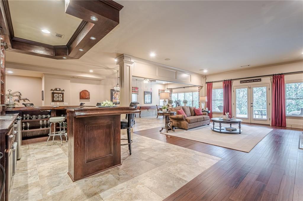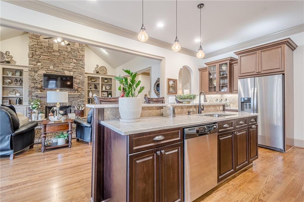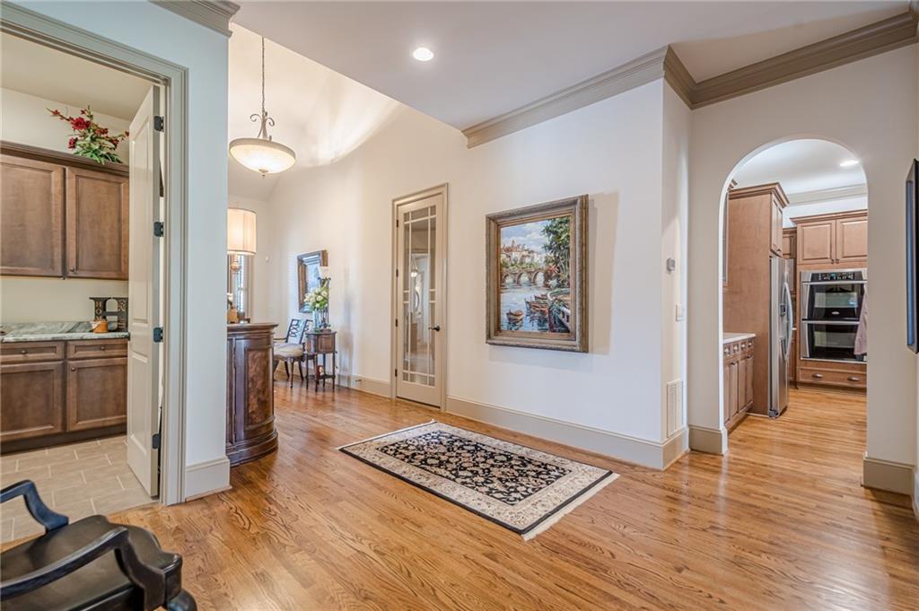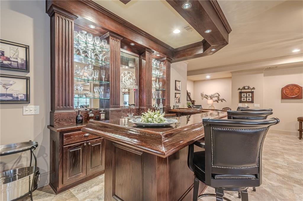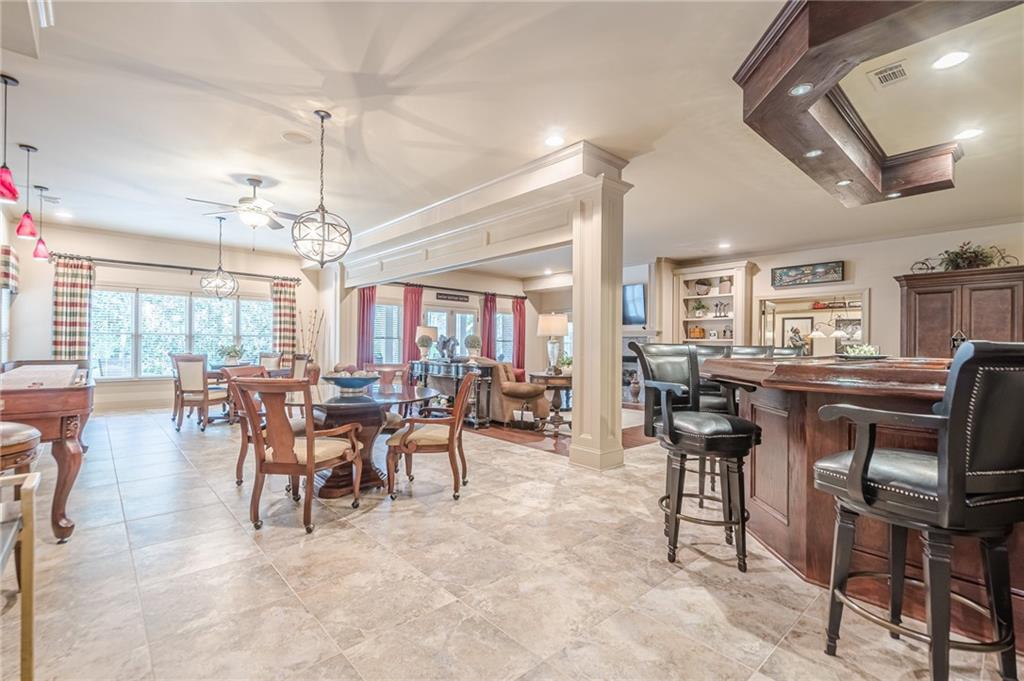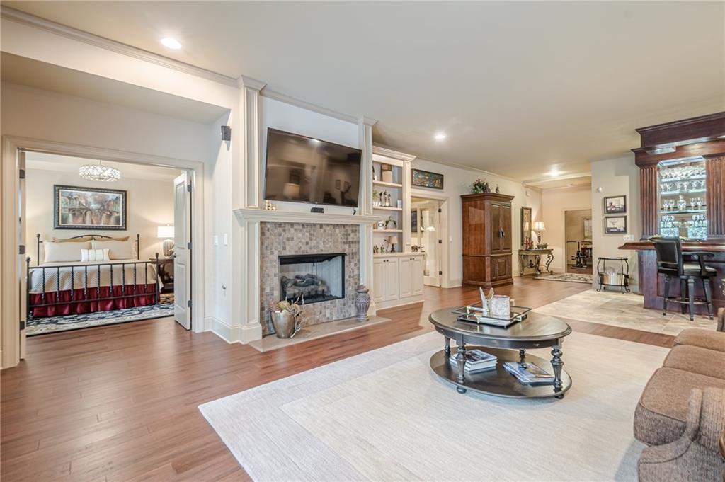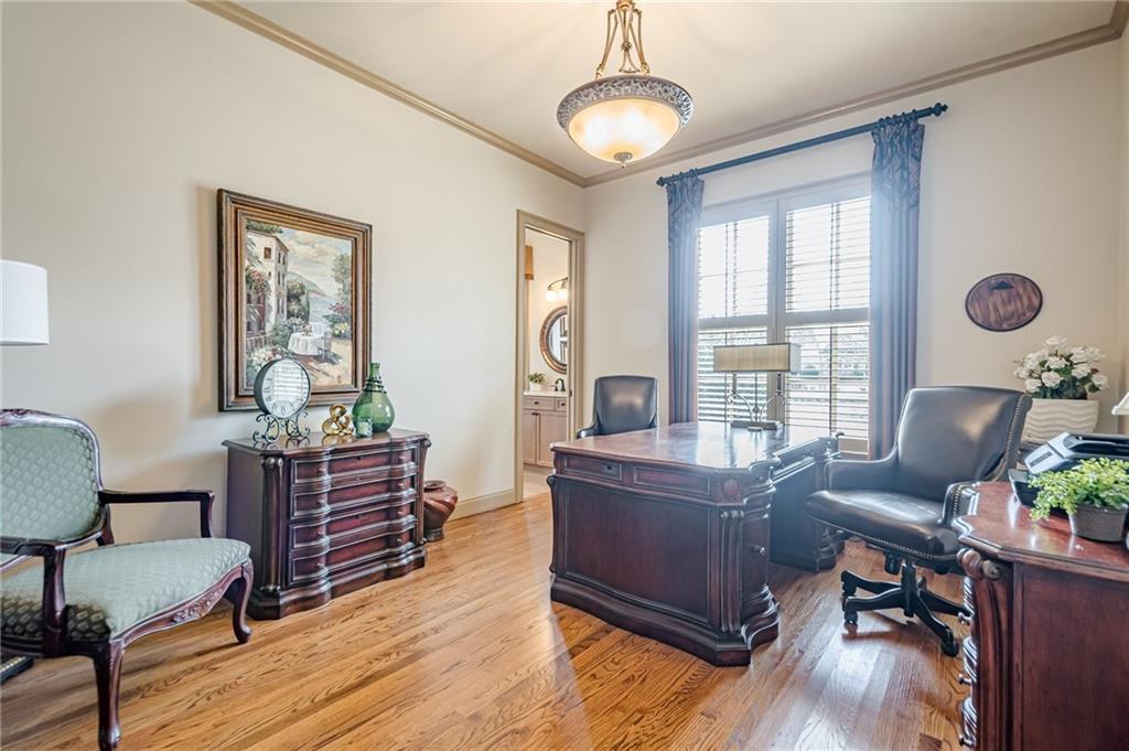 Located in a gated community, this stunning four-sided brick ranch with a fully finished basement is a rare find. Thoughtfully designed with high-end finishes and a functional floor plan, the home features vaulted ceilings, custom plantation shutters, and elegant crown molding throughout. The great room’s floor-to-ceiling stacked stone fireplace is flanked by custom-built bookcases, while French doors open to a screened porch with Trex flooring and built-in speakers—perfect for relaxing or entertaining. The kitchen is a showstopper, featuring quartzite countertops, custom cabinetry, and a layout that beautifully blends form and function. The spacious laundry room offers built-in cabinetry, a sink, and a direct connection to the primary suite for added convenience. The fully finished terrace level is a true extension of the home’s luxury, offering high-end finishes throughout. A stunning mahogany bar, gas fireplace, and French doors opening to a covered brick-floor patio set the stage for unforgettable gatherings. The dedicated billiards room, media area, and oversized bedroom provide both flexibility and comfort, whether hosting a crowd or enjoying a quiet evening in. Outside, the expansive brick and stone patio is surrounded by lush landscaping and wooded privacy, with stone pathways that add charm and character to the peaceful retreat. This home is situated in Parkside at the Polo Fields, an exclusive gated section within the Polo Fields community. Just steps away, the Polo Golf and Country Club offers access to premier amenities including golf, tennis, swimming, and dining. A perfect blend of elegance, comfort, and character—this home offers an exceptional lifestyle in one of the area's most sought-after neighborhoods. See the features list in the documents for even more details about the upgrades to this exceptional property.