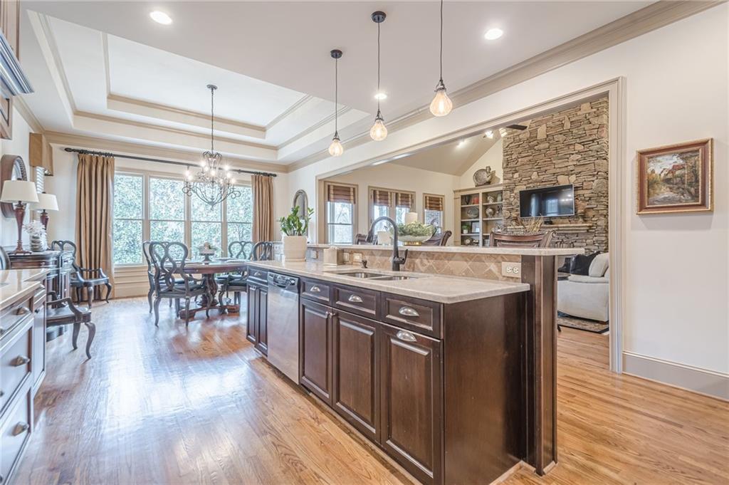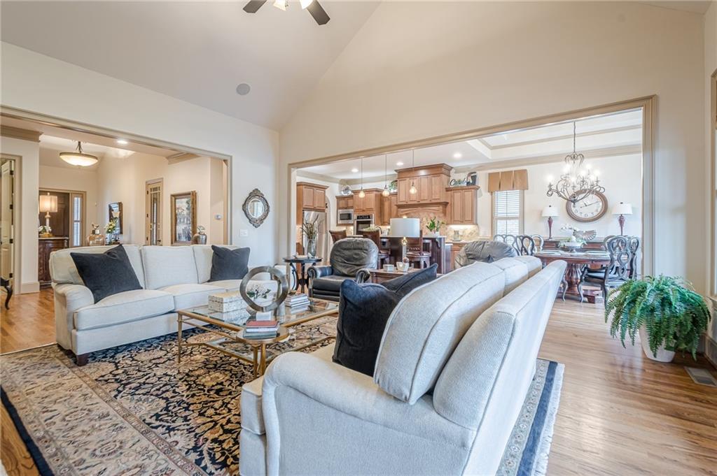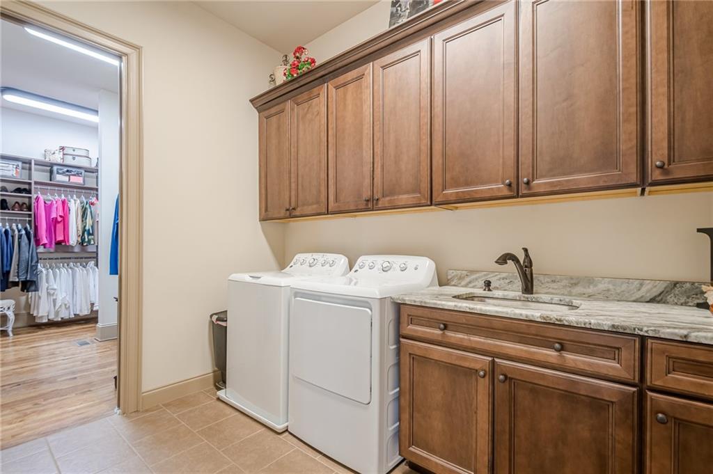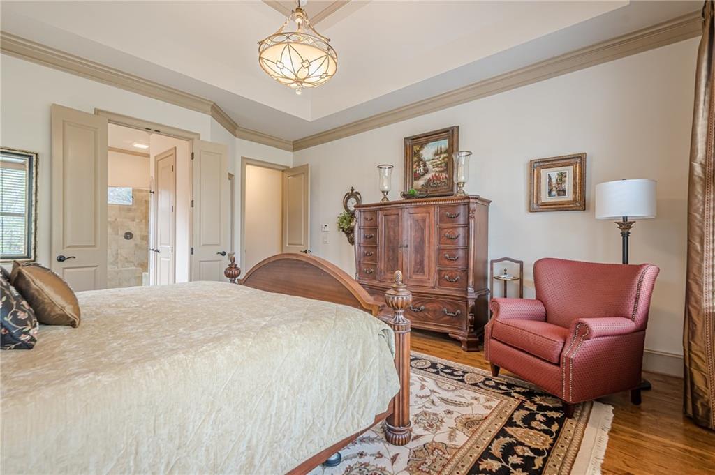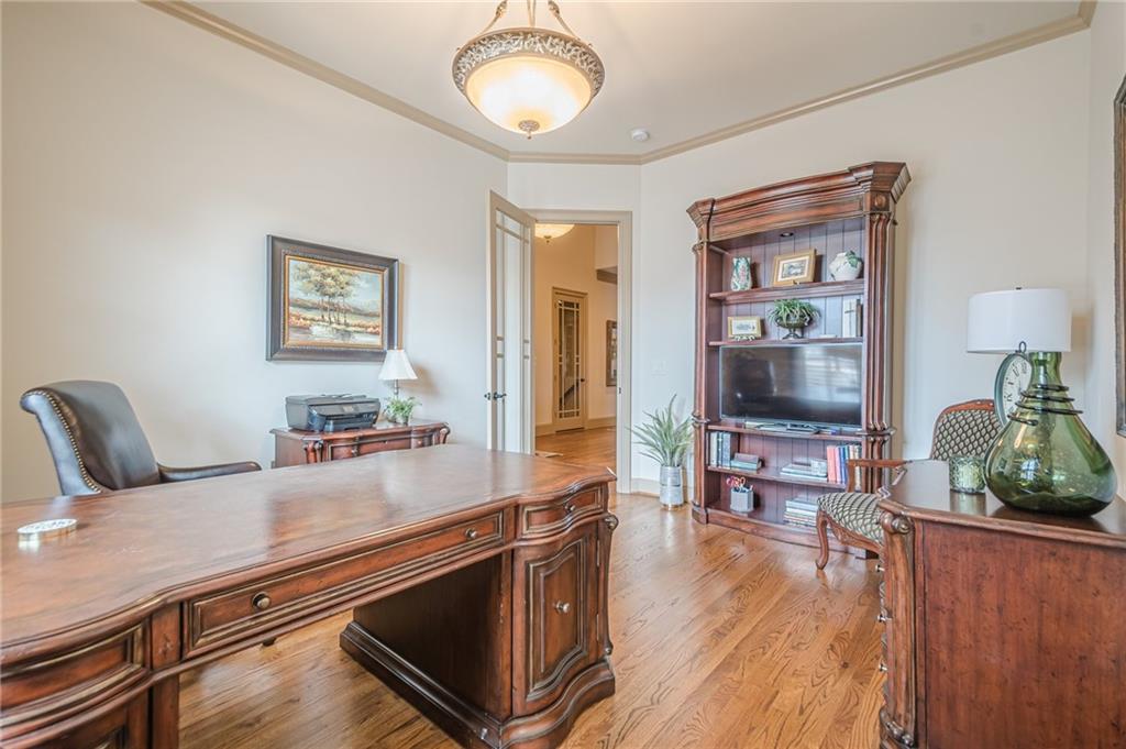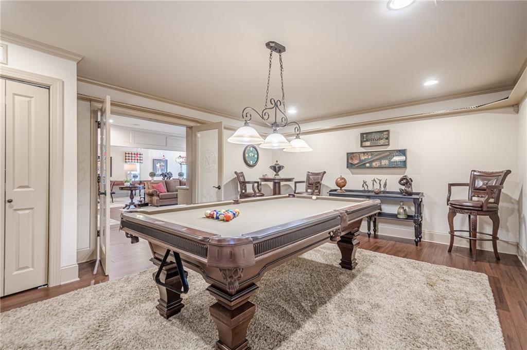 Located in a gated community, this stunning four-sided brick ranch with a fully finished basement is a rare find. Thoughtfully designed with high-end finishes and a functional floor plan, the home features vaulted ceilings, custom plantation shutters, and elegant crown molding throughout. The great room’s floor-to-ceiling stacked stone fireplace is flanked by custom-built bookcases, while French doors open to a screened porch with Trex flooring and built-in speakers—perfect for relaxing or entertaining. The kitchen is a showstopper, featuring quartzite countertops, custom cabinetry, and a layout that beautifully blends form and function. The spacious laundry room offers built-in cabinetry, a sink, and a direct connection to the primary suite for added convenience. The fully finished terrace level is a true extension of the home’s luxury, offering high-end finishes throughout. A stunning mahogany bar, gas fireplace, and French doors opening to a covered brick-floor patio set the stage for unforgettable gatherings. The dedicated billiards room, media area, and oversized bedroom provide both flexibility and comfort, whether hosting a crowd or enjoying a quiet evening in. Outside, the expansive brick and stone patio is surrounded by lush landscaping and wooded privacy, with stone pathways that add charm and character to the peaceful retreat. This home is situated in Parkside at the Polo Fields, an exclusive gated section within the Polo Fields community. Just steps away, the Polo Golf and Country Club offers access to premier amenities including golf, tennis, swimming, and dining. A perfect blend of elegance, comfort, and character—this home offers an exceptional lifestyle in one of the area's most sought-after neighborhoods. See the features list in the documents for even more details about the upgrades to this exceptional property.