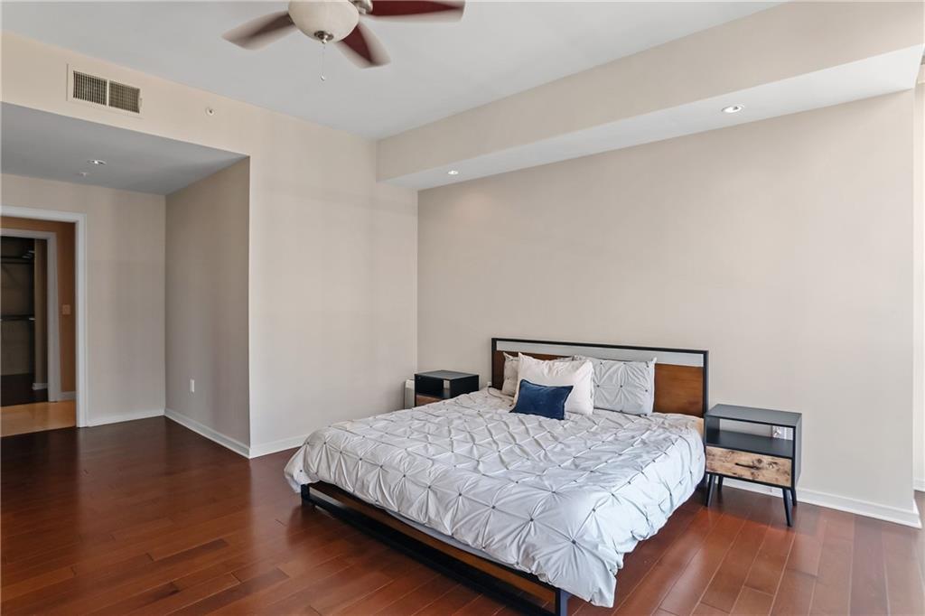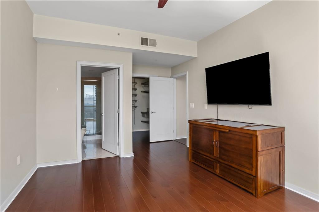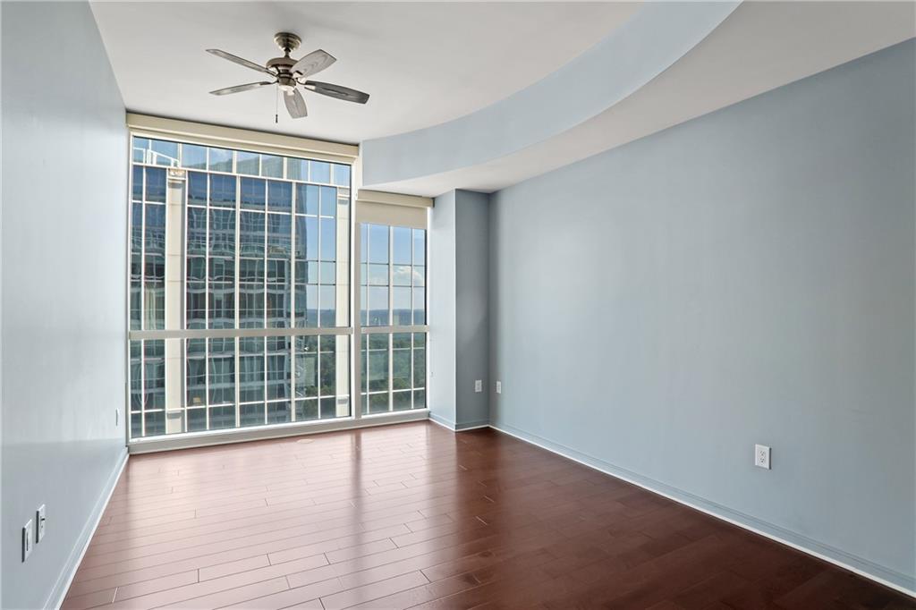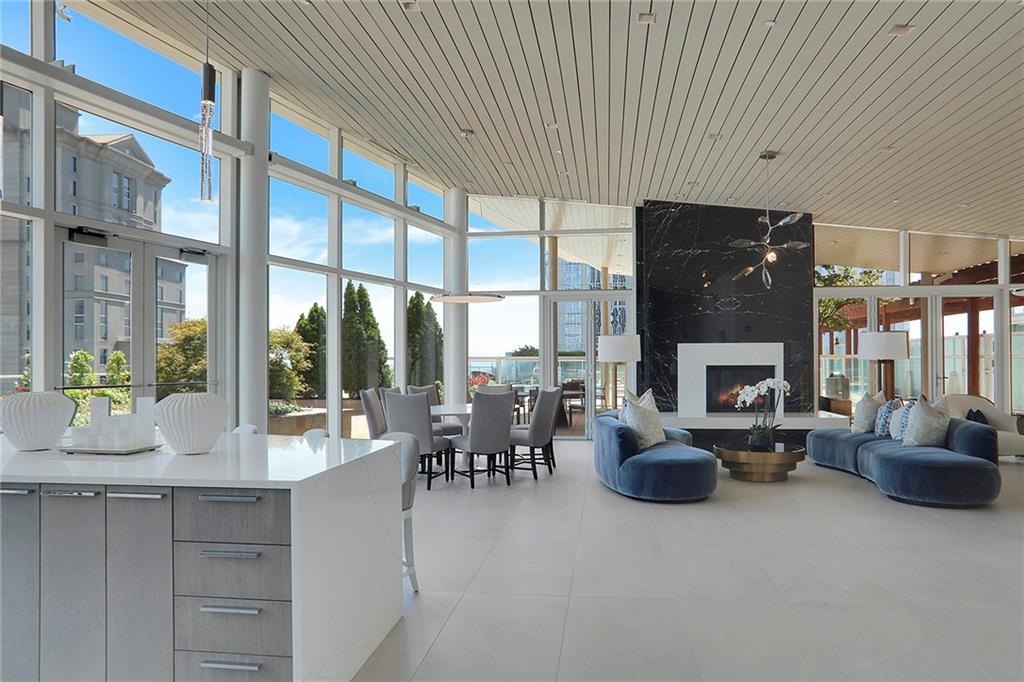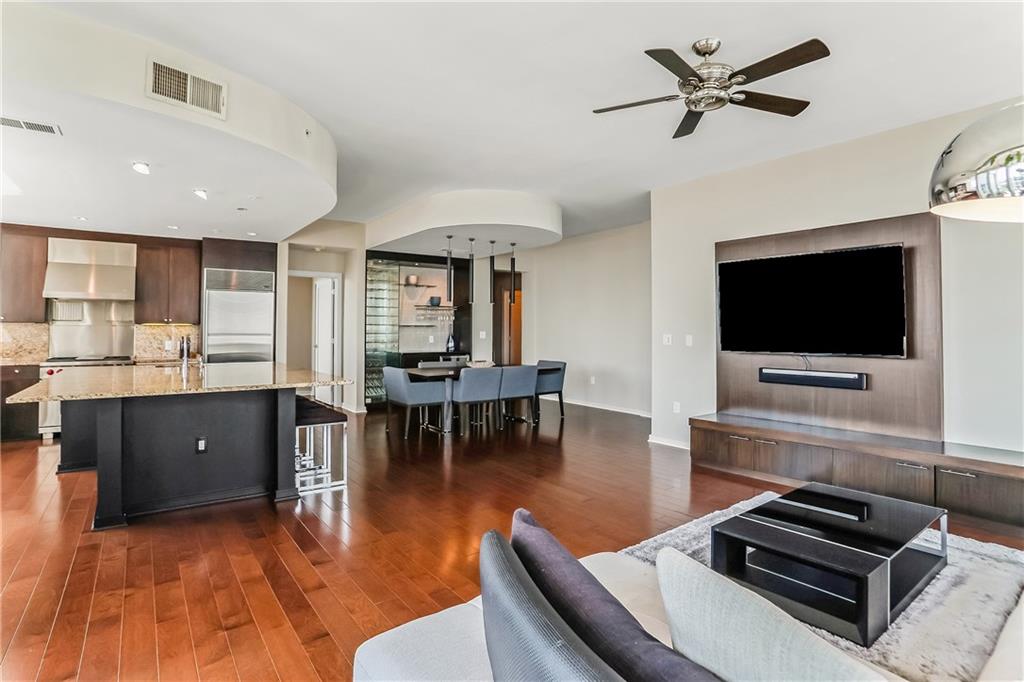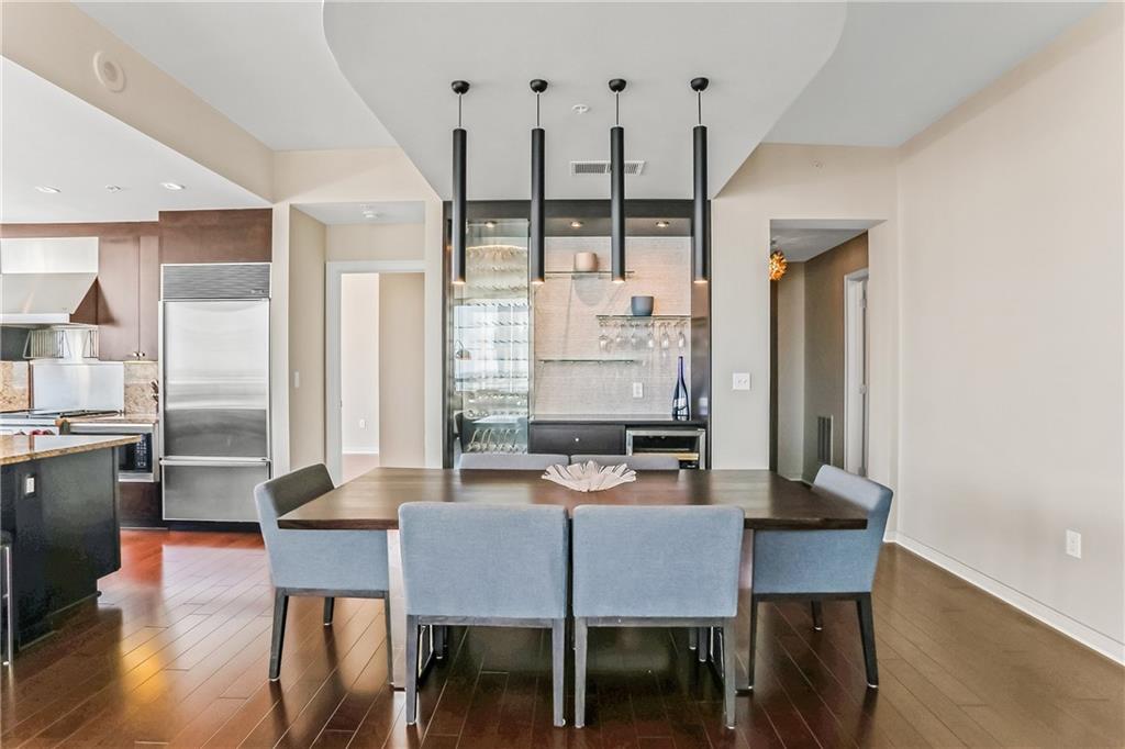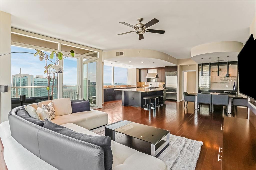 Perched high above Buckhead with sweeping views stretching to Stone Mountain, this rare 3-bedroom, 3-bathroom corner residence with stunning views is one of only three with this coveted floor plan in the Terminus building — and is rarely available! Light pours in through floor-to-ceiling windows that wrap around the main living space as well as the chef’s kitchen. Enjoy an oversized island with seating, granite countertops, a Wolf gas range, a Sub-Zero refrigerator, and a Bosch dishwasher. The kitchen flows seamlessly into the dining area, where a custom glass-front bar with a wine storage tower and a beverage fridge anchors the space, perfect for entertaining. The hardwood floors continue from the kitchen and dining area into the living room, which features a custom-built entertainment wall and access to the private balcony overlooking the Buckhead skyline, treetops and sprawling view. The primary suite is a true retreat with expansive views from floor-to-ceiling windows, custom built-ins, motorized shades and a large walk-in closet with abundant storage and customization options. The en suite spa-inspired bathroom features a dual vanity, a built-in separate vanity with storage, a water closet and a European-style wet room with a large shower and a bathtub behind a seamless glass wall. Two additional bedrooms with walk-in closets provide flexibility for guests or a home office — one with an en suite bathroom, the other with a full hall bathroom. A spacious laundry room adds convenience and additional storage space. Terminus impresses with resort-style amenities including 24-hour concierge, valet, pool, fitness center, guest suites, pet walk, and more — all in the heart of Buckhead, just moments from fine dining, luxury retail, and MARTA.