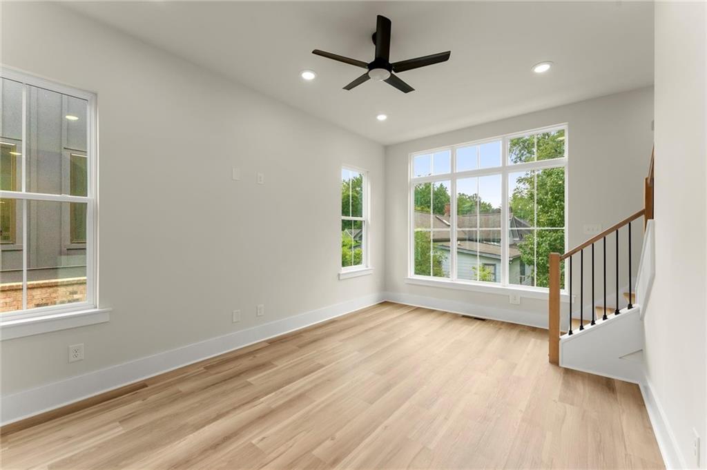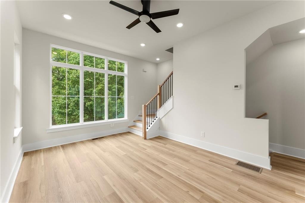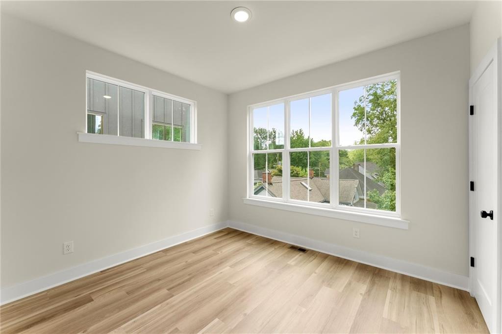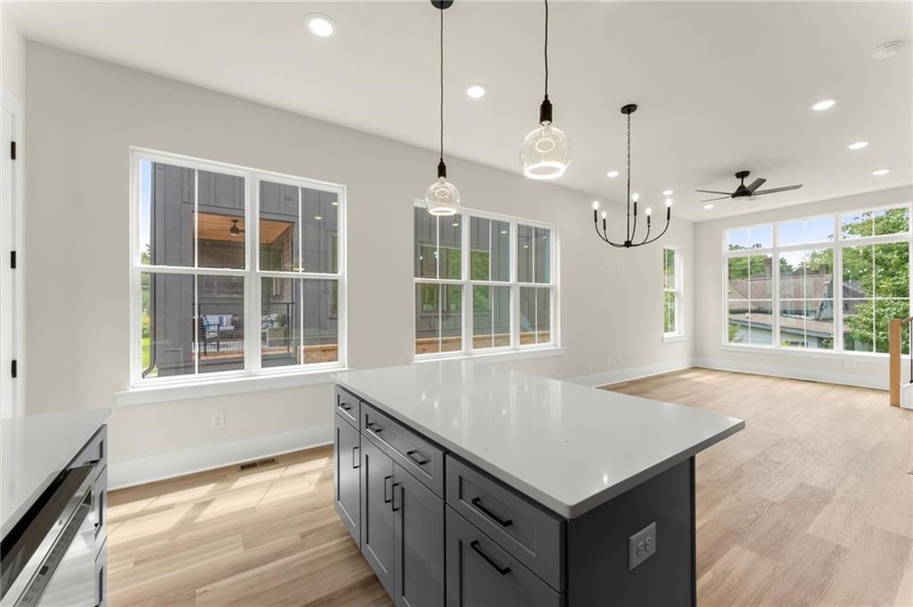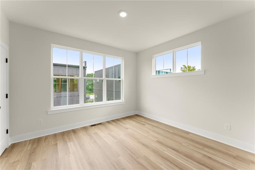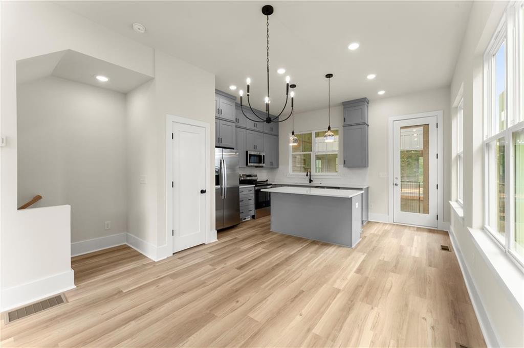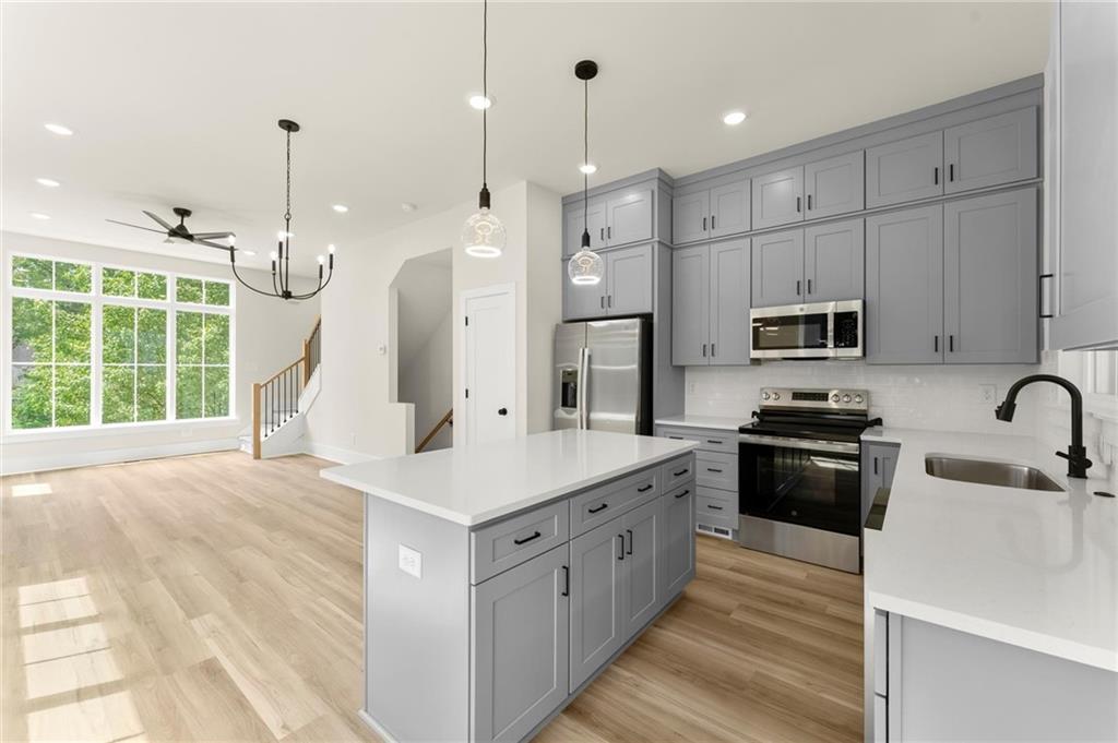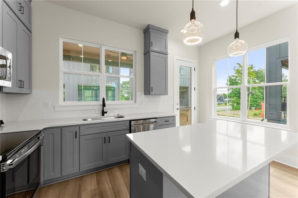 Knights Walk at Howell Station, where every unit is an end unit. These brick and batten board-clad, fee-simple CityHomes are the latest offering from Middle Housing Company. Abundant natural light is provided by windows on three sides of every unit. Real usable outdoor space is found on the large, covered deck adjacent to the kitchen with a large island and floor to floor-to-ceiling cabinets and a pantry. The lower level includes a half bath and a single-car garage with extra storage. The main level includes a great room with living and dining areas, a well-appointed kitchen, and a covered rear deck. The light-filled upper level has a primary suite with an ensuite bathroom with double vanity, large floor-to-ceiling tile shower, and a separate water closet. The secondary bedroom, bathroom, and laundry closet complete the upper level. Floors are durable luxury vinyl throughout the unit, and all countertops are quartz. Two different kitchen layouts are available. Knight Walk at Howell Station includes a dog walk and a community common area. This walkable location is only blocks away from Knight Park, the Beltline entrance adjacent to Westside Paper, and King Plow. Grant funding is also available up to $10K subject to purchaser qualifications.