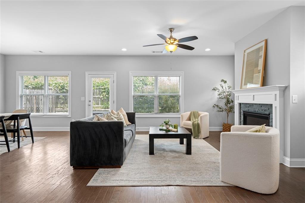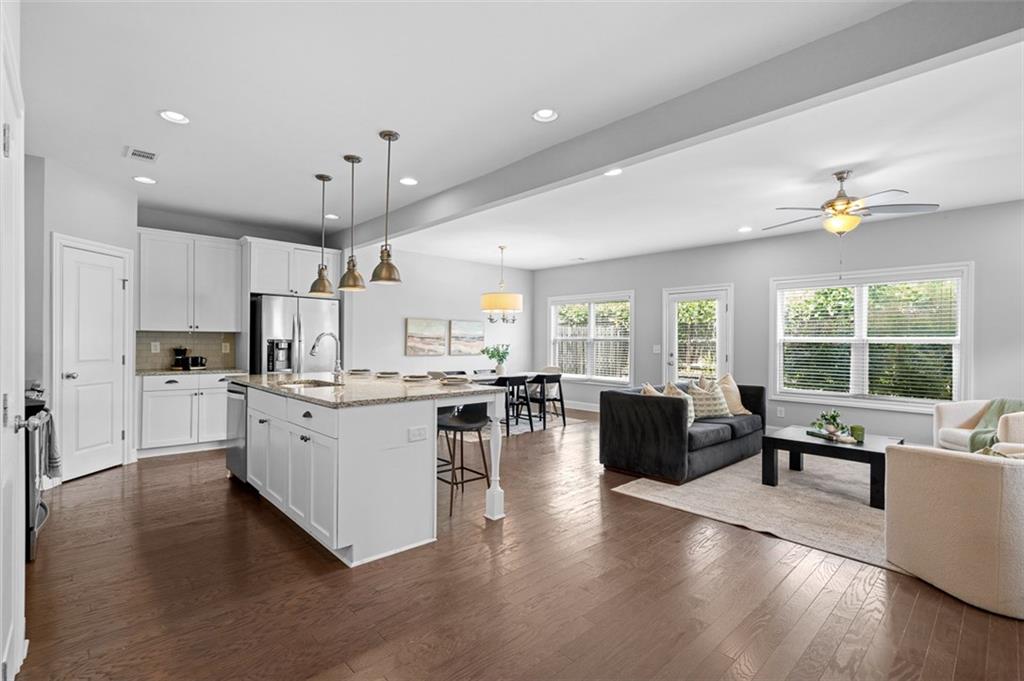 Modern Comfort Meets Westside Charm at 1055 Johnson Grove Discover a refreshed Craftsman-style home nestled in the vibrant West Highlands community—offering a rare combination of quiet, tree-lined streets and easy access to Atlanta’s thriving Westside. Inside, you’ll find a bright, open layout designed for how you live today. The main level features hardwood floors throughout and a spacious living area anchored by a cozy fireplace. The kitchen is both functional and inviting, complete with granite countertops, stainless steel appliances, a center island with seating, and plenty of cabinet space. The layout flows naturally into a dining area and out to the private, fenced backyard—ideal for everything from casual cookouts to evening wind-downs. A versatile front room on the main level offers flexibility for your lifestyle—whether you need a home office, creative space, or formal dining. Upstairs, the primary suite is a true retreat with tray ceilings, a generous walk-in closet, and a stylish en-suite bath featuring double vanities and a tiled shower. Two additional bedrooms and a full bath provide room for guests, family, or a second workspace. A separate laundry room upstairs makes everyday routines a breeze. Neighborhood Perks Living in West Highlands means enjoying a close-knit, amenity-rich community—resort-style pool, playgrounds, trails, green spaces, and direct access to Westside Park. The BeltLine, Westside Provisions, and Midtown are just minutes away. Why You’ll Love It Turnkey and low maintenance, this home offers modern finishes in a rapidly appreciating area—perfect for buyers looking to enjoy city living with a neighborhood feel. Schedule your showing and see what makes 1055 Johnson Grove a standout on the Westside.