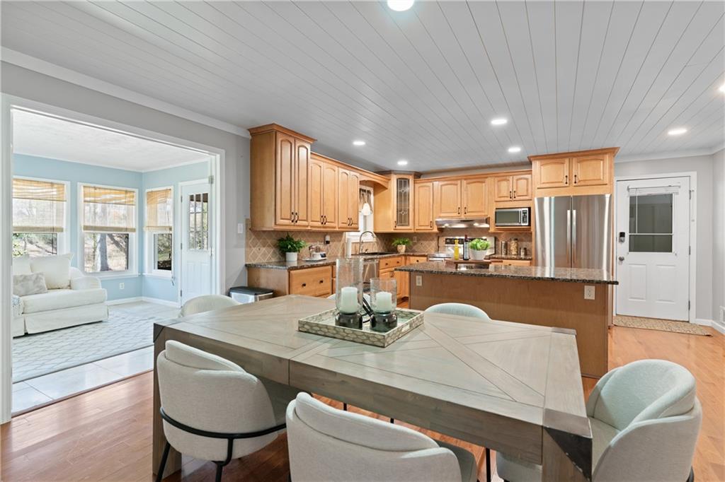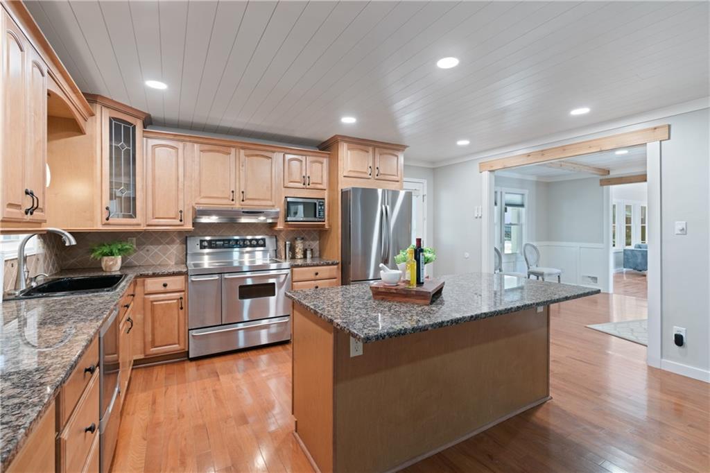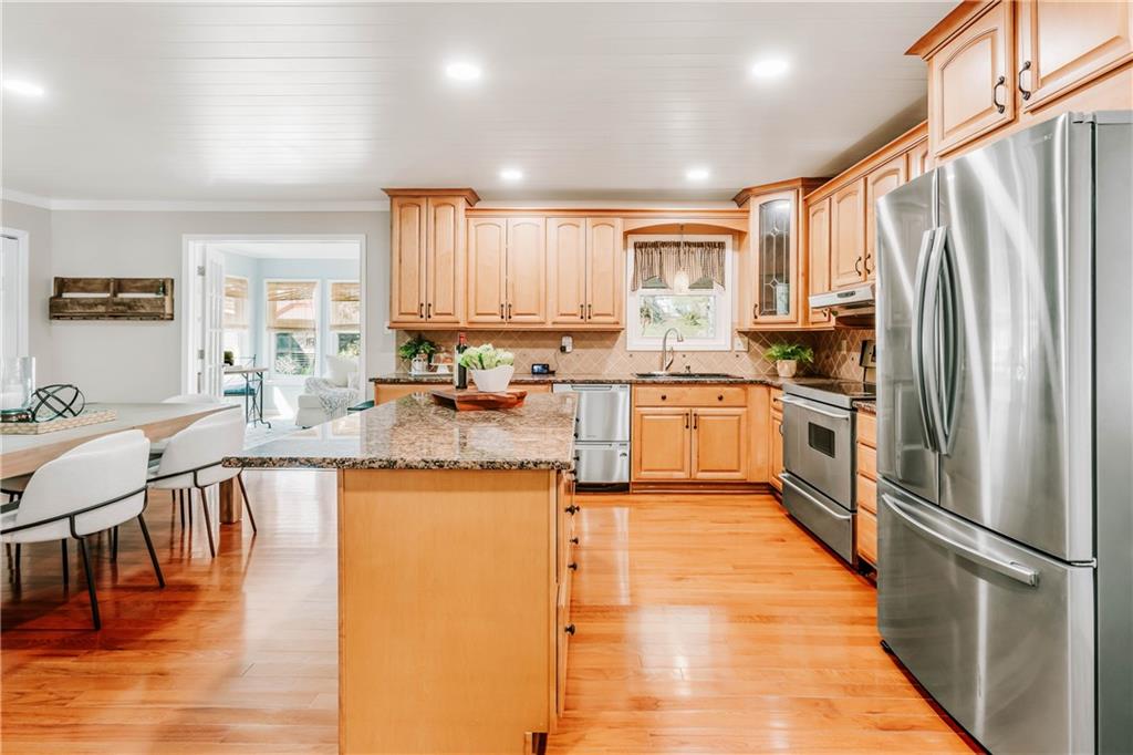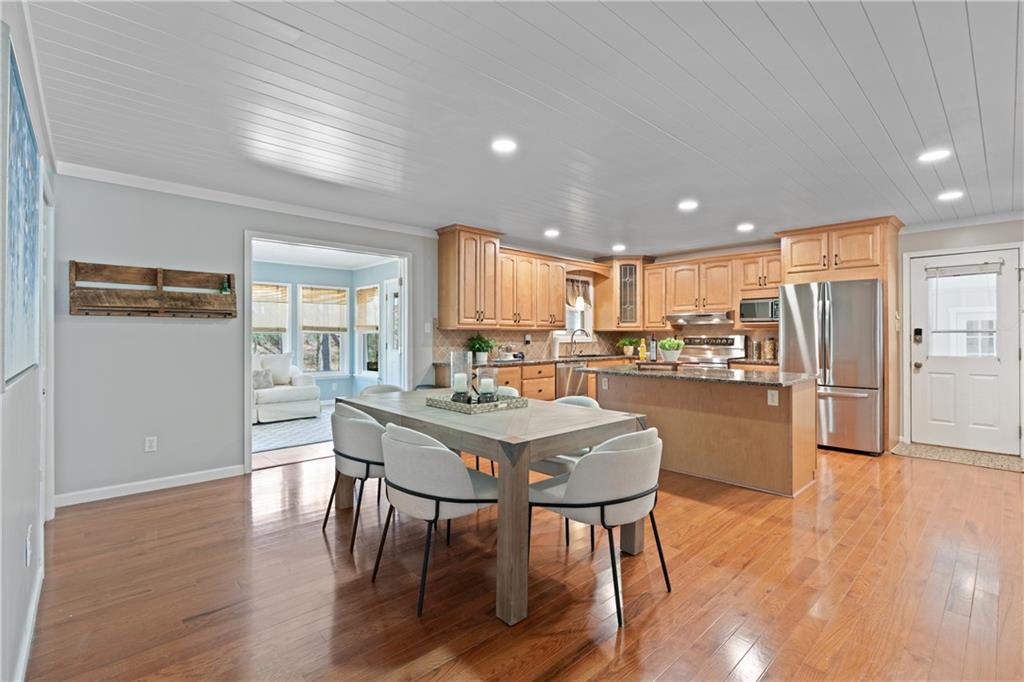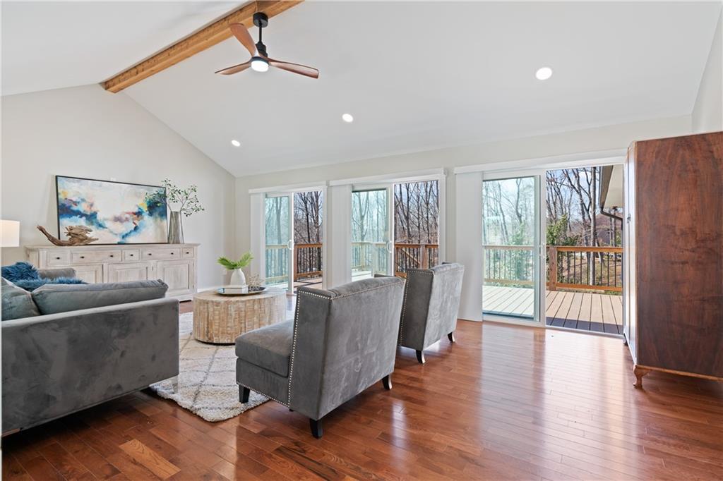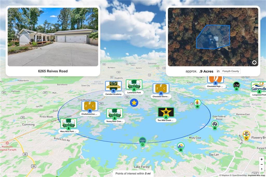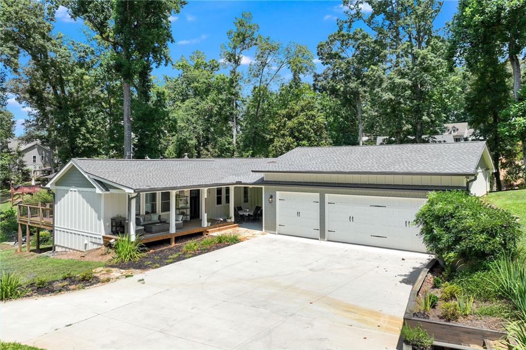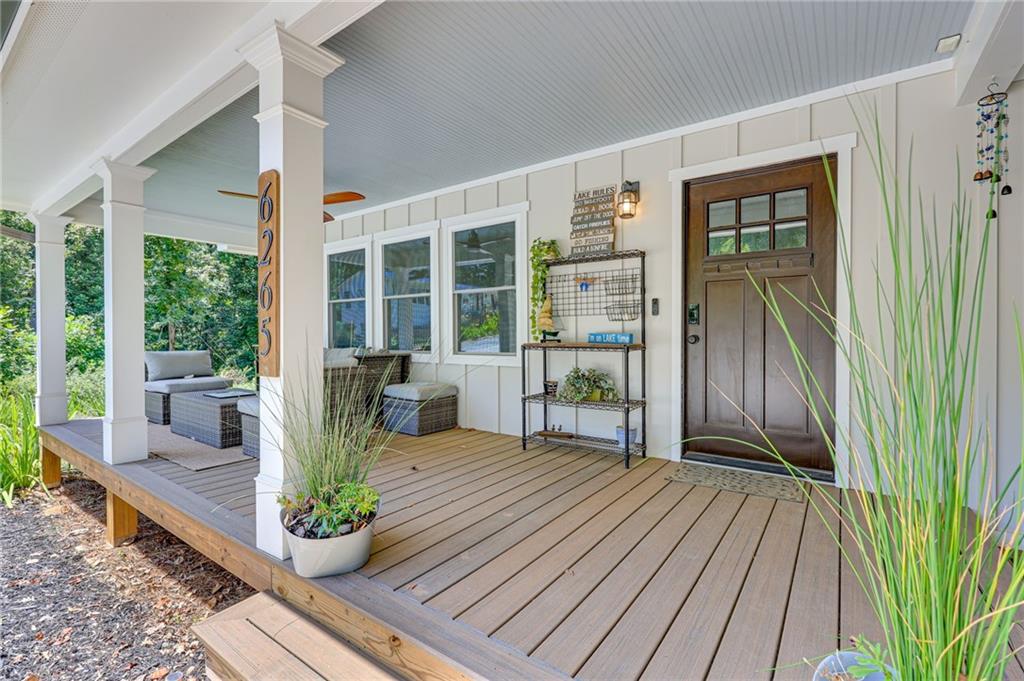 A 2-1 Rate Buydown is available with an acceptable offer through Prosperity Mortgage or directly from the seller. Additionally, the seller will consider providing a cart for convenient access to the dock. Whether you’re searching for a weekend retreat, second home, or full-time lake life, this property blends loads of living space with quaint charm, comfort and low-maintenance living so you can spend more time enjoying the water and your people. 6265 Reives is one of the largest lake homes currently on the market under $1 million What started as a cozy cottage has been thoughtfully updated into a craftsman-style retreat with just the right mix of character and function. Every improvement was made with a low-maintenance lifestyle in mind, including the most recent full exterior renovation (2022) featuring Trex decking, cement siding and soffits, upgraded gutters and a 25-year roof. Step into a no-carpet home with expansive hardwood floors, shiplap and beamed ceilings, and two light-filled family rooms, one large, one quaint. The custom Kraftmaid maple eat-in kitchen is inviting and practical, centered around a large island that’s perfect for meal prep and conversation. The primary suite offers a spacious, peaceful retreat, complete with a modern fireplace/entertainment center and a spa-style ensuite. The secondary bedrooms are ample for twin or full beds, offices or craft areas. The terrace level was designed for fun movie nights in the theater area with raised floor, game days in the rec space, and gatherings around the kitchenette. Plus there are several other flex spaces for bunks, a bedroom, office or hobby areas. Plus a storage area with a utility sink. The stained and scored concrete floors look like tile and add to the easy-care appeal. More than 1,500 sq. ft. of outdoor living awaits across multiple spaces: a Trex back deck, rocking chair front porch, screened porch, oversized breezeway, fire pit, and a dedicated grilling patio. A drivable, gently sloped path makes it easy to take your golf cart down to the water, where a deep-water single-slip dock with party deck sits tucked into a private cove. While the cove may see activity, your property itself offers a quiet, secluded feel. From the dock you’ll enjoy good water depth and easy access for swimming, kayaking, or boating. Seasonal (winter) views of the lake from the home remind you just how close you are to the water year-round. The .75 acre lot provides ample space lawn games and/or RV parking and only takes about 35 min to cut on your riding lawnmower. Hobbyists will love the extras , a greenhouse for gardeners, a 250 sq ft heated accessory structure with a utility sink and quarter bath that could be the perfect workshop or she-shed, and a 950 sq ft oversized three-car garage tall enough for a lift. With plenty of level yard space, you even have room to add a pool near the workshop, which could double as a cabana. Located in Forsyth County, you’re close to GA-400, Cumming City Center, shopping, dining, and Six Mile Creek Park, and just a short boat ride to Port Royale and Pelican Pete’s. If you’ve been looking for a lake home that feels personal and thoughtfully cared for, not just another lake house, and all under $1 million, this one deserves a private tour. It may be the perfect fit for your next chapter on the lake.