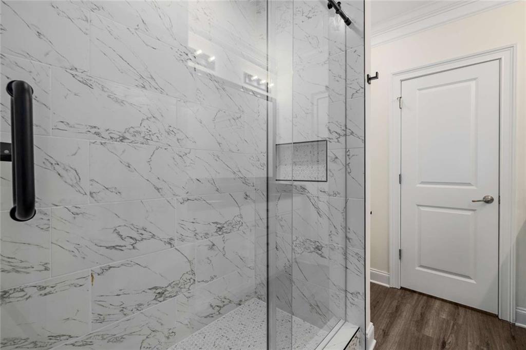 Beautiful end unit luxury brick townhome in quiet gated Lavista Walk community near Emory and Buckhead/Lenox Road corridor. Talk about location, location! Rarely does a two-bedroom unit from this community hit the market and this one has been almost 100% freshly remodeled. New everything including kitchen, bathrooms, paint, molding, LVP flooring and carpet and more. This townhouse is practically brand new! This two-bedroom, two bathroom Intown property offers a perfect blend of style, comfort, and convenience. The main level features abundant natural light, wood laminate floors, and open floor plan that seamlessly connects the kitchen, dining area, and spacious living room. The kitchen boast new countertops, ample cabinet space, separate pantry, stainless steel appliances (gas cooking), breakfast bar, and an oversized island that is perfect for entertaining and casual dining. The dining area, also ideal for small gatherings, is flanked by a spacious living room that is outfitted with a cozy fireplace and built-in bookshelves. The large primary suite offers large windows, spacious walk-in closet, and well-appointed bathroom with double vanity and brand new tile shower with pebble mosaic shower floor. A relaxing deck rounds out the main level. As you venture to the lower level you'll discover a spacious second bedroom with en-suite bathroom, storage closets, full-size laundry closet (with a laundry chute from main level) and access to your one-car garage that offers additional storage area. Unbeatable location perfectly situated in highly sought-after Lavista Park within walking distance to Publix, the iconic Tara Movie Theatre and easy access to 75/85/400, Midtown, Buckhead, CDC and Emory. Strong HOA w reasonable HOA Dues. Owner Occupants only (there is currently a waitlist for rental permits).