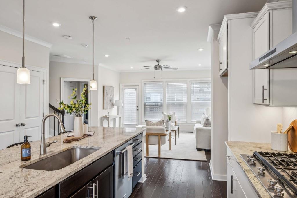 Introducing 2028 Holtz Lane, a move-in-ready, end-unit townhome situated on the edge of West Midtown and Buckhead. Don't miss this amazing opportunity to get an incredible value and get into this neighborhood at an unbeatable price- this is the best price in the neighborhood in over a year! Located in the sought-after Altus at The Quarter community, this three bedroom, three and a half bath home offers the perfect blend of modern living, walkable convenience, and community amenities. It's newer construction with three-levels and features an open-concept main floor with soaring ceilings, a thoughtfully upgraded kitchen complete with a large center island, stone countertops, stainless steel KitchenAid appliances, gas cooktop, subway tile backsplash, and pantry. The kitchen flows seamlessly into the spacious dining and living areas, and extends to a private deck, ideal for entertaining or relaxing outdoors. Upstairs, the oversized primary suite includes two walk-in closets, a custom accent wall, and a beautifully appointed bathroom with his and hers vanities, private water closet and walk-in shower. A secondary upstairs bedroom also includes its own ensuite bath. The terrace-level is perfect for guests, a home office, or flex space, with its own private bath and abundant natural light. All bedrooms have their own private en-suite bathrooms. Additional highlights include a 2-car garage with rear entry, recessed lighting, tray ceilings, a laundry room, and tons of storage throughout. As part of a vibrant neighborhood community, enjoy access to a swimming pool, dog park, green courtyards, and sidewalks throughout, all just steps from the city's best dining, breweries, shops, and Westside trails. This location has easy access to Midtown, Buckhead, and major interstates. This is intown living at its finest.