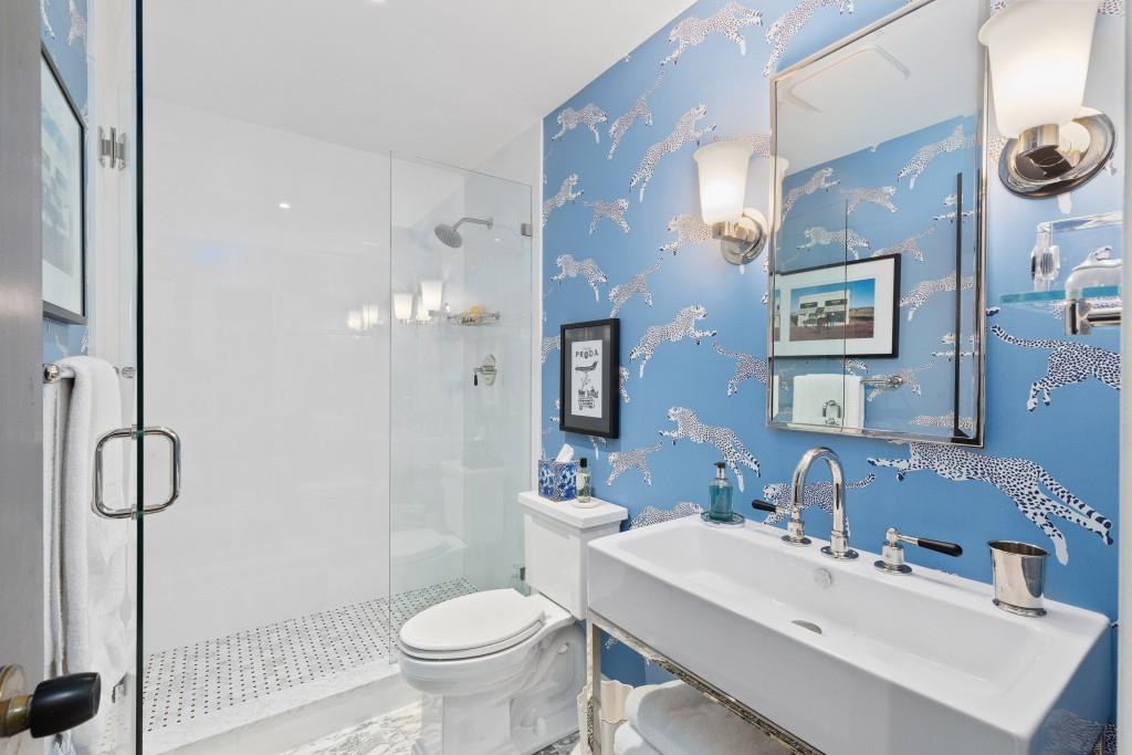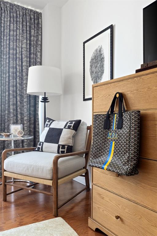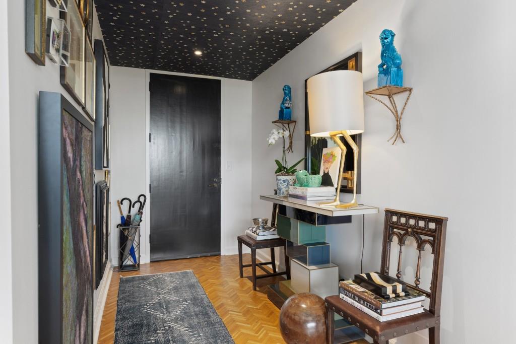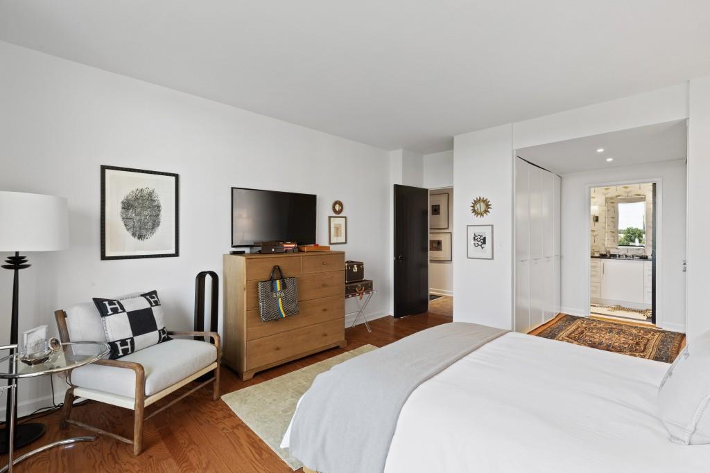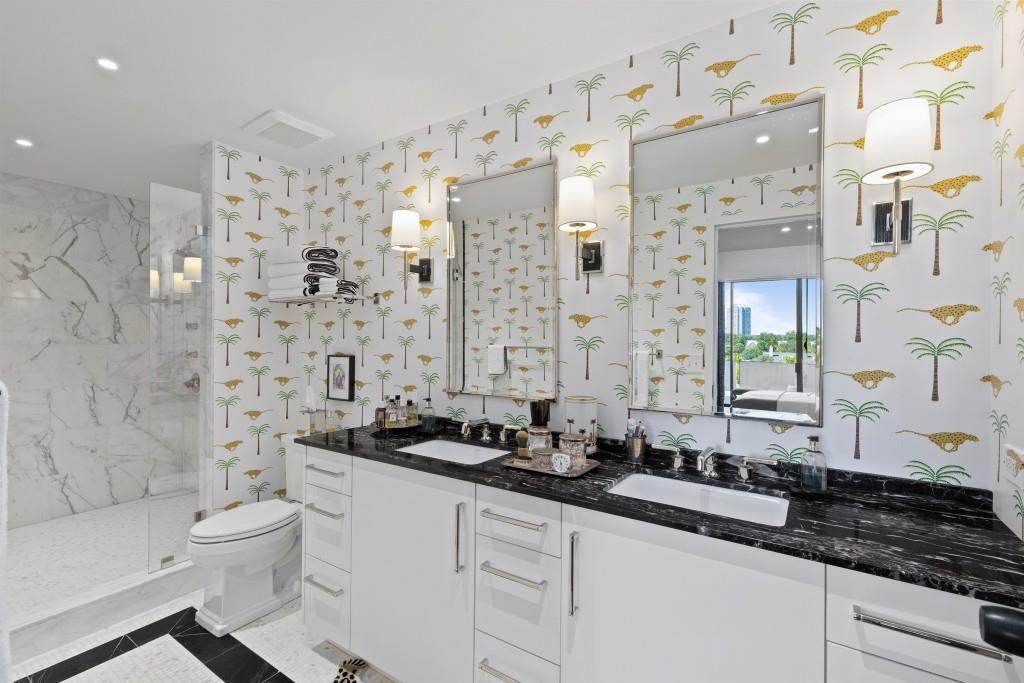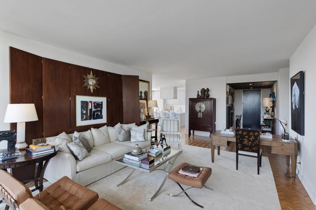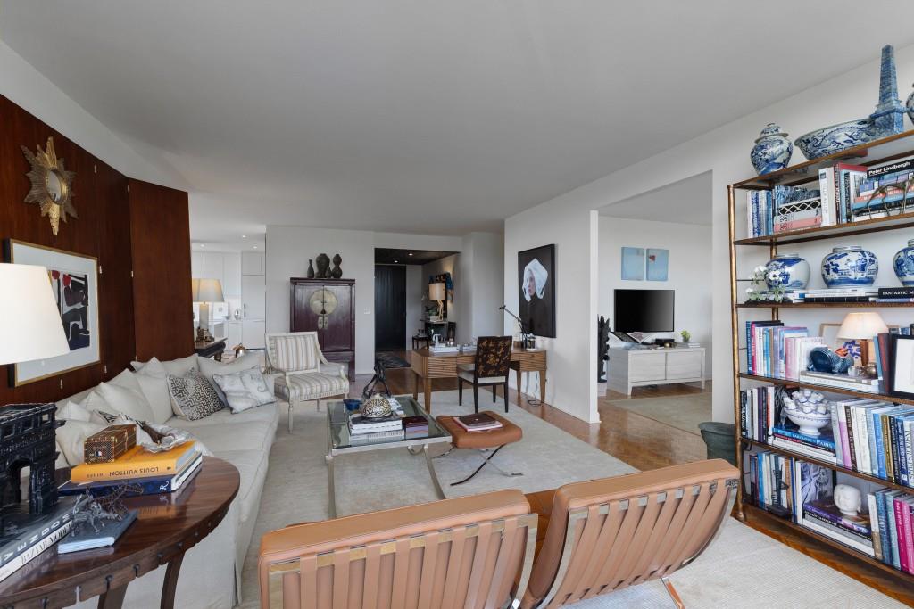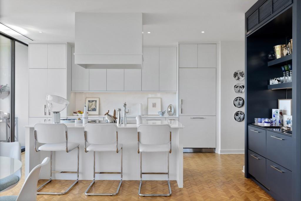 Welcome to Residence 14A at Plaza Towers, one of Atlanta's most iconic mid-century buildings designed by noted architect Ted Levy. This immaculate home has been fully renovated top to bottom, transforming a rare and expansive three-bedroom floor plan into a luxurious two-bedroom, two-and-a-half-bath residence with grand proportions, two distinct living areas, and a seamless open-concept kitchen and dining space that works beautifully for both entertaining and everyday living. Light pours in through floor-to-ceiling windows and brand-new glass doors that open onto two private balconies running the full length of each side of the home. Every inch of the residence reflects refined sophistication, from the refurbished original Hungarian point hardwood floors to the carefully curated designer lighting. The clean architectural lines and thoughtful layout offer gallery-style moments for art, books, and collections while maintaining an inviting sense of comfort. The crisp white kitchen is sleek and functional with integrated appliances, custom cabinetry, and a large island with bar seating. Both bedrooms are generously sized and well positioned for privacy, including a serene primary suite with sweeping skyline views, a walk-in closet, and a bold, impeccably designed en suite bath. Plaza Towers is a boutique community known for its timeless architecture, discretion, and exceptional service. Amenities include 24-hour concierge, a private gym, dog park, the Plaza Room for entertaining, a conference room, and gated garage parking. Located in the heart of Buckhead, this is sophisticated city living at its finest.