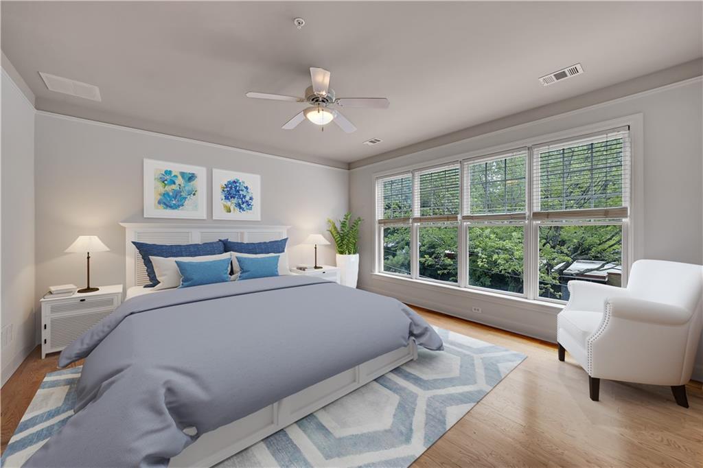 This stunning end-unit brick townhome offers the perfect blend of luxury, space, and unbeatable location nestled quietly on Piedmont Park with direct access to park trails a half block away. Just outside your front door, you can also enjoy easy access to the BeltLine and all the best dining, shopping, and entertainment Atlanta has to offer. Inside, you’ll find a sprawling open-concept floor plan with soaring ceilings and pristine hardwood floors throughout. The bright, airy kitchen features stone countertops, stainless steel appliances, a breakfast bar, and a large eat-in area, ideal for everyday living or entertaining guests. A convenient half bath is also located on the main level. Upstairs, enjoy two oversized primary suites, each with its own spa-inspired bath featuring dual vanities, walk-in closets, and either a soaking tub with separate shower or an expansive glass-enclosed shower. The crown jewel of this home is the incredible rooftop deck with panoramic Midtown skyline views. Perfect for entertaining or relaxing in privacy, the deck includes a wet bar and generous space for outdoor living. Additional highlights include an elegant custom fireplace, a private two-car garage with direct access, and abundant storage throughout. Nestled in a quiet, end-unit location, this home offers a peaceful retreat in one of Midtown’s most sought-after communities. Don’t miss this exceptional opportunity to own a beautifully designed, move-in-ready home with luxurious finishes, modern comfort, and unbeatable access to Atlanta’s most vibrant neighborhoods.