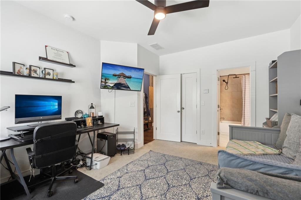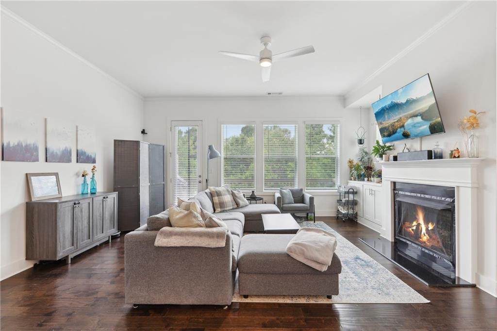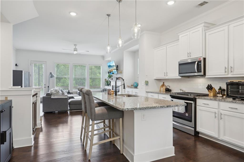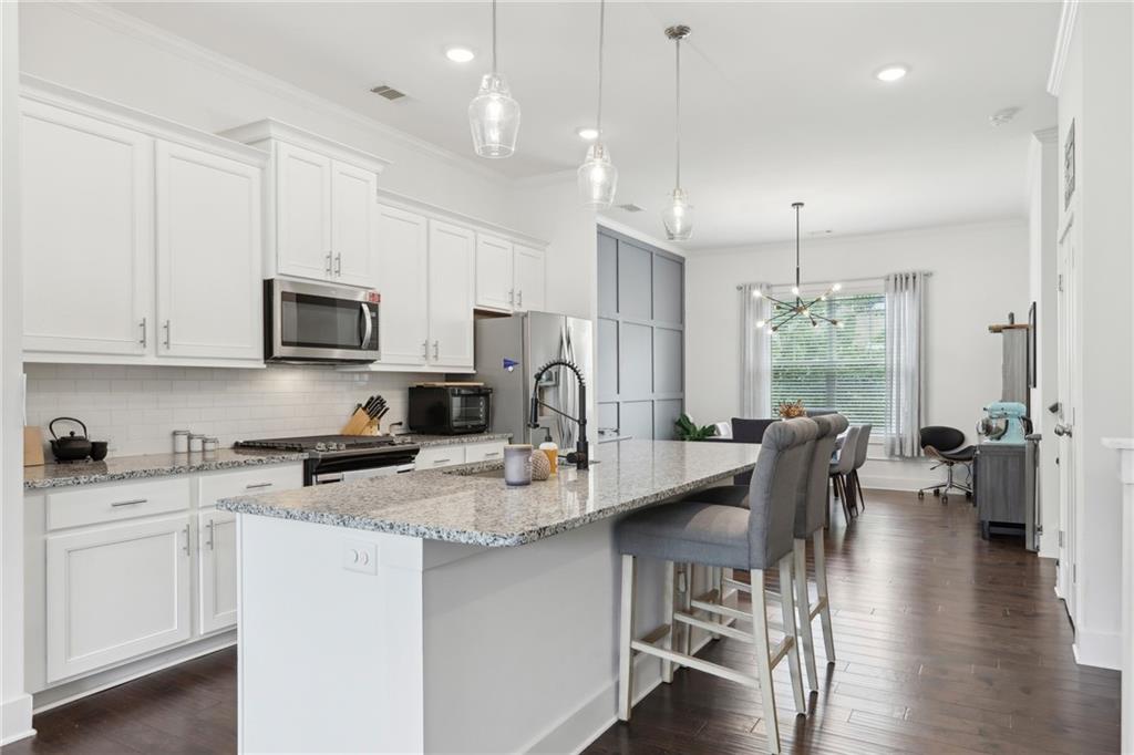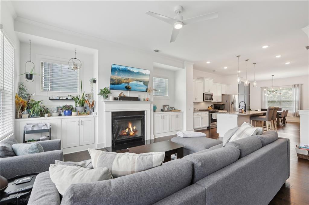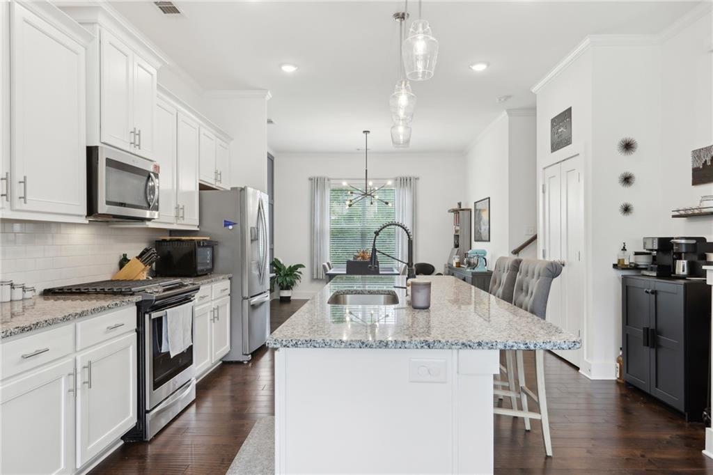 Immaculate end-unit townhome offering the perfect blend of style, space, and location, just minutes from Downtown Atlanta, Smyrna, and the Cobb Galleria. Designed for modern living, the bright open floor plan is filled with natural light and enhanced by hardwood floors throughout and recessed lighting. The spacious family room features a gas fireplace and flows seamlessly into a gourmet kitchen with granite countertops, stainless steel appliances, convection cooking, and a large center island perfect for entertaining. Upstairs, the expansive primary suite offers a generous walk-in closet and a spa-inspired bath with a massive double shower. The laundry is conveniently located on the upper level, close to all bedrooms for easy access. As an end unit, this home provides added privacy along with a private back deck ideal for relaxing or dining outdoors. Enjoy a full suite of community amenities including a pool, tennis courts, clubhouse with gym, playground, and a walking path with direct access to Whittier Mill Park. A rare opportunity to own in one of Atlanta's most connected and sought-after locations.