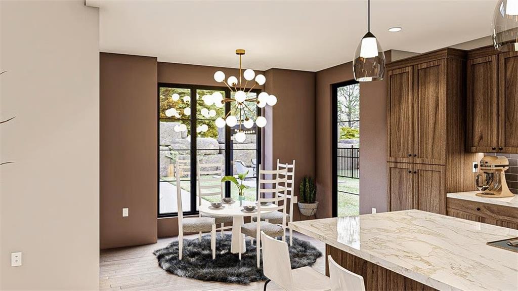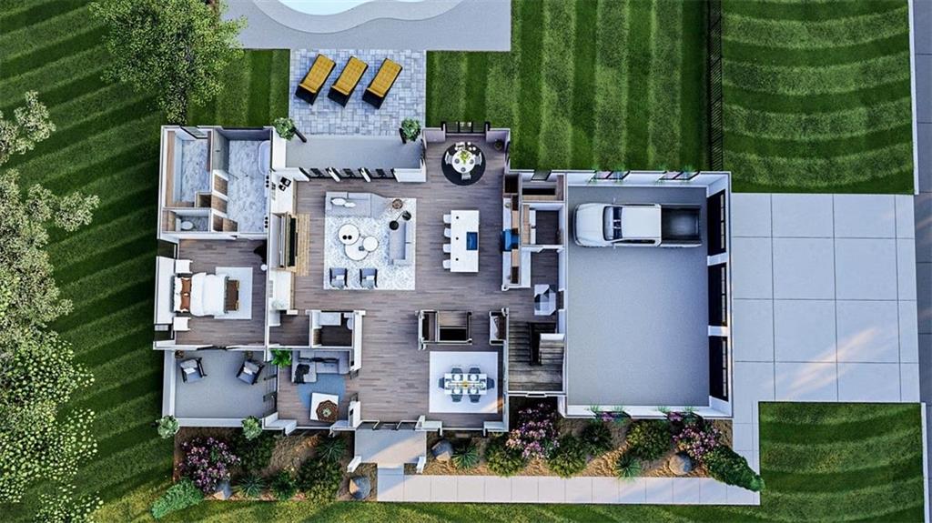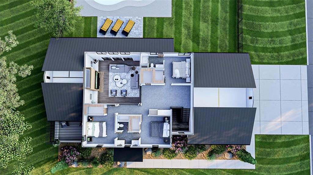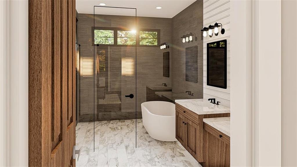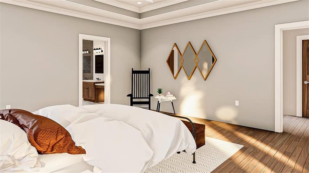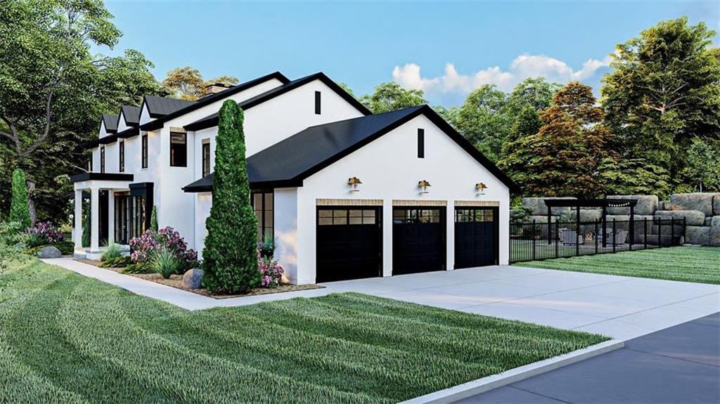 Refined Southern Elegance with Modern Flair! This exquisite 4-bedroom Southern estate blends timeless architectural beauty with modern sophistication. A striking façade showcases triple dormers, refined contrast siding, and a sweeping front porch, setting the tone for the elegance within. Step through a grand entryway into a soaring two-story great room adorned with custom-built-ins, a statement fireplace, and three sets of French doors leading to a covered rear veranda—perfect for seamless indoor-outdoor entertaining. The open-concept chef’s kitchen boasts a substantial island, walk-in pantry, and direct flow into a sunlit breakfast area and a formal dining room, both designed for hosting. The main-level owner’s retreat offers the ultimate sanctuary with a trayed ceiling, private porch access, and a spa-like bath featuring a luxurious wet room, dual vanities, a dedicated makeup counter, and an expansive walk-in closet. A private study with patio access, a mudroom featuring custom-built-ins, and a thoughtfully designed laundry suite elevate everyday living. Upstairs, three spacious bedrooms each offer walk-in closets, including one private ensuite and a Jack-and-Jill layout. A generous loft with a built-in media center provides an elegant lounge or play space. Enhance your living space with the optional finished terrace level—adding 1,312 sq ft of luxury, including a full bar with wine room, expansive family room, entertainment-ready table area, and private guest suite with hidden safe room. **Luxury Highlights:** * 3-car side-entry garage * Covered front & rear porches * Designer kitchen and wetroom suite * Optional terrace level with wine room & safe room * Walk-in closets in all bedrooms * Custom finishes throughout 8 8-month construction time from contract date.