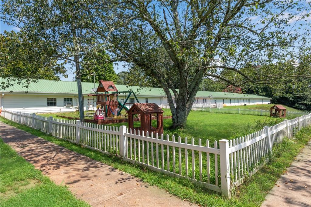 Exceptional opportunity to own 3.5 fully fenced acres in a prime location, currently utilized as a 501(c)(3) nonprofit. This unique property includes multiple buildings and is ideally suited for another nonprofit organization, church camp, or retreat center. Ample parking is located at the front of the property. The well-manicured grounds feature several specialty shops including a boutique (with monitored alarm), children’s shop, and thrift store, along with a large, multi-functional ministry building. The ministry building and retail shops have motion dection lights. Inside the ministry building you'll find individual rooms, communal bathrooms, laundry facilities, a full kitchen, spacious living area, chapel with office, and a designated area with teaching cubicles. A private apartment offers a living space with a bedroom, bathroom, and living area. Additional amenities include multiple food storage rooms, two commercial freezers, and multiple outbuildings including a workshop and greenhouse. A beautiful permanent residence sits at the heart of the property, boasting a wraparound porch, 3 bedrooms, 2 full baths, a large kitchen, and a sunroom with a hot tub. Just behind the home is a large in-ground pool. A well-maintained 3-bedroom, 2-bath mobile home is also located on the property, perfect for staff housing or guest accommodations. The rear acreage offers level green space and a playground, making it ideal for gatherings and recreation, or future expansion. This one-of-a-kind property offers endless potential for those seeking a mission-based or community-oriented setting. Don't wait--come see this beautiful property today!