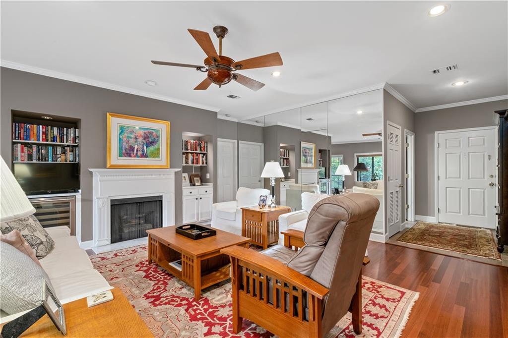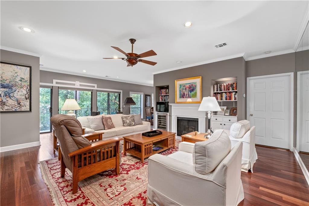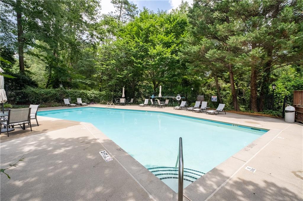 Enjoy a luxury lifestyle in this stunning 2-bedroom, 2.5-bath condominium, located in the highly sought- after gated community of The Vanderbilt. This beautifully designed end unit offers resort-style living with premium amenities, including concierge services, a saltwater pool, a fully equipped fitness center, an elegant clubhouse, and a dedicated dog walk. The bright and open living area with warm hardwood flooring is framed by three sliding glass doors that lead to a private balcony oasis with peaceful natural views. A thoughtfully designed split-bedroom floor plan provides both privacy and function, ideal for modern living. The stylish kitchen features granite countertops and KitchenAid stainless steel appliances with a cozy nook for reading, officing or dining at a bistro table. The main living space has a charming fireplace and custom built-in shelving—complete with a wine cooler—set the stage for both relaxation and entertaining. The grand primary suite offers generous space, two walk-in closets, and a beautifully finished en-suite bath. The secondary bedroom is equally versatile—perfect for guests or a home office—with a built-in Murphy bed, two closets, and a private full bath. Additional highlights include two deeded, covered parking spaces and convenient guest parking located at the front of the community. Ideally situated near I-85, GA-400, and MARTA, this residence offers unmatched access to Lenox Mall, Phipps Plaza, and many of Atlanta’s top dining, shopping, and entertainment destinations. You're also in close proximity to Executive Park, Children’s Healthcare of Atlanta (CHOA), Emory University, and the CDC. Whether you're seeking a quiet sanctuary or a vibrant city lifestyle, this exceptional condominium delivers the perfect combination of luxury, comfort, and convenience.