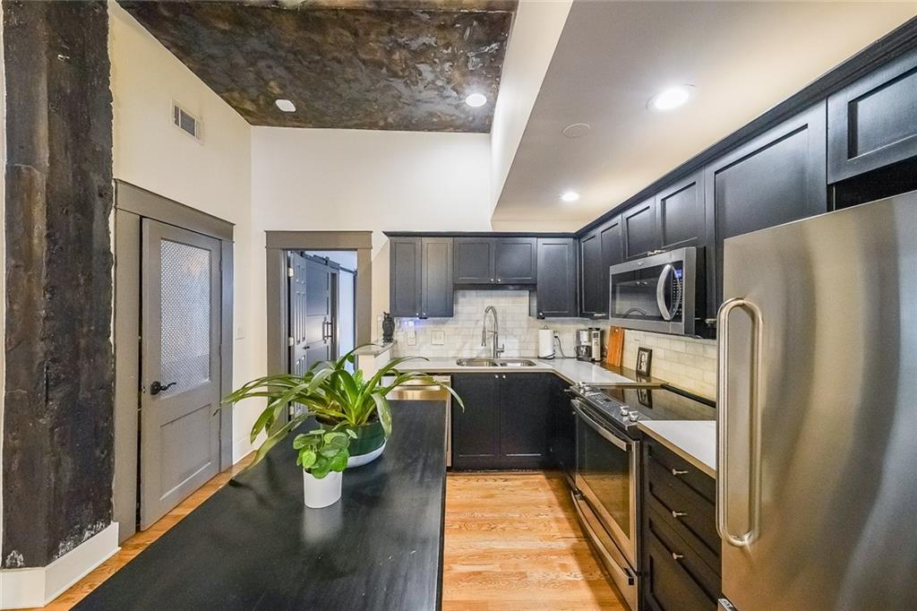 INCREDIBLE PRICE! Experience the perfect blend of industrial vibes, modern comfort, and historic character in the heart of Atlanta's vibrant Virginia-Highland community! This beautifully renovated ground-level Condo offers Soaring Ceilings, Exposed Brick, Beamed Ceilings, and gorgeous hardwood floors, adding warmth and charm throughout. The open floor plan features an enormous living area, perfect for creating multiple atmospheres, a bright dining area overlooking the gorgeous kitchen with Stainless Steel Appliances, Quartz Countertops, Marble Tile Backsplash, an Island, and a walk-in pantry. The generous Owner's Suite offers a large walk-in closet and en-suite bathroom featuring a smart-storage vanity, a soaking Tub/Shower, and a dedicated laundry room. The second spacious bedroom also has a walk-in closet and is next to the renovated hall bathroom. Tucked in the back of a quiet, 22-residence building with gated courtyard access, this unit comes with two assigned parking spaces just outside your door, with no steps or elevators to navigate, and is one of only TWO 2-bedroom, 2-bathroom units in the building. This is your chance to own a piece of history in one of Atlanta's most beloved neighborhoods, and live within walking distance to Virginia-Highland, Ponce City Market, and the BeltLine - and some of the best dining, shopping, and entertainment options the city has to offer!