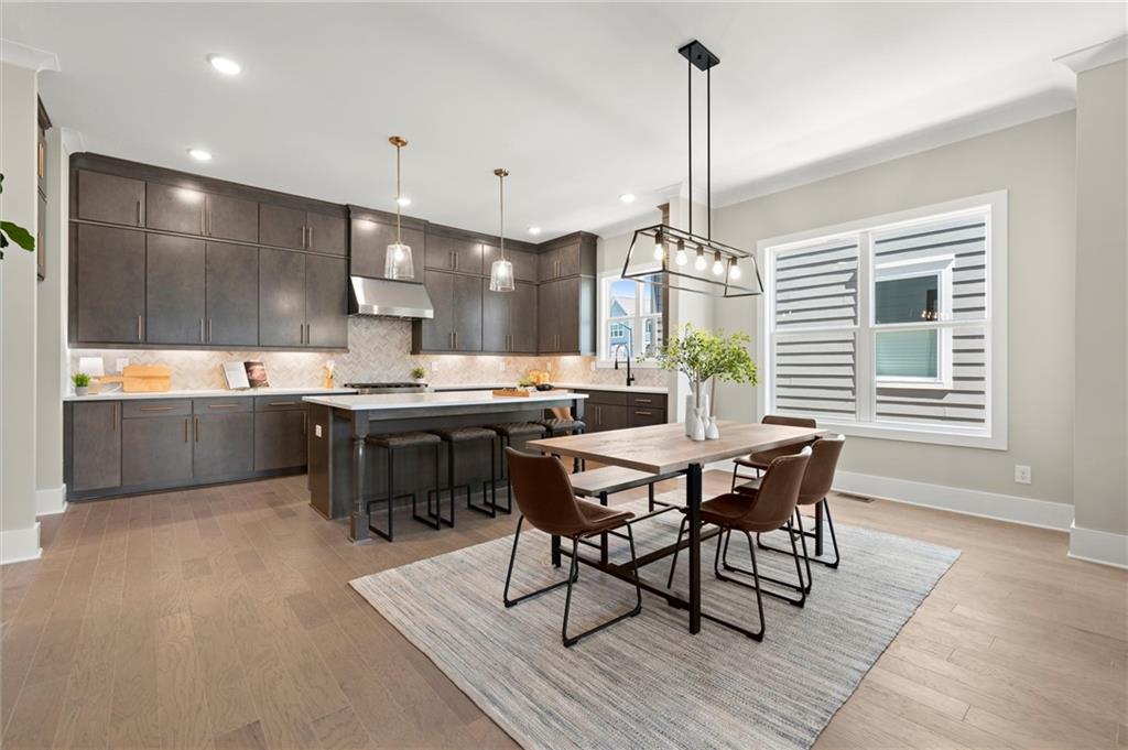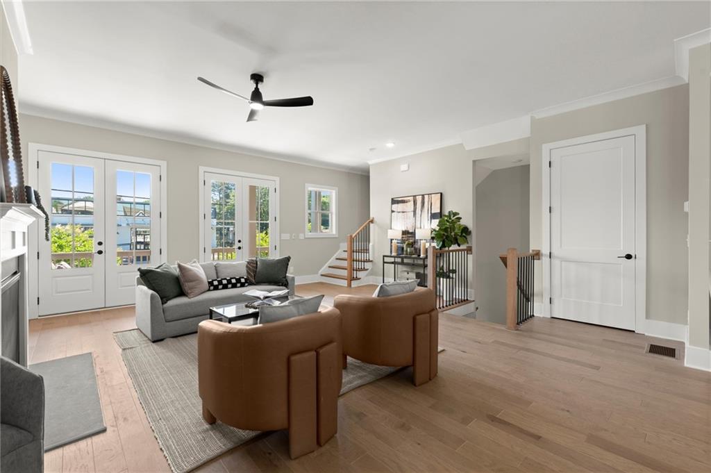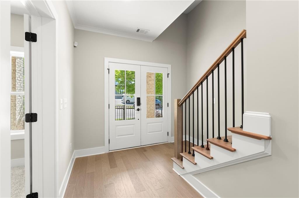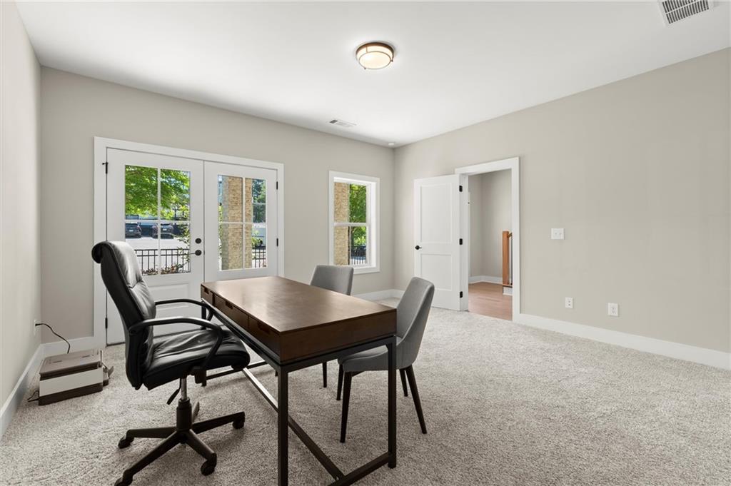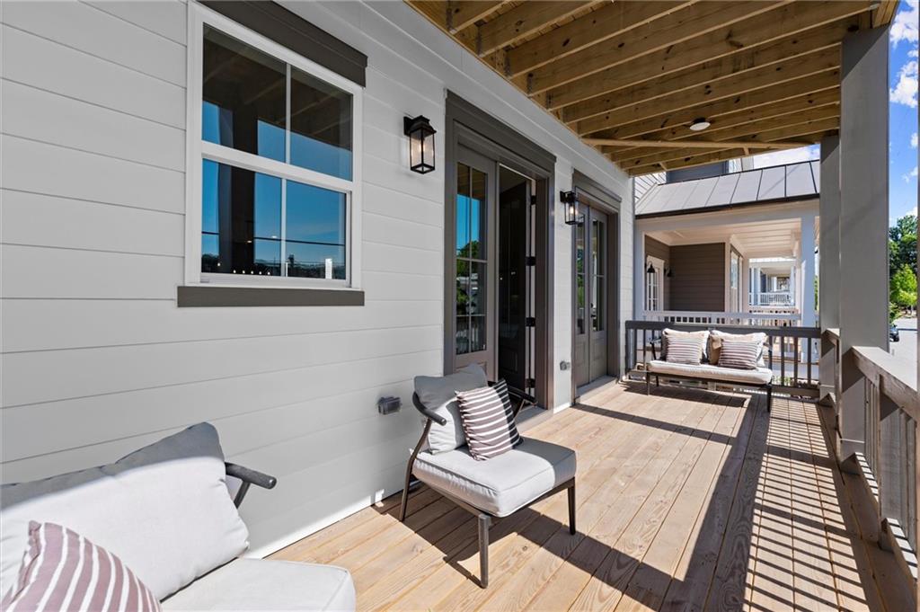 Step into timeless elegance with the Daisy Plan—where modern sophistication meets classic charm—perfectly positioned just steps from the iconic Atlanta BeltLine. Nestled along a peaceful, tree-lined street in the sought-after West Town community, this exquisite new construction residence by Brock Built Homes offers a rare opportunity to own a move-in-ready masterpiece. From the moment you arrive, the home’s distinguished façade sets the tone with lush landscaping, a private fenced front yard, two oversized decks, and a sprawling covered front porch with 8-foot double entry doors—all designed to make a lasting impression. Inside, luxury unfolds across three meticulously designed levels, featuring rich hardwood flooring throughout, soaring 9- to 10-foot ceilings, and expansive sun-drenched living spaces. The entry level showcases a generous guest suite with a private en-suite bath and direct access to the front porch, ideal for hosting overnight visitors or a refined home office. Ascend to the second level, where the heart of the home awaits—a stunning open-concept living, dining, and chef’s kitchen that seamlessly blends style and function. Enjoy quartz countertops, full-height custom cabinetry, premium KitchenAid industrial appliances, and a commanding central island that invites conversation and culinary inspiration. Unwind beside the family room fireplace or retreat to your oversized deck with tranquil city views. On the upper level, the primary suite is a sanctuary unto itself, complete with tray ceilings, ceiling fan, spa-inspired frameless glass shower, quartz dual vanities, and private access to a second expansive deck—perfect for morning coffee or an evening wind-down. Two additional well-proportioned bedrooms and a full bath complete the top floor. Designed with the future in mind, this home is elevator-ready with shaft access to all three levels—offering ultimate convenience and long-term livability. Discover elevated living at West Town—one of the last opportunities to own a single-family home directly on the Atlanta BeltLine. Schedule your private tour today and experience the unparalleled craftsmanship, style, and urban connectivity that only Brock Built can deliver. Note: Photos and video are of a similar floor plan and are provided for illustrative purposes only.