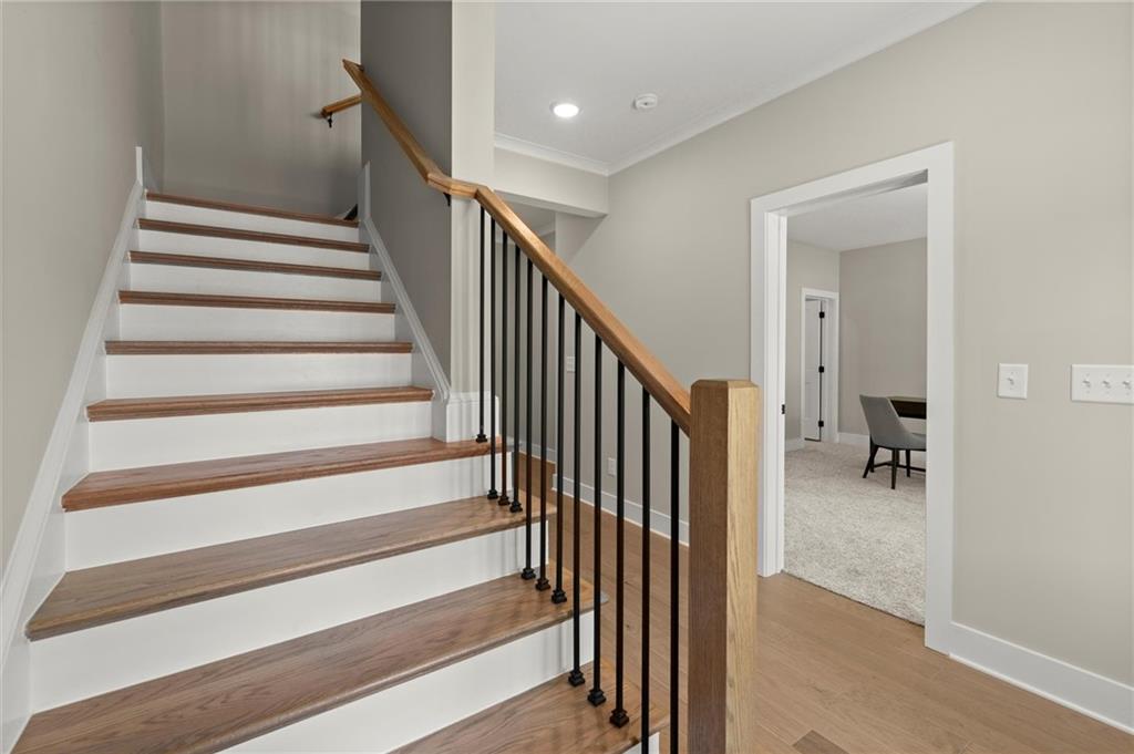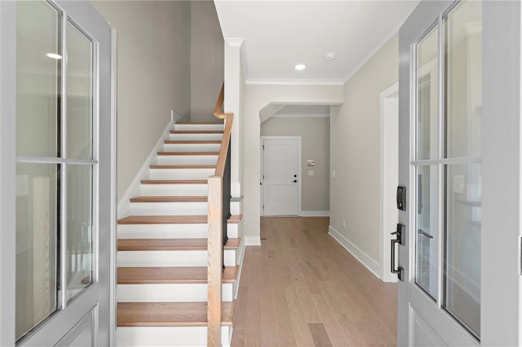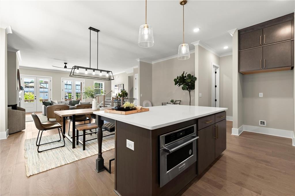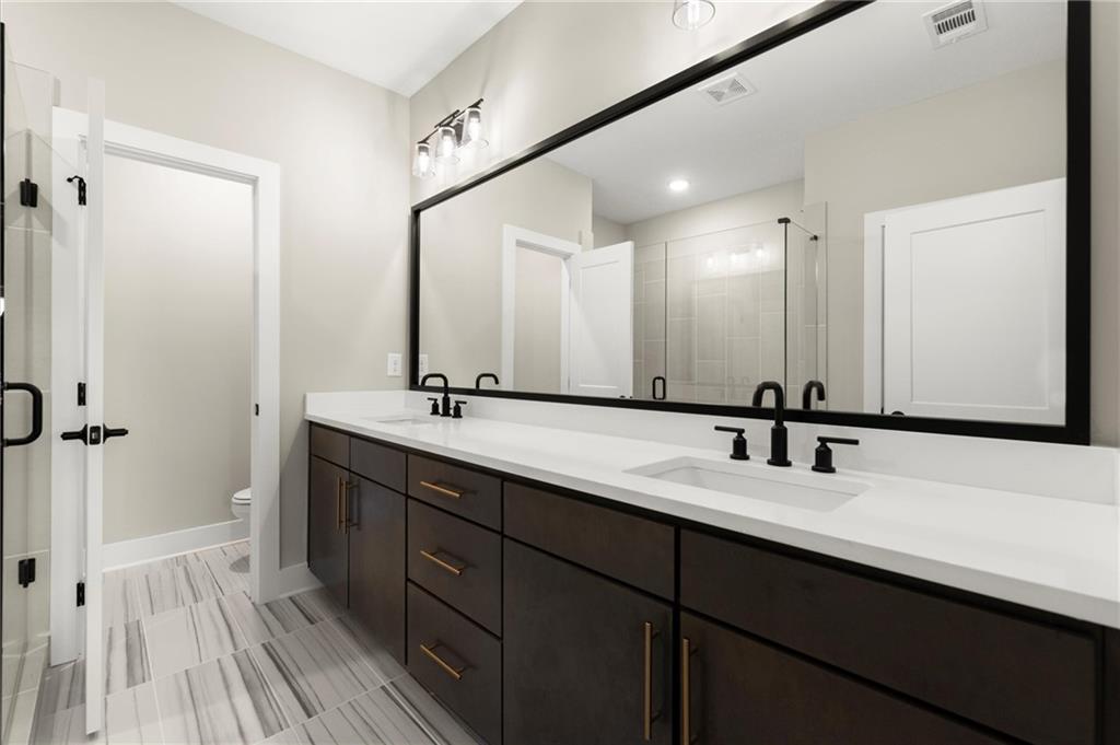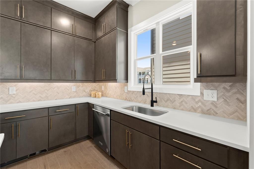 Step into timeless elegance with the Daisy Plan—where modern sophistication meets classic charm—perfectly positioned just steps from the iconic Atlanta BeltLine. Nestled along a peaceful, tree-lined street in the sought-after West Town community, this exquisite new construction residence by Brock Built Homes offers a rare opportunity to own a move-in-ready masterpiece. From the moment you arrive, the home’s distinguished façade sets the tone with lush landscaping, a private fenced front yard, two oversized decks, and a sprawling covered front porch with 8-foot double entry doors—all designed to make a lasting impression. Inside, luxury unfolds across three meticulously designed levels, featuring rich hardwood flooring throughout, soaring 9- to 10-foot ceilings, and expansive sun-drenched living spaces. The entry level showcases a generous guest suite with a private en-suite bath and direct access to the front porch, ideal for hosting overnight visitors or a refined home office. Ascend to the second level, where the heart of the home awaits—a stunning open-concept living, dining, and chef’s kitchen that seamlessly blends style and function. Enjoy quartz countertops, full-height custom cabinetry, premium KitchenAid industrial appliances, and a commanding central island that invites conversation and culinary inspiration. Unwind beside the family room fireplace or retreat to your oversized deck with tranquil city views. On the upper level, the primary suite is a sanctuary unto itself, complete with tray ceilings, ceiling fan, spa-inspired frameless glass shower, quartz dual vanities, and private access to a second expansive deck—perfect for morning coffee or an evening wind-down. Two additional well-proportioned bedrooms and a full bath complete the top floor. Designed with the future in mind, this home is elevator-ready with shaft access to all three levels—offering ultimate convenience and long-term livability. Discover elevated living at West Town—one of the last opportunities to own a single-family home directly on the Atlanta BeltLine. Schedule your private tour today and experience the unparalleled craftsmanship, style, and urban connectivity that only Brock Built can deliver. Note: Photos and video are of a similar floor plan and are provided for illustrative purposes only.