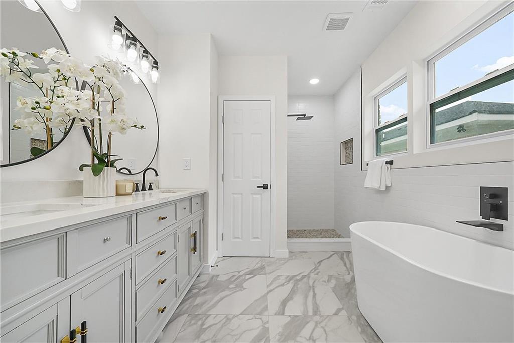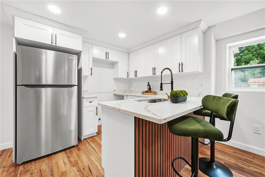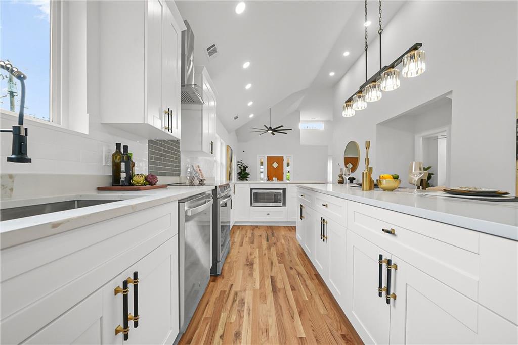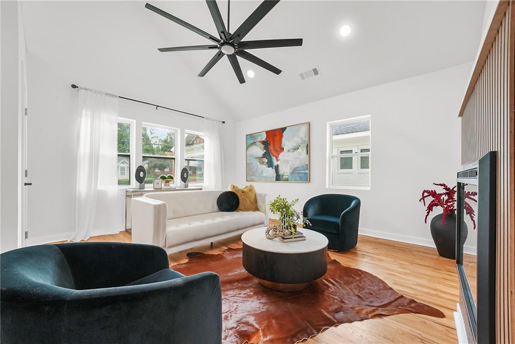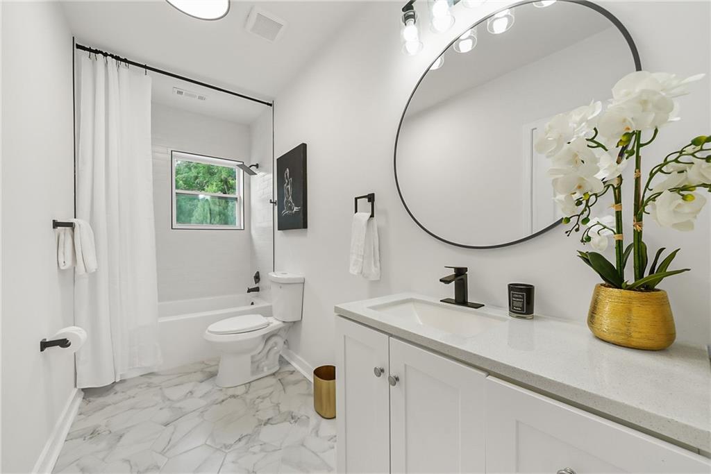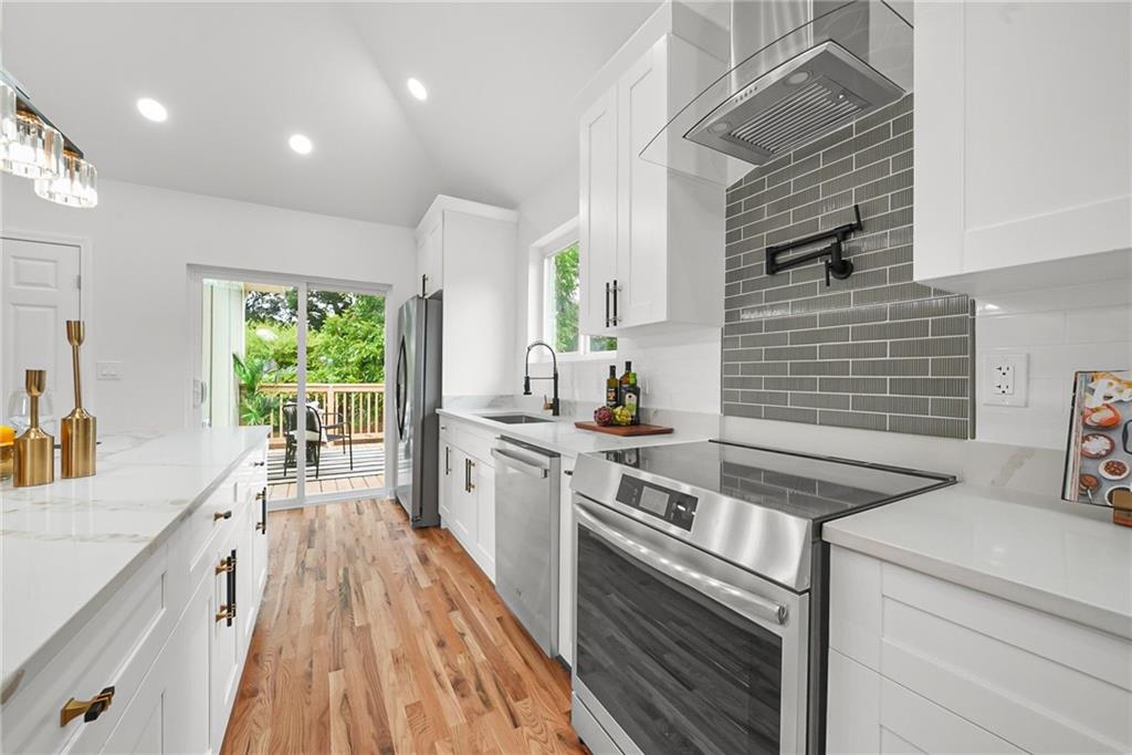 Welcome to Modern Elegance in East Atlanta Village - 583 Flat Shoals Avenue SE, Atlanta, GA 30316 | 5 Beds | 4 Baths | 3,220 Sq Ft Step into refined sophistication at this completely reimagined multi-generational estate in the heart of East Atlanta. Formerly a classic 3-bedroom, 2-bath bungalow, this luxurious residence has been expertly expanded and redesigned into a sprawling 5-bedroom, 4-bath masterpiece boasting over 3,200 square feet of elevated living space. Upstairs, discover three spacious bedrooms and three modern full baths, including a lavish primary suite adorned with designer lighting, spa-inspired finishes, and elegant quartz countertops. The open-concept layout flows seamlessly from the chef’s kitchen to the living and dining areas; ideal for entertaining or quiet evenings in. The fully finished terrace level offers a private 2-bedroom, 1-bath apartment with its own entrance; perfect for multi-generational living, long-term guests, or income-producing rental potential. Every detail has been thoughtfully curated, blending timeless charm with contemporary luxury: Quartz countertops throughout; Custom cabinetry & upscale lighting. Expanded floor plan from 1,610 to 3,220 sq ft. Ideal location just steps away from East Atlanta Village's best shops, dining & entertainment. Whether you're seeking a spacious forever home or a smart investment with dual living flexibility, this home delivers elegance, function, and opportunity, all in one extraordinary package.