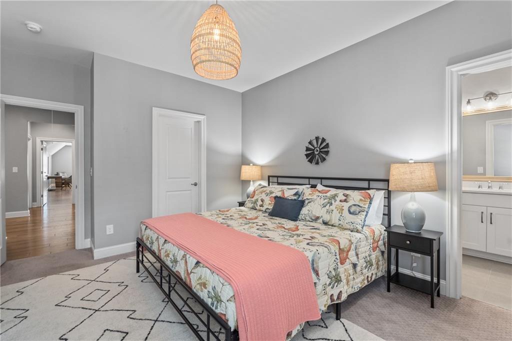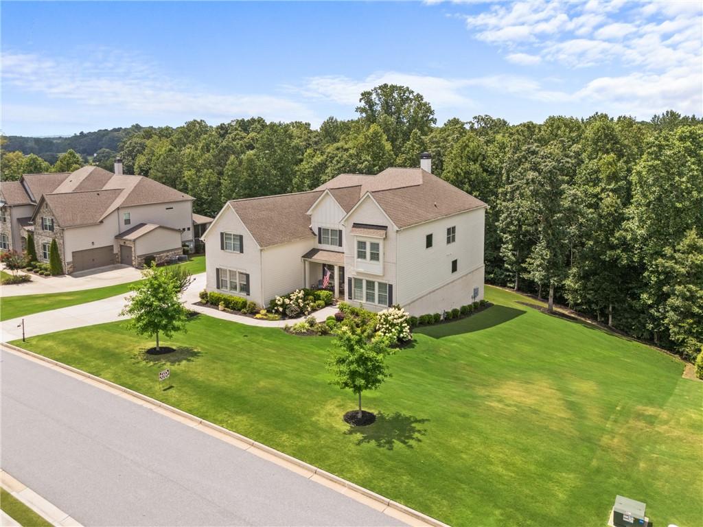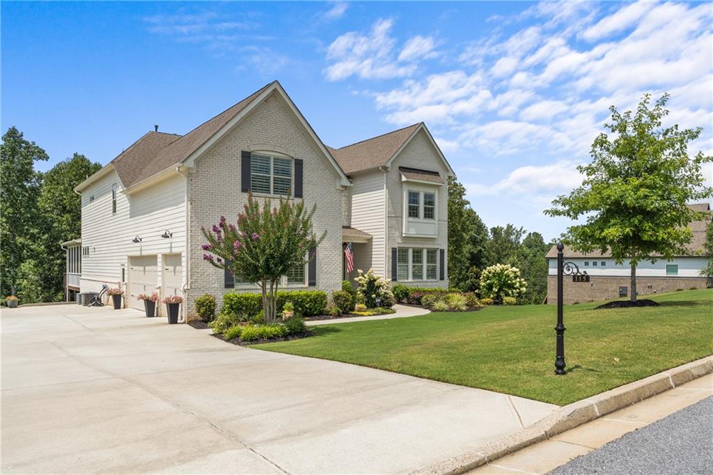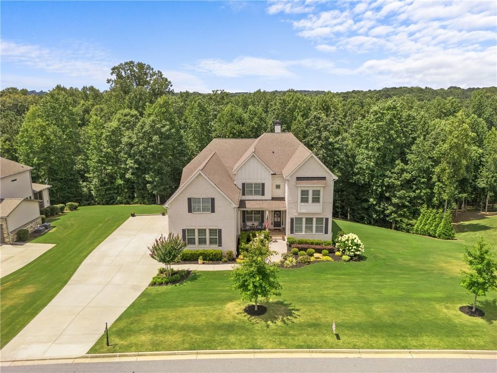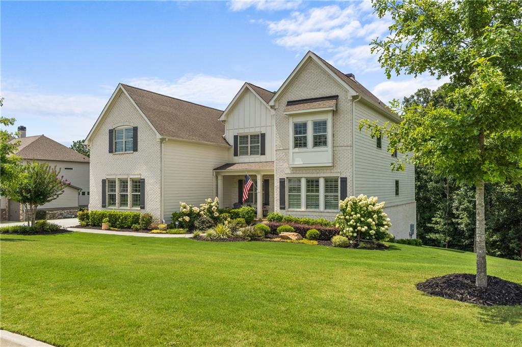Better than new PAINTED BRICK beauty on a premium lot in Birmingham Registry. Just over the Fulton County border near The Manor Golf and Country Club! Though this is new construction, the sellers have updated this home throughout! Lighting, crown moulding, custom barn doors, shiplap, Bar with wine refrigerator, custom drop zone, California closets, fireplace mantle, as well as kitchen cabinetry upgrades. Too many upgrades to list here! This home features two primary suites, one on the main as well as one upstairs! Perfect for multigenerational families, or to age in place! The floor plan offers a space for every homeowner's need: a home office, a built-in study zone for homework, screened porch, and an upstairs media/playroom! The kitchen is the heart of this home and the details will blow you away! From the large island to the incredible walk-in pantry and bar area. The kitchen is open to the family room and breakfast area. The screened porch has a fireplace, perfect for cozy nights. Upstairs are 5 bedrooms, including the 2nd primary suite. Also upstairs is a second family room, perfect as a playroom. Expand the space even more by finishing the full basement! Great location in Cherokee County, yet so close to Milton! Don't let this nearly new construction pass you by!