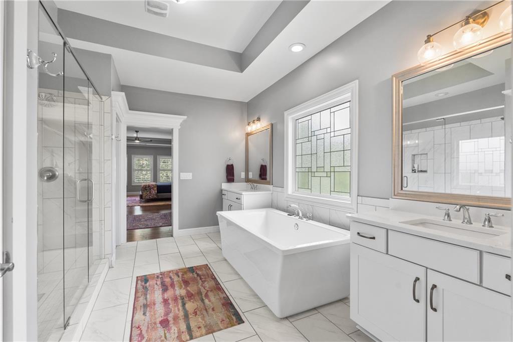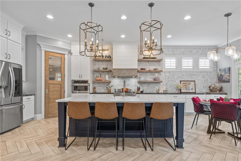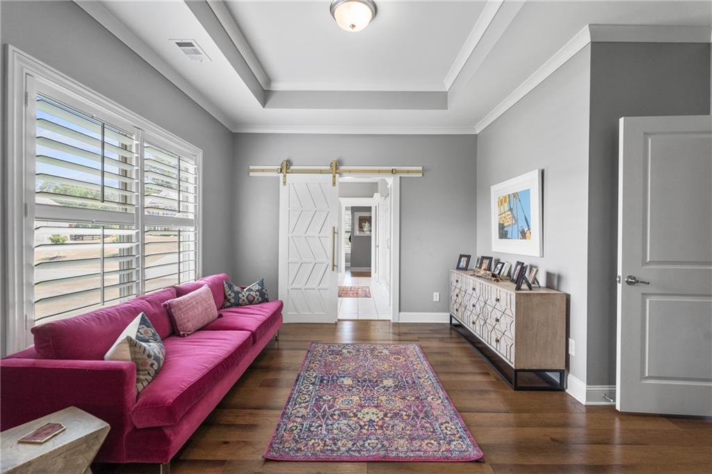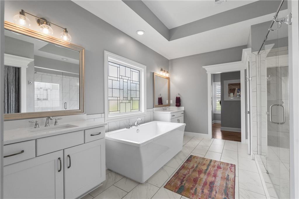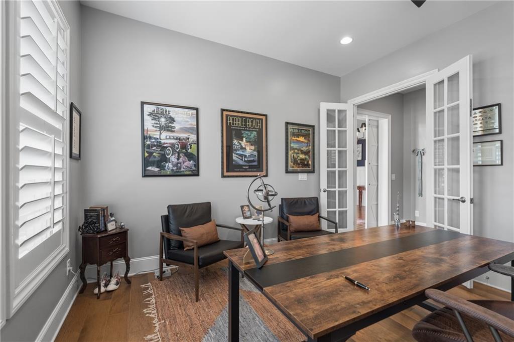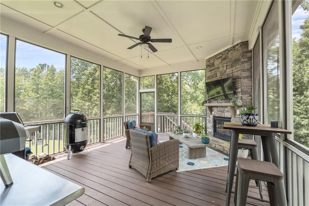 Better than new PAINTED BRICK beauty on a premium lot in Birmingham Registry. Just over the Fulton County border near The Manor Golf and Country Club! Though this is new construction, the sellers have updated this home throughout! Lighting, crown moulding, custom barn doors, shiplap, Bar with wine refrigerator, custom drop zone, California closets, fireplace mantle, as well as kitchen cabinetry upgrades. Too many upgrades to list here! This home features two primary suites, one on the main as well as one upstairs! Perfect for multigenerational families, or to age in place! The floor plan offers a space for every homeowner's need: a home office, a built-in study zone for homework, screened porch, and an upstairs media/playroom! The kitchen is the heart of this home and the details will blow you away! From the large island to the incredible walk-in pantry and bar area. The kitchen is open to the family room and breakfast area. The screened porch has a fireplace, perfect for cozy nights. Upstairs are 5 bedrooms, including the 2nd primary suite. Also upstairs is a second family room, perfect as a playroom. Expand the space even more by finishing the full basement! Great location in Cherokee County, yet so close to Milton! Don't let this nearly new construction pass you by!