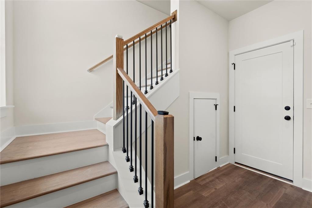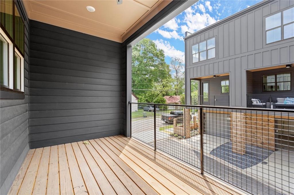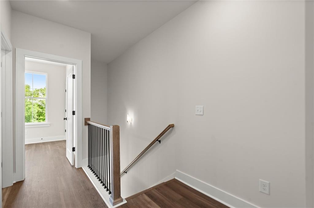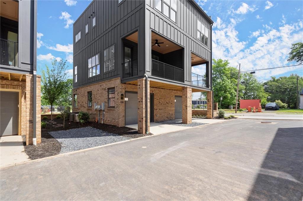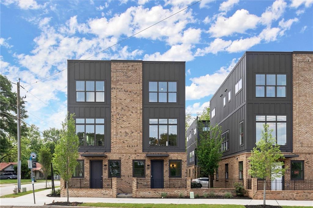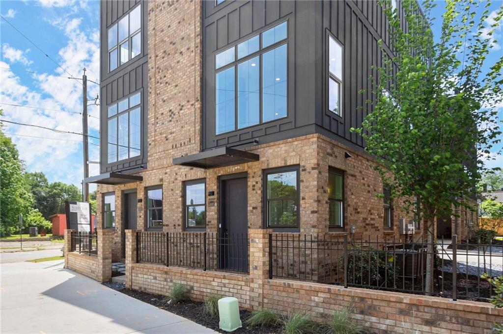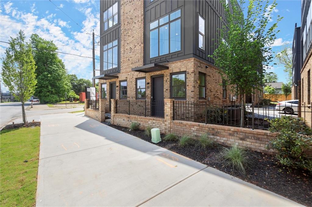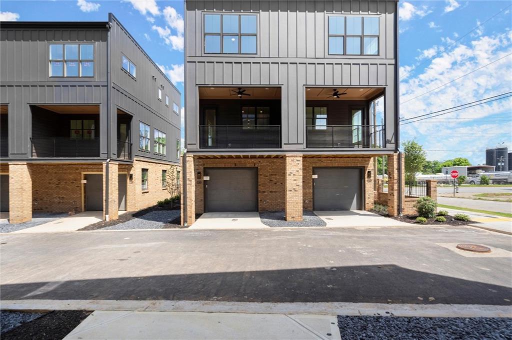 Knights Walk at Howell Station, where every unit is an end unit. These brick and batten board clad, fee simple CityHomes are the latest offering from Middle Housing Company. Abundant natural light is provided by windows on three sides of every unit. Real usable outdoor space is found on the large, covered deck adjacent to the kitchen, while front units facing West Marietta St include a front patio as well. The lower level includes a half bath and a single-car garage with extra storage. The main level includes a great room with living and dining areas, a well-appointed kitchen, and a covered rear deck. The light-filled upper level has a primary suite with ensuite bathroom with double vanity, large floor-to-ceiling tile shower, and a separate water closet. The secondary bedroom, bathroom, and laundry closet complete the upper level. Floors are durable luxury vinyl throughout the unit, and all countertops are quartz. Two different kitchen layouts are available. Knight Walk at Howell Station includes a dog walk and a community common area. This walkable location is only blocks away from Knight Park, the Beltline entrance adjacent to Westside Paper and King Plow.